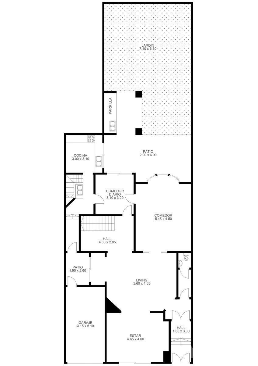 Дом в стиле Tudor в Caballito на 8 ambientes, с 4 спальнями. В части дома проведён частичный ремонт: ванные комнаты, кухня и спальни. На цокольном этаже предусмотрены котельная и кладовая, возможна организация бodega. На первом этаже: 4 спальни со встроенными шкафами, 2 ванные комнаты (1 en suite), балконы на улицу и во двор, зона услуг с комнатами, ванной и раздельными входами, а также playroom спереди, прачечная и 2 террасы на втором этаже.