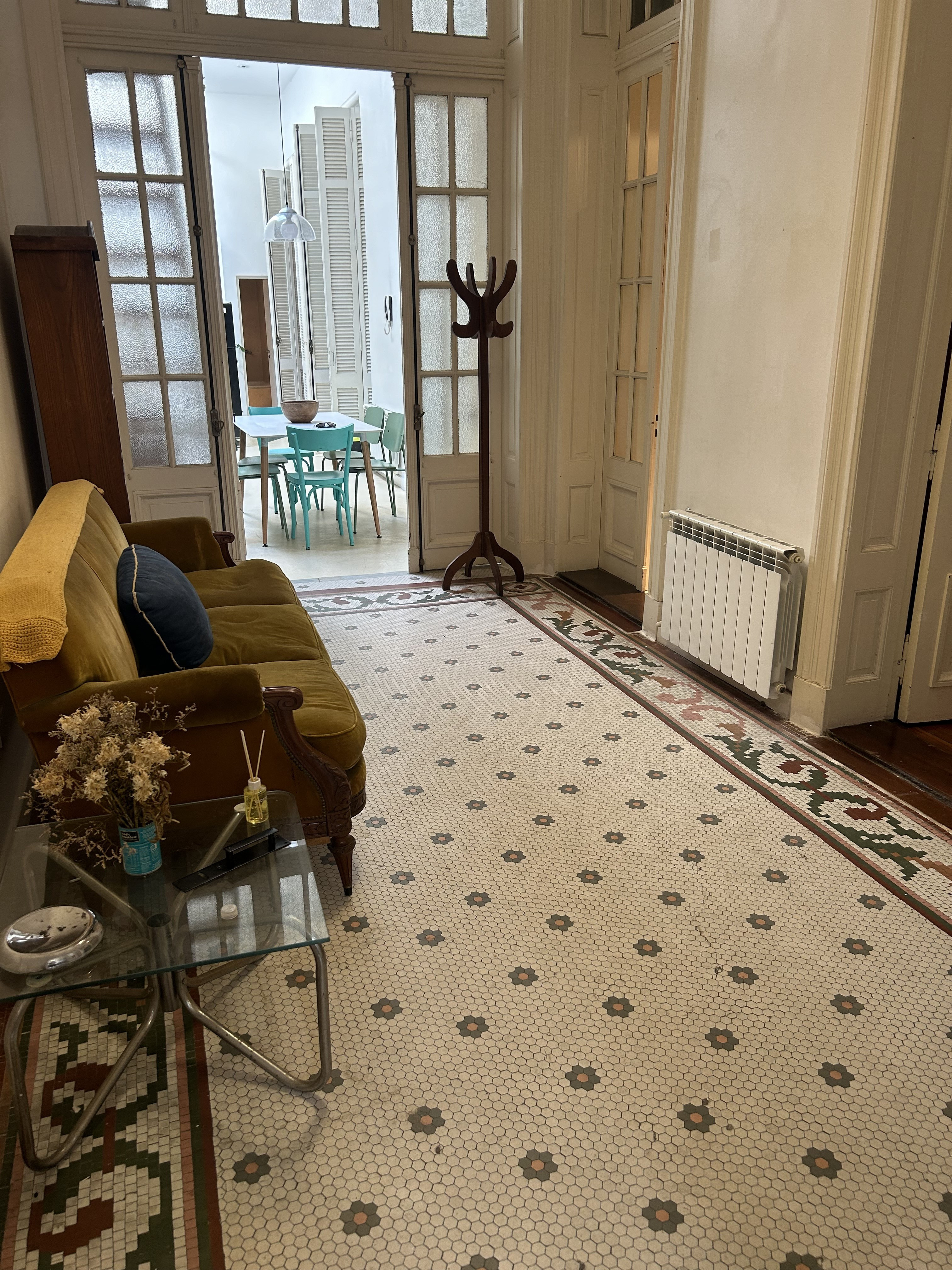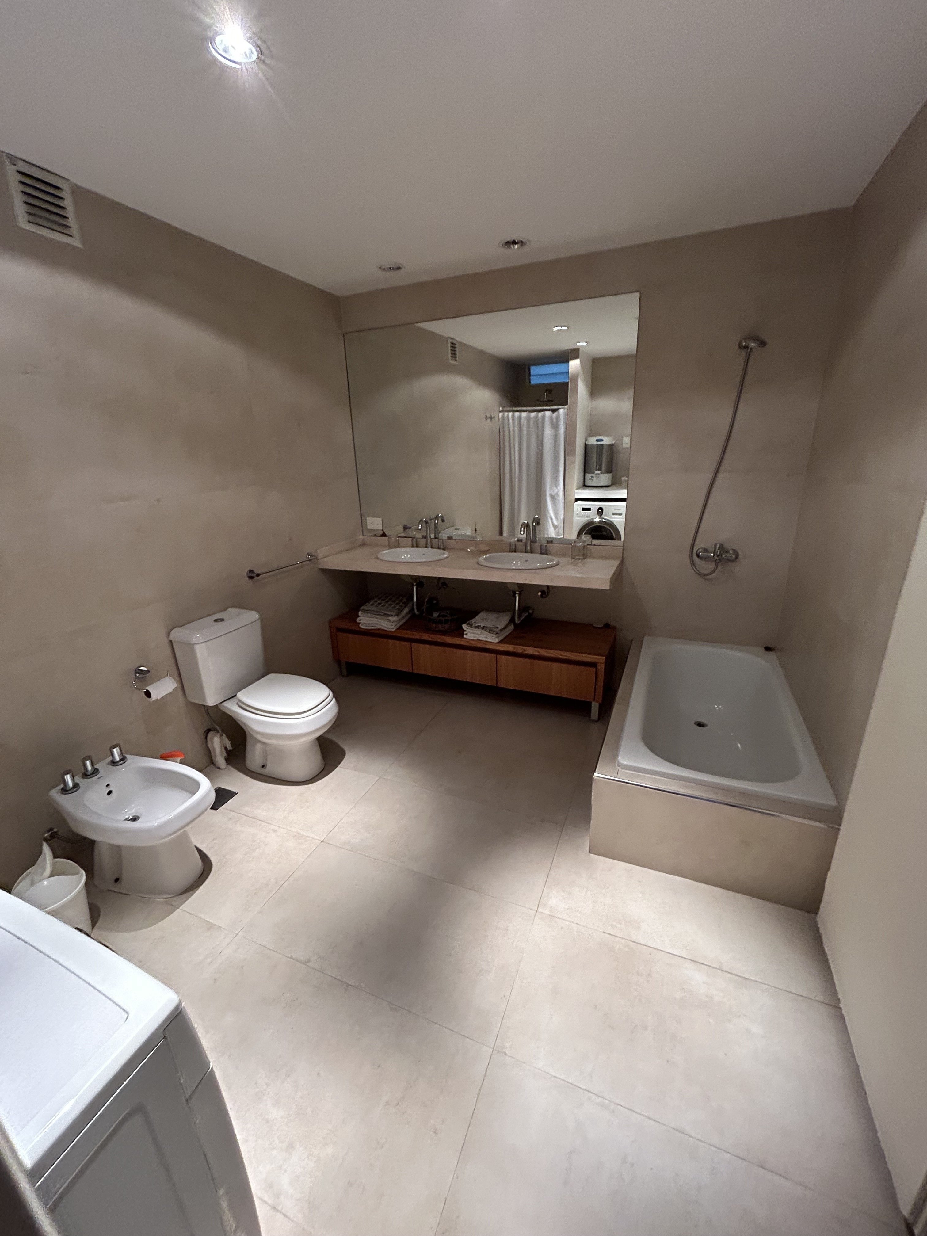 Квартира PH типа casa с отдельным входом с улицы, сдаётся посуточно. В наличии гостиная-столовая, оборудованная кухня и столовая для ежедневного использования; 4 спальни и 2 полностью оборудованные ванные комнаты, а также кабинет/рабочая зона. В квартире высокие потолки с двойной высотой, полы из pinotea, установлены кондиционер и отопление от котла. Предусмотрены laundry, кладовая (baulera) и мебель. Из техники указаны холодильник с функцией frigobar, микроволновая печь, стиральная машина; пред