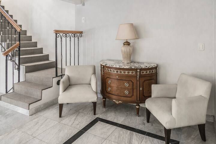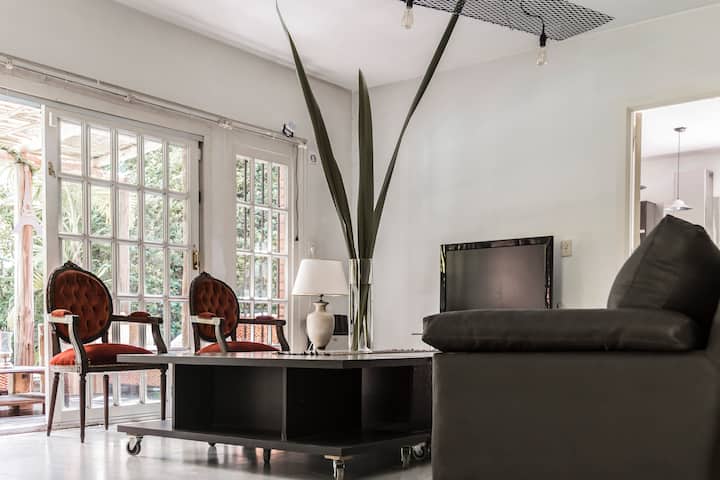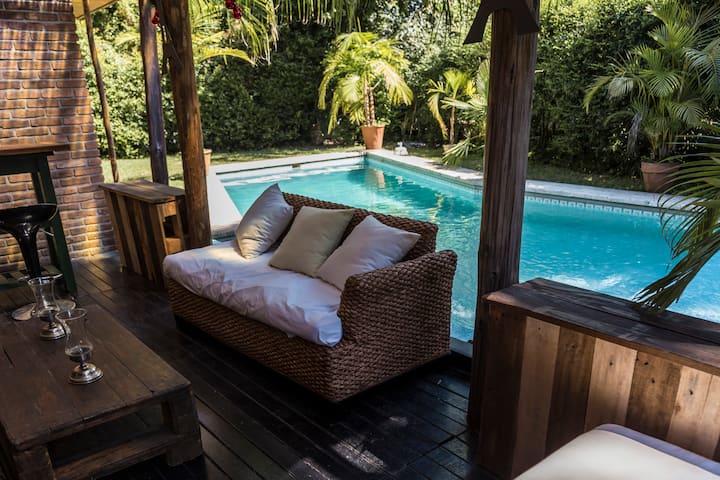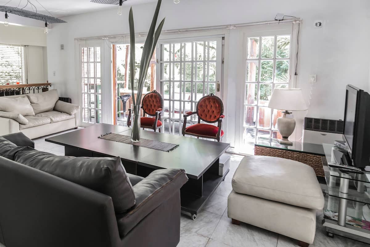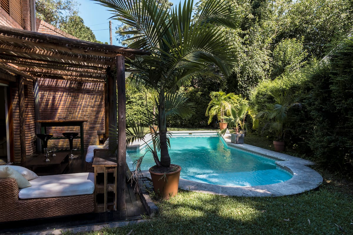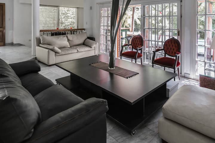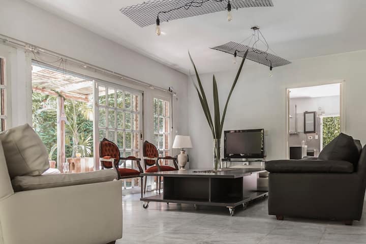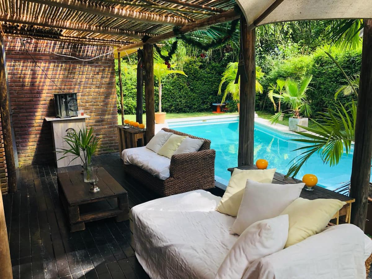 Дом с 3 спальнями рассчитан на 6 человек в жилом районе General San Martín. В доме есть бассейн, зона гриля, солярий и двор с озеленением, а также 3 ванные комнаты: ванная en suite, полная ванная и половина ванной в зоне гостиной. Кондиционирование с режимами охлаждение/обогрев установлено в каждой спальне и в гостиной. Кухня оборудована, есть стирально-сушильная машина.