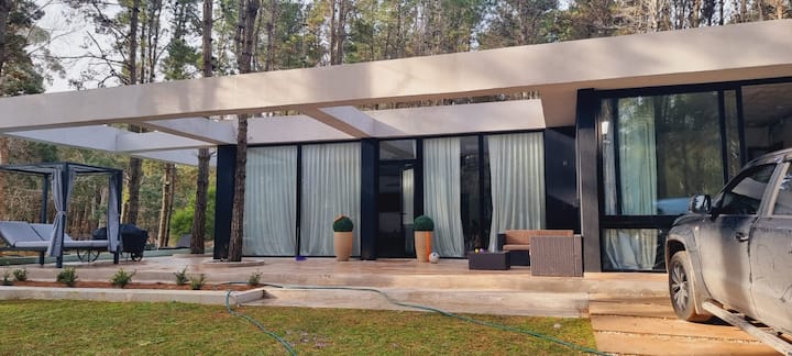 Дом в Pinamar с 4 спальнями и 4 ванными комнатами. Все помещения расположены на одном уровне. В доме есть отапливаемый бассейн и зона гриля.