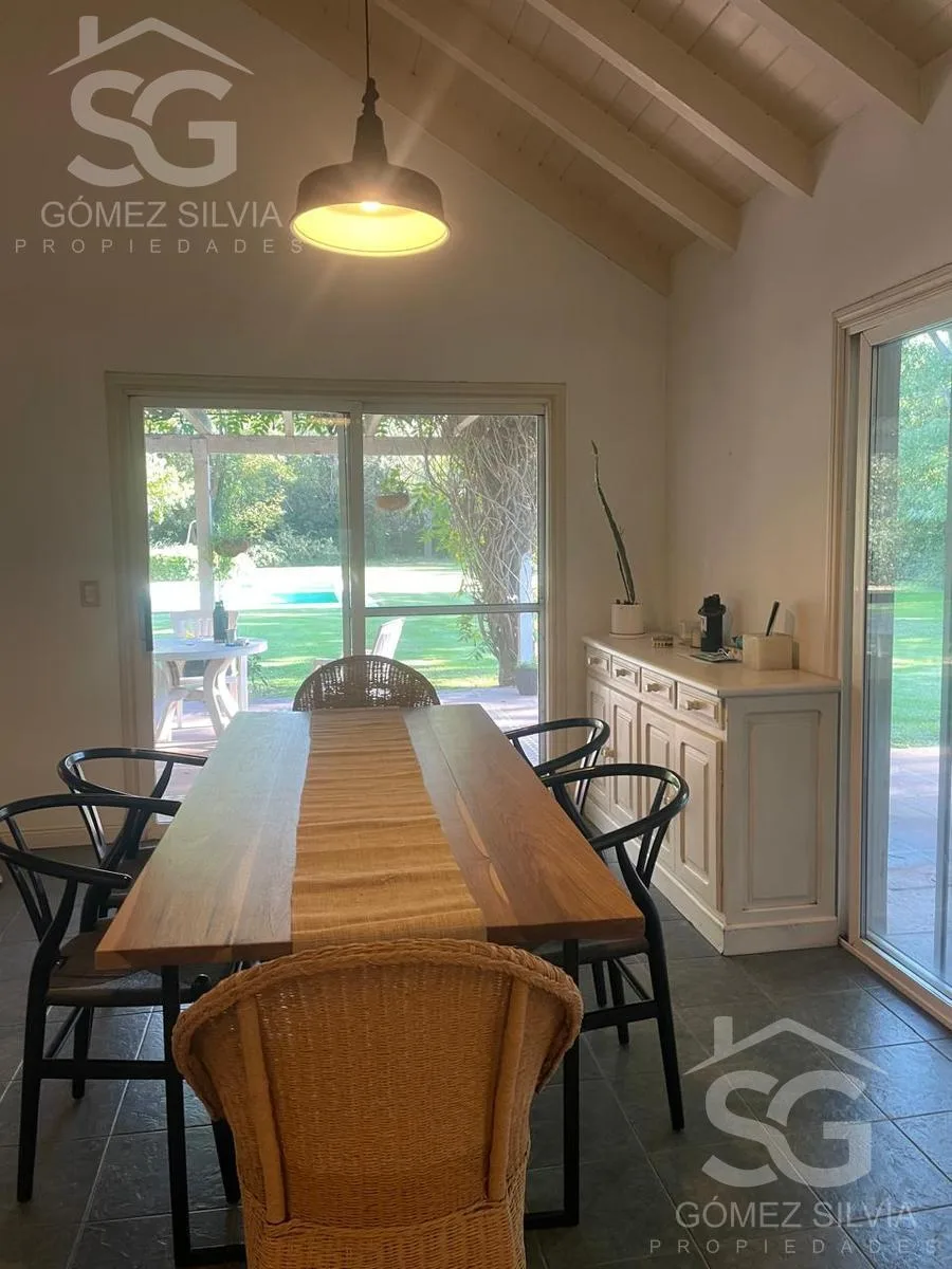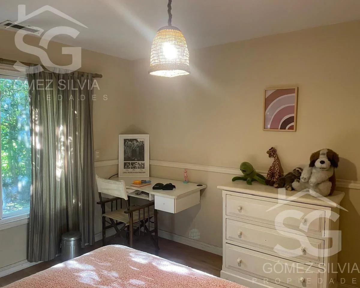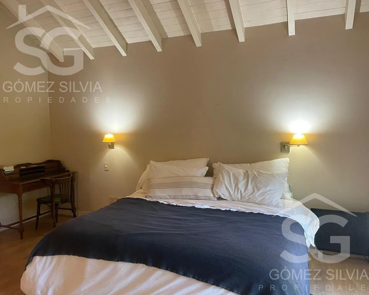 Дом в аренду в Club de Campo Los Pinguinos, на участке 2700 m². 4 спальни, планировка в одном уровне: центральная зона с просторной гостиной-столовой с камином и видом, а также обеденная зона и отдельная зона с двумя крыльями. В одном крыле кухня, гостевой туалет и спальня; в другом крыле главная спальня в suite с гардеробной, 2 спальни с отдельными полными ванными и кабинет. На участке есть большая галерея с зоной гриля, бассейн и (закреплённая) парковка для 2 автомобилей. Дом предлагается с ме