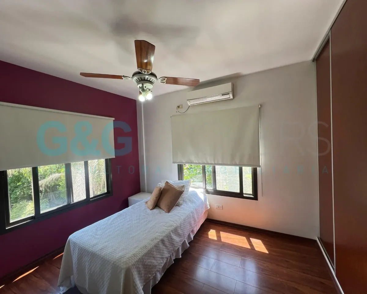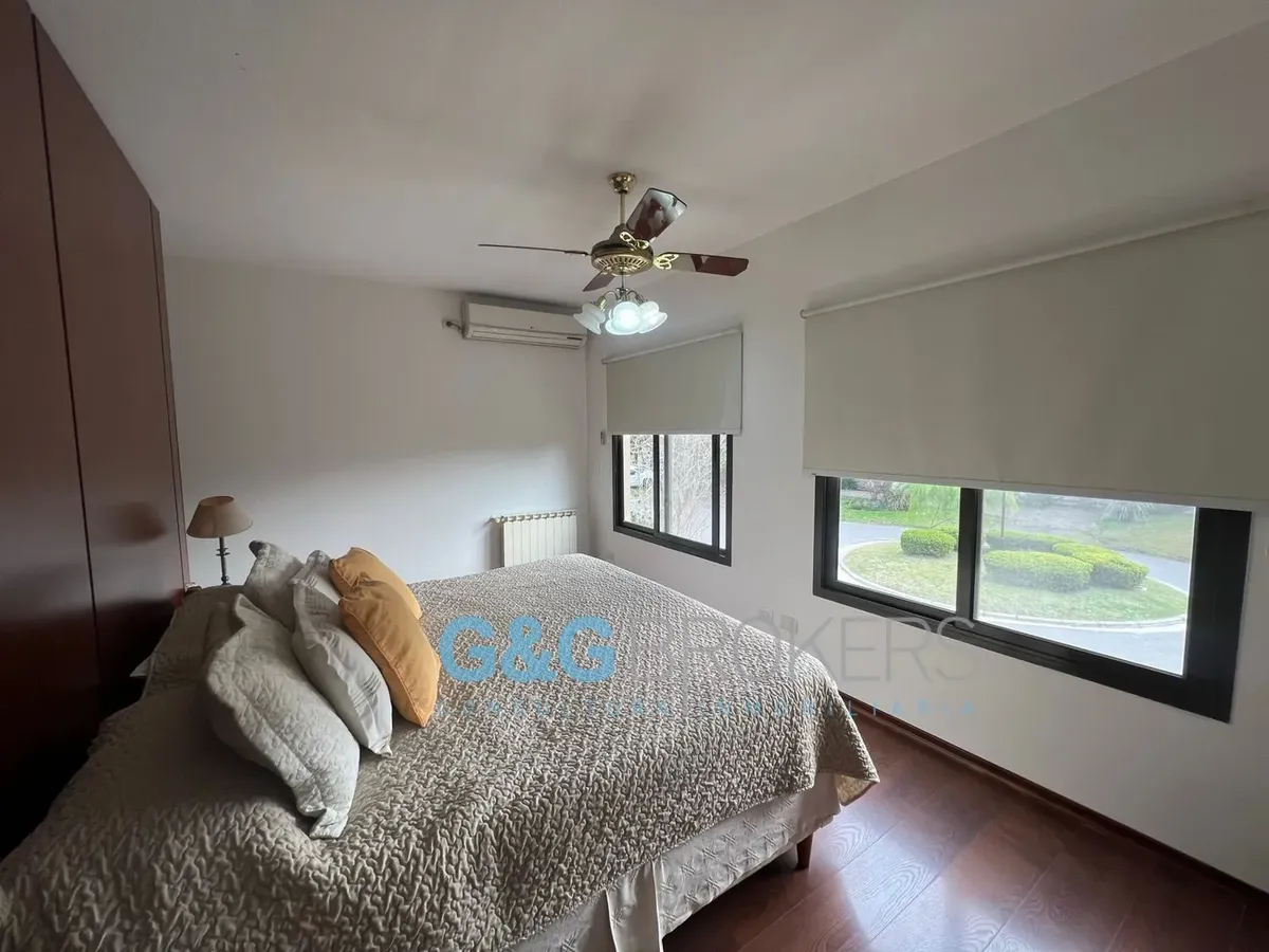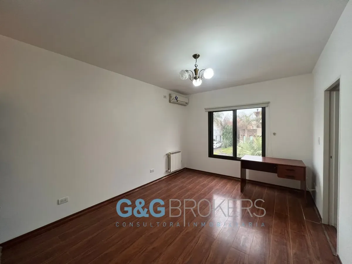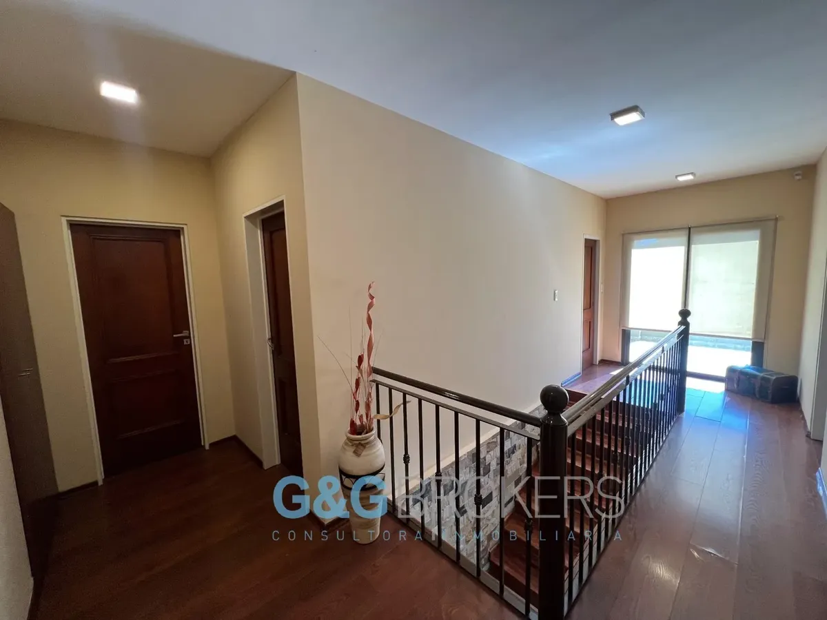 Двухэтажный дом в закрытом комплексе Altos del Sol в Ituzaingó. На первом этаже: гостиная, гостевой туалет, кухня-столовая, спальня. На втором этаже: 3 спальни, главная со спальней (suite) и гардеробной, кабинет, большая общая гостиная для жильцов (SUM) и полноценная ванная. Есть благоустроенный внутренний задний двор с бассейном, открытая парковка для нескольких автомобилей и крытый гараж на 2 машины. Поблизости проходят Autopista del Oeste и Camino del Buen Ayre.