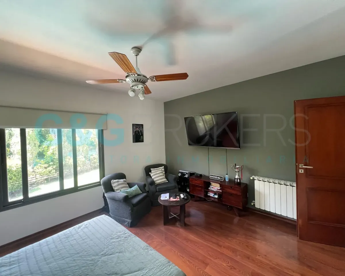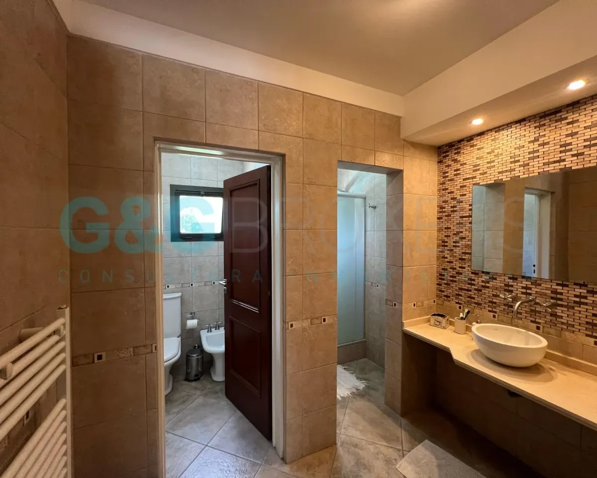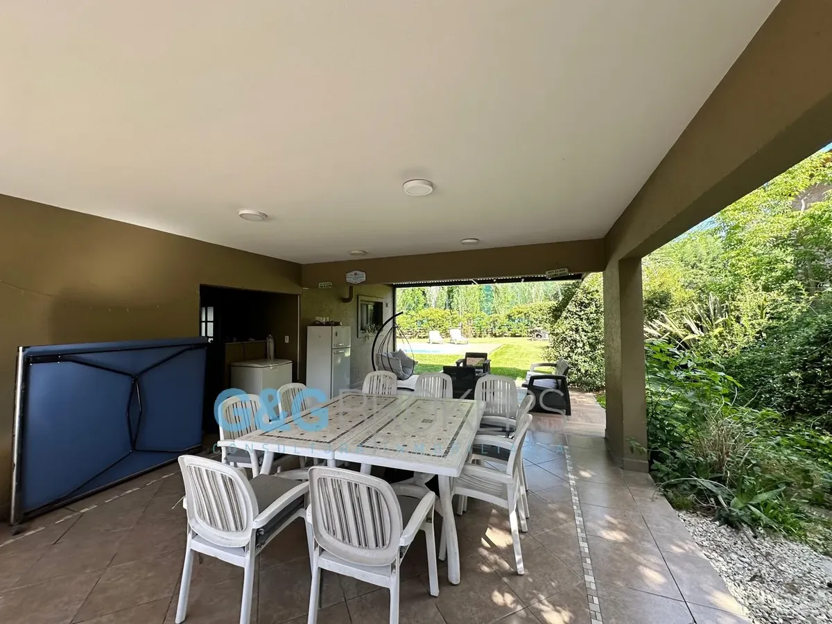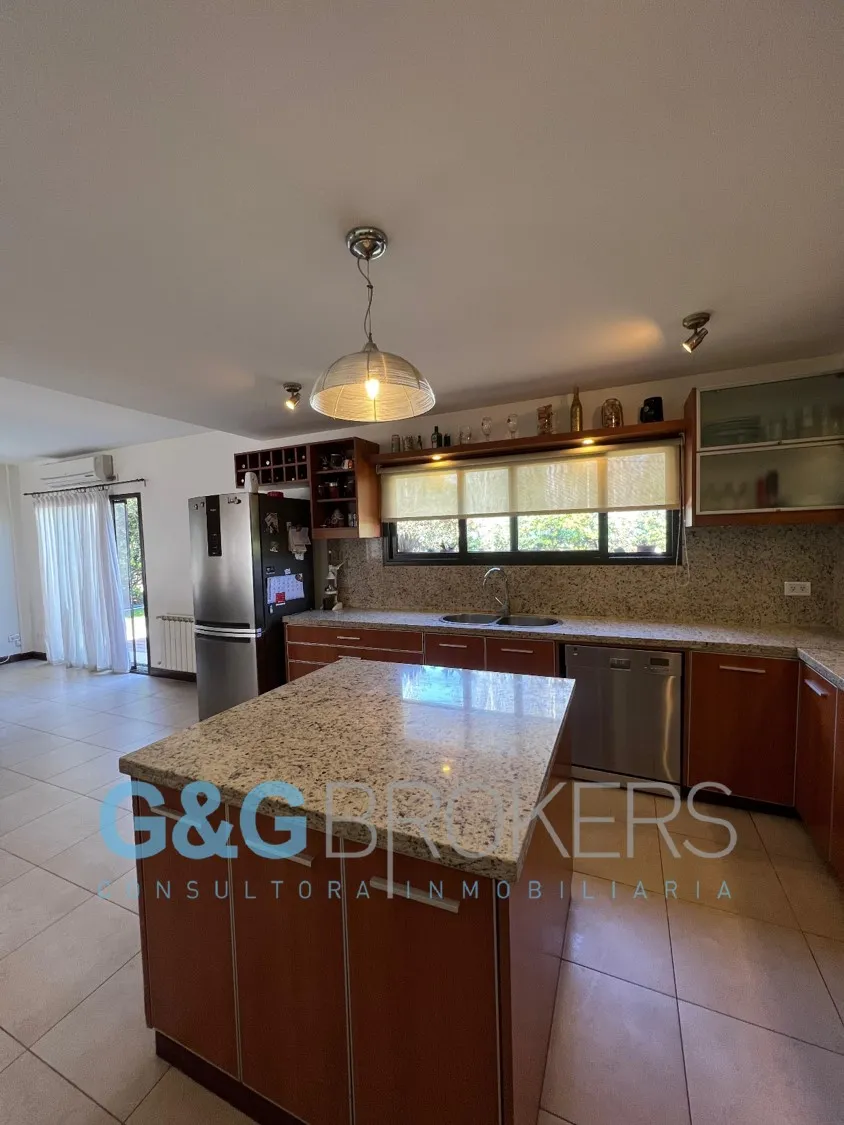 Двухэтажный дом в закрытом комплексе Altos del Sol в Ituzaingó. На первом этаже: гостиная, гостевой туалет, кухня-столовая, спальня. На втором этаже: 3 спальни, главная со спальней (suite) и гардеробной, кабинет, большая общая гостиная для жильцов (SUM) и полноценная ванная. Есть благоустроенный внутренний задний двор с бассейном, открытая парковка для нескольких автомобилей и крытый гараж на 2 машины. Поблизости проходят Autopista del Oeste и Camino del Buen Ayre.