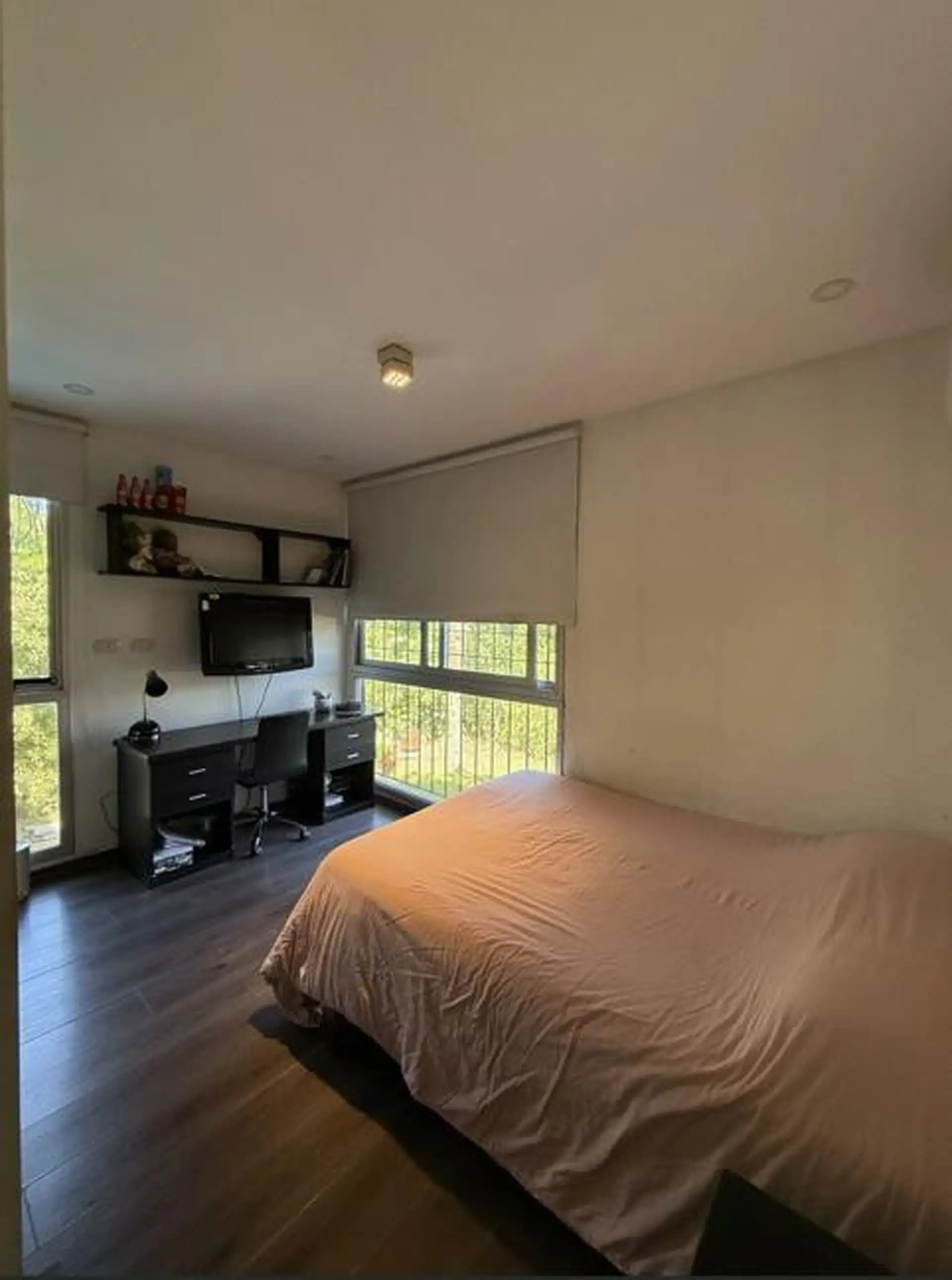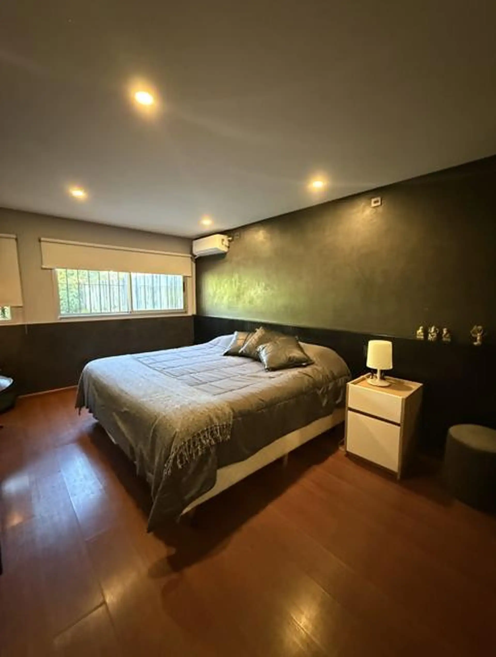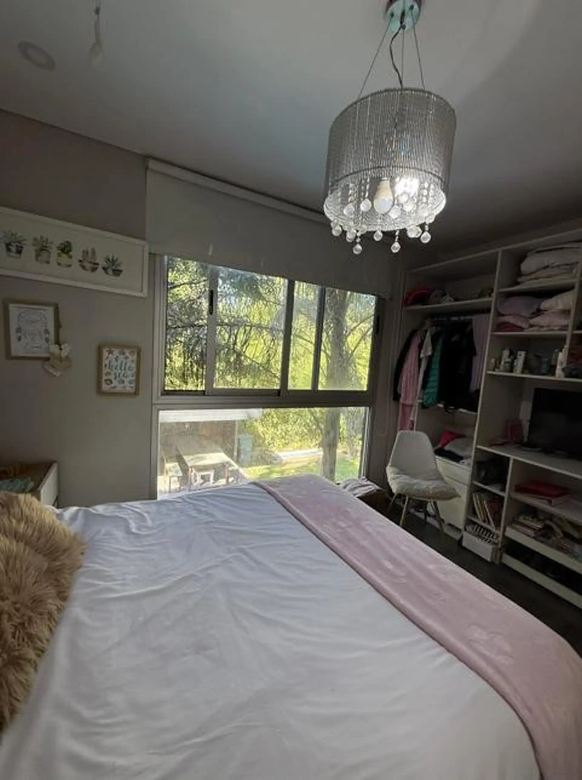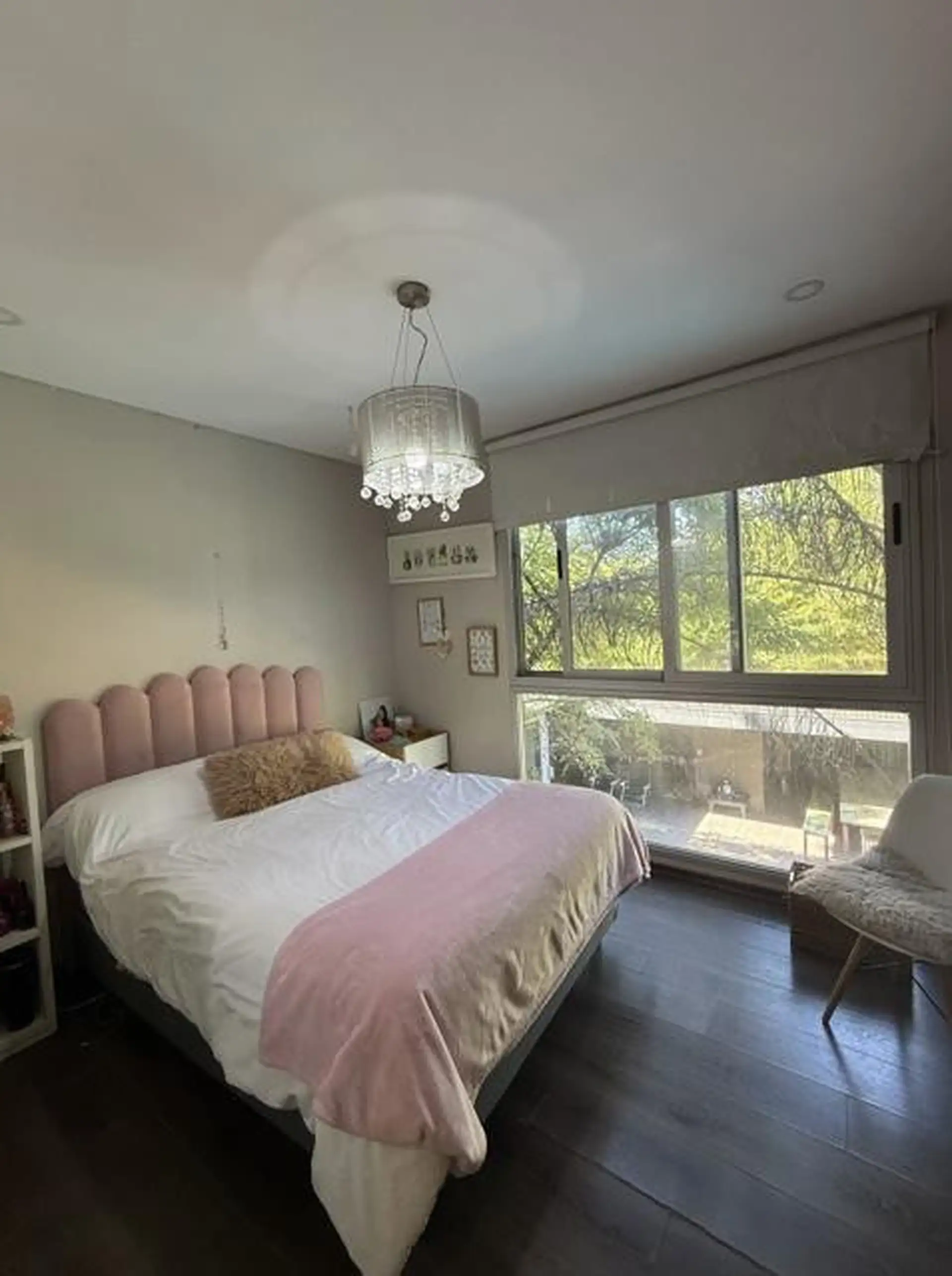 Частный дом в два этажа на участке более 500 m² в Udaondo, с садом на участке и окнами на территорию спереди. Гараж с крытым местом для двух автомобилей и место для сквозной парковки. В доме гостиная-столовая, кухня с нижними шкафами и навесными полками, барная стойка для завтрака. Спальня в suite с гидромассажем и гардеробной, с кондиционером и отоплением типа tiro balanceado; второй вариант — спальня или кабинет, отдельная ванная комната. На втором этаже холл для распределения, две спальни с ш