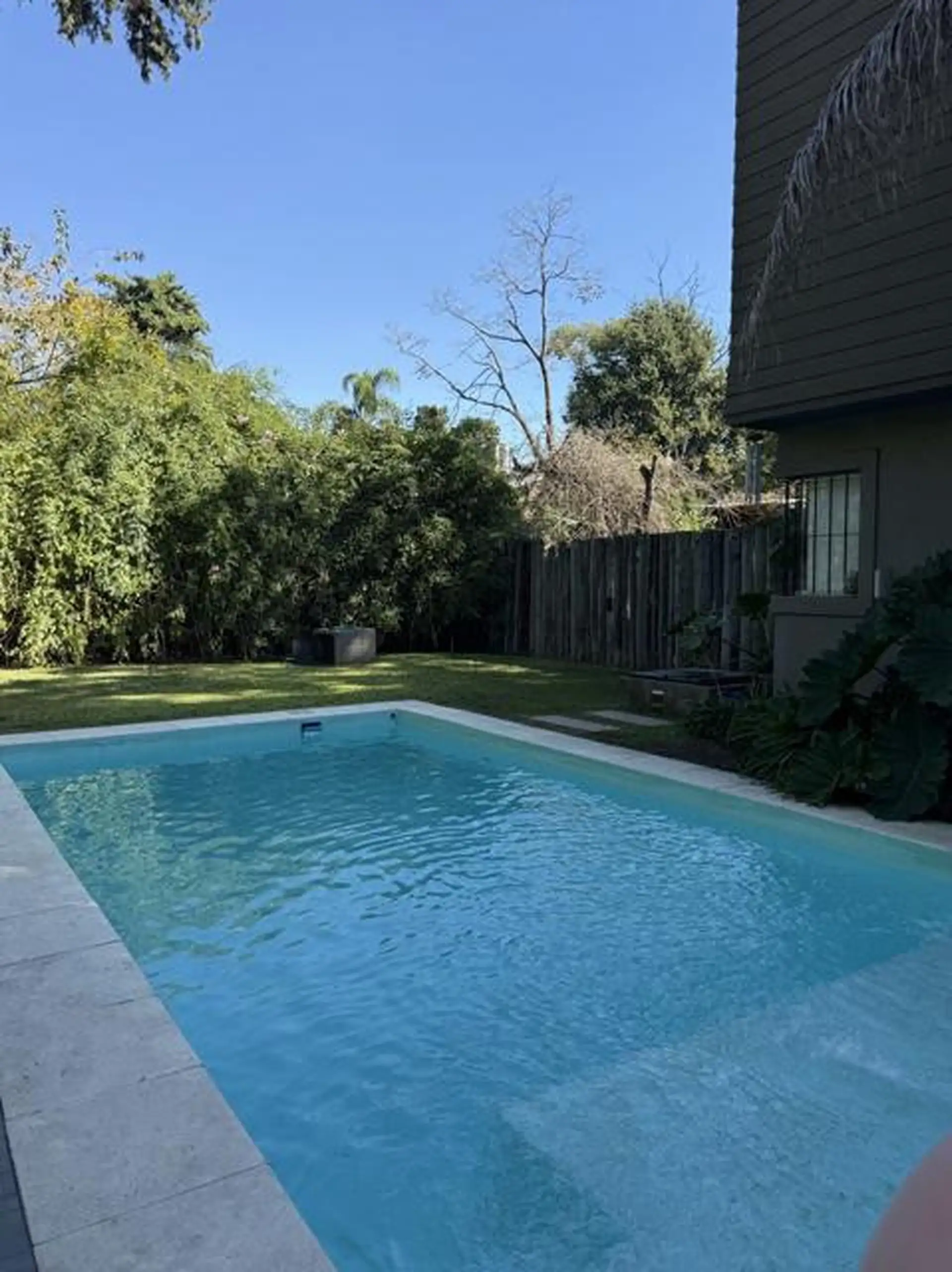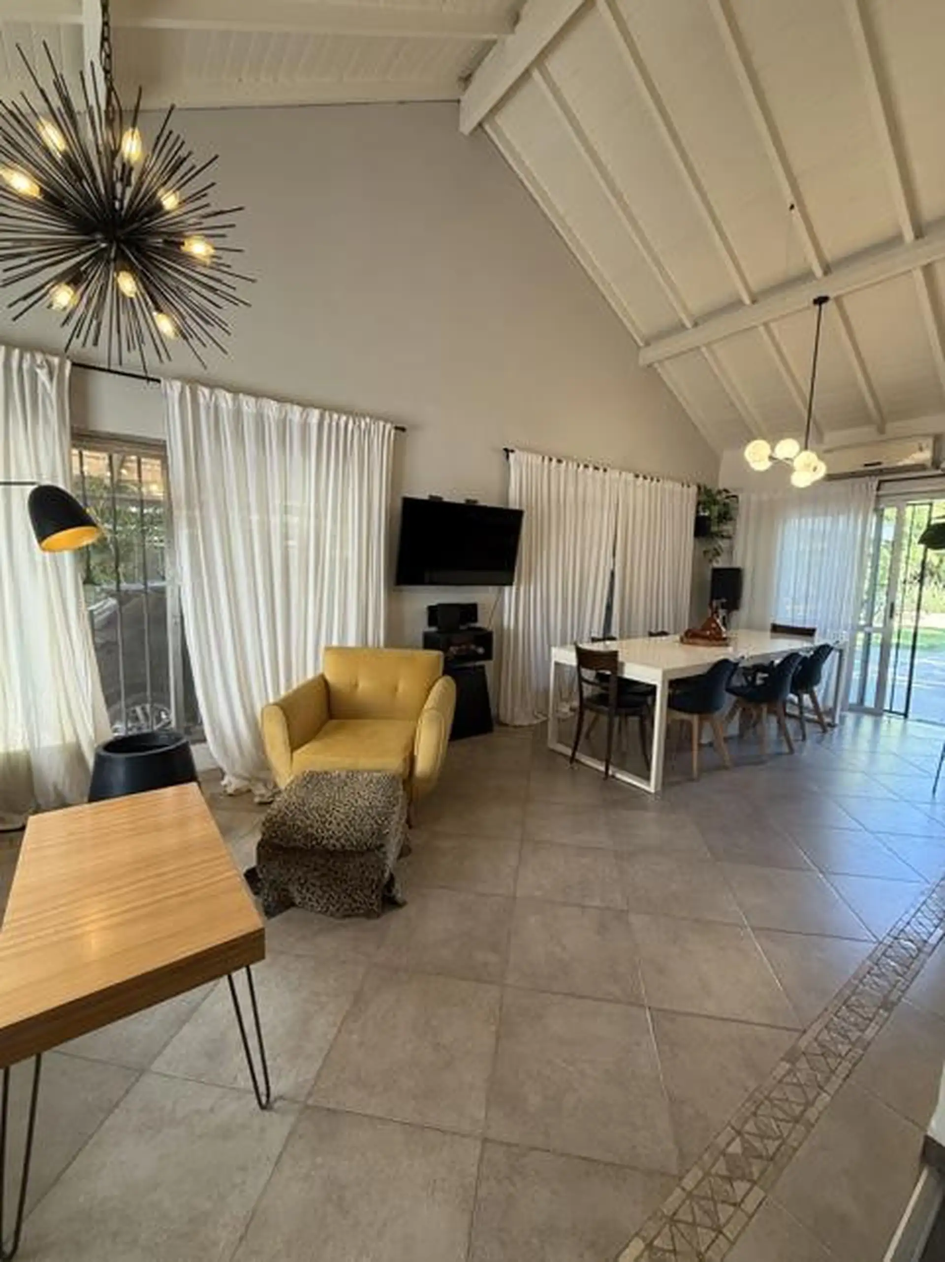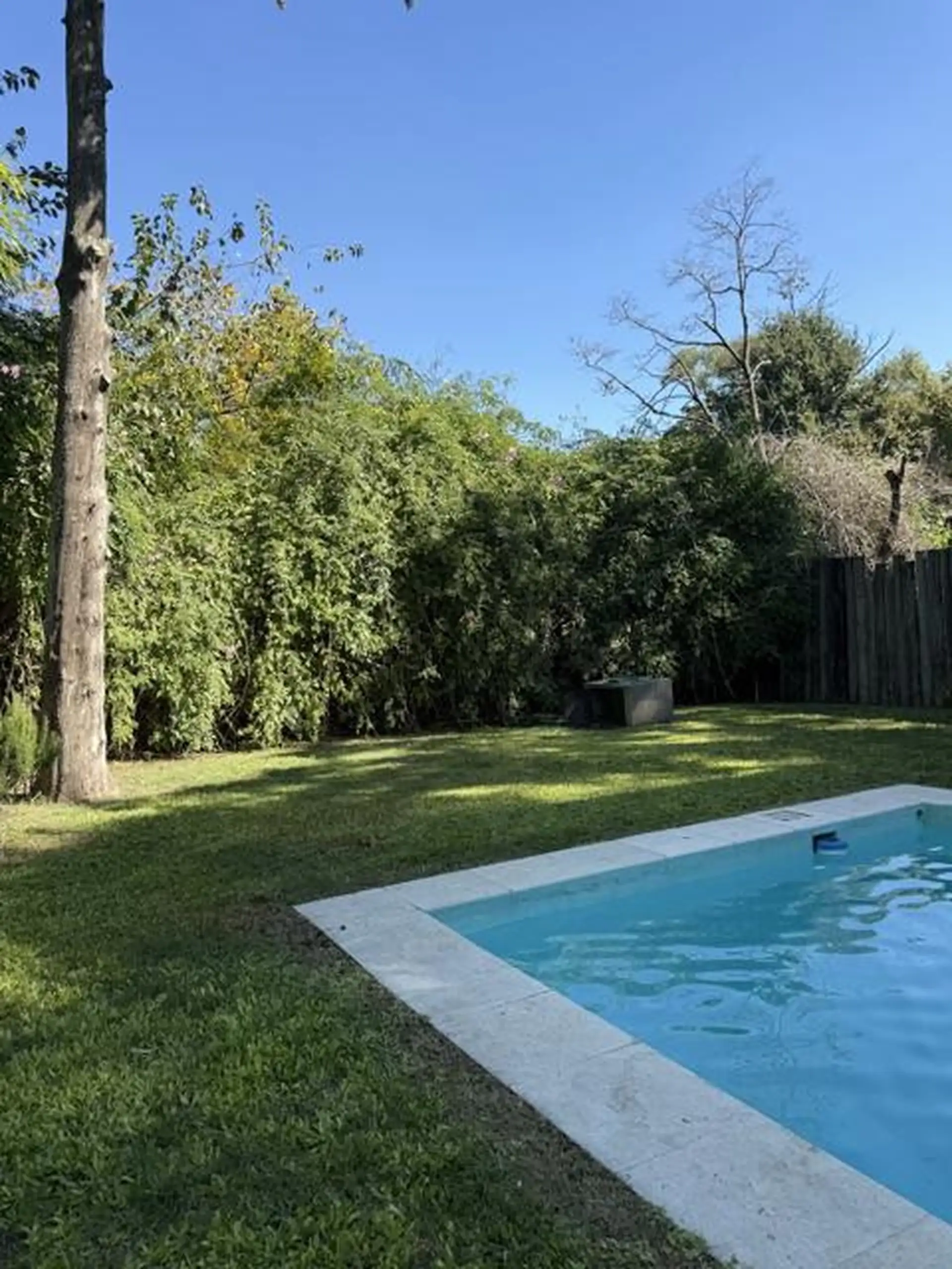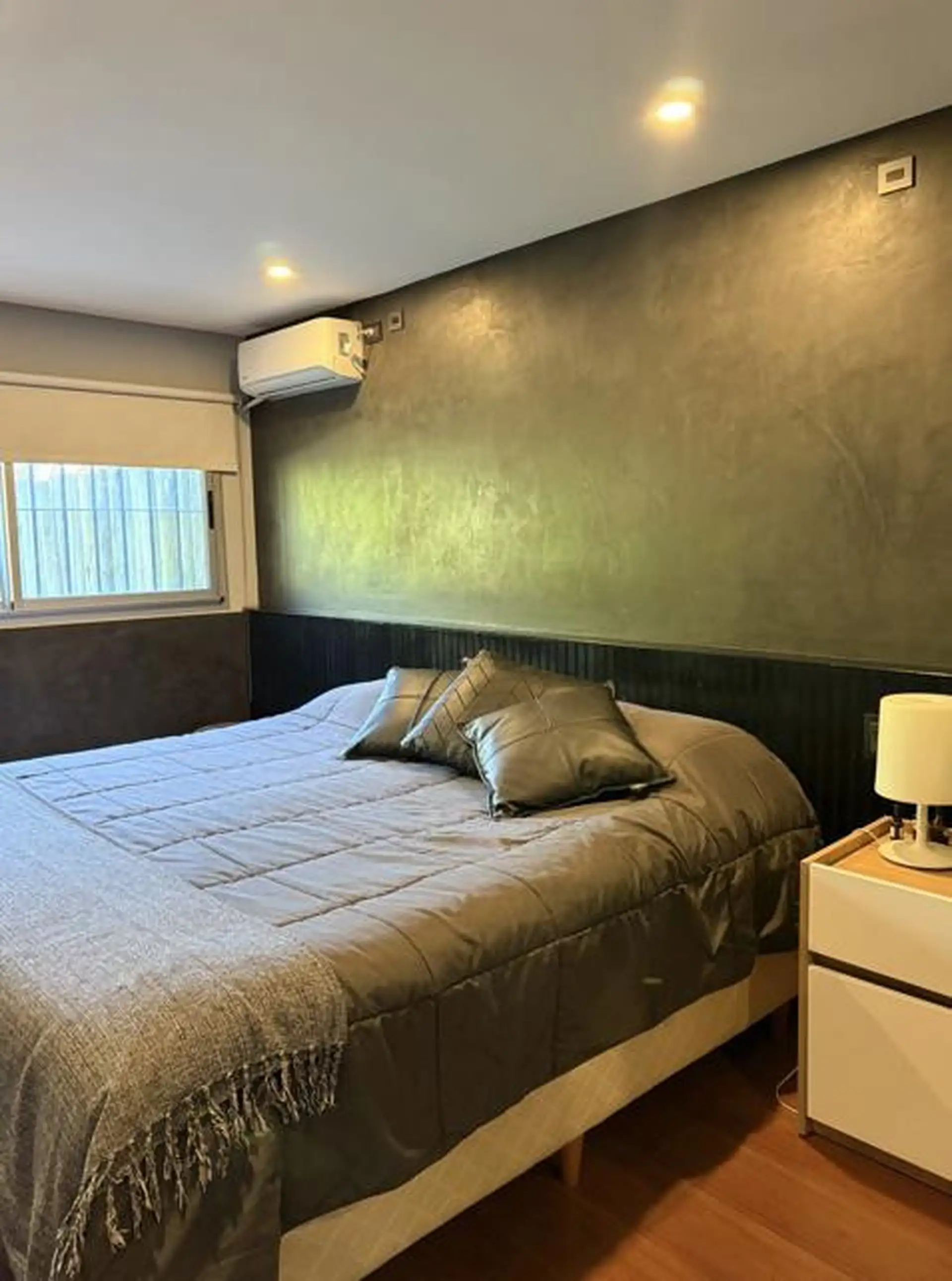 Частный дом в два этажа на участке более 500 m² в Udaondo, с садом на участке и окнами на территорию спереди. Гараж с крытым местом для двух автомобилей и место для сквозной парковки. В доме гостиная-столовая, кухня с нижними шкафами и навесными полками, барная стойка для завтрака. Спальня в suite с гидромассажем и гардеробной, с кондиционером и отоплением типа tiro balanceado; второй вариант — спальня или кабинет, отдельная ванная комната. На втором этаже холл для распределения, две спальни с ш