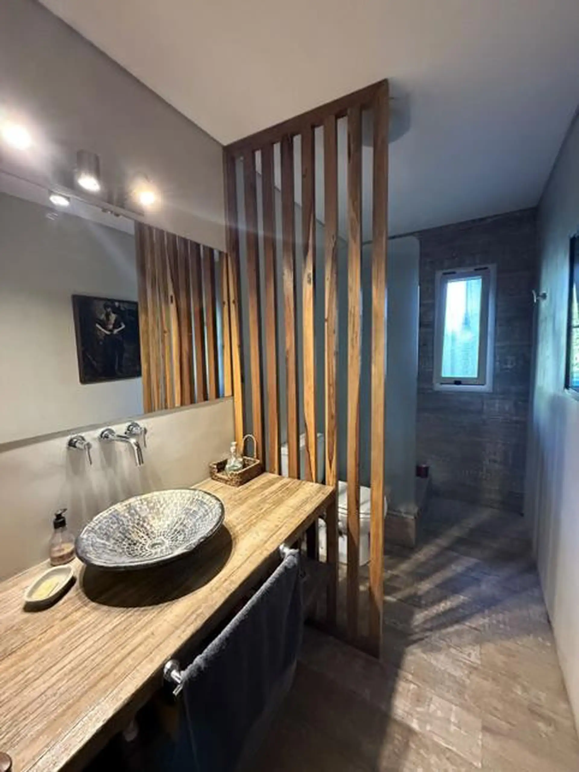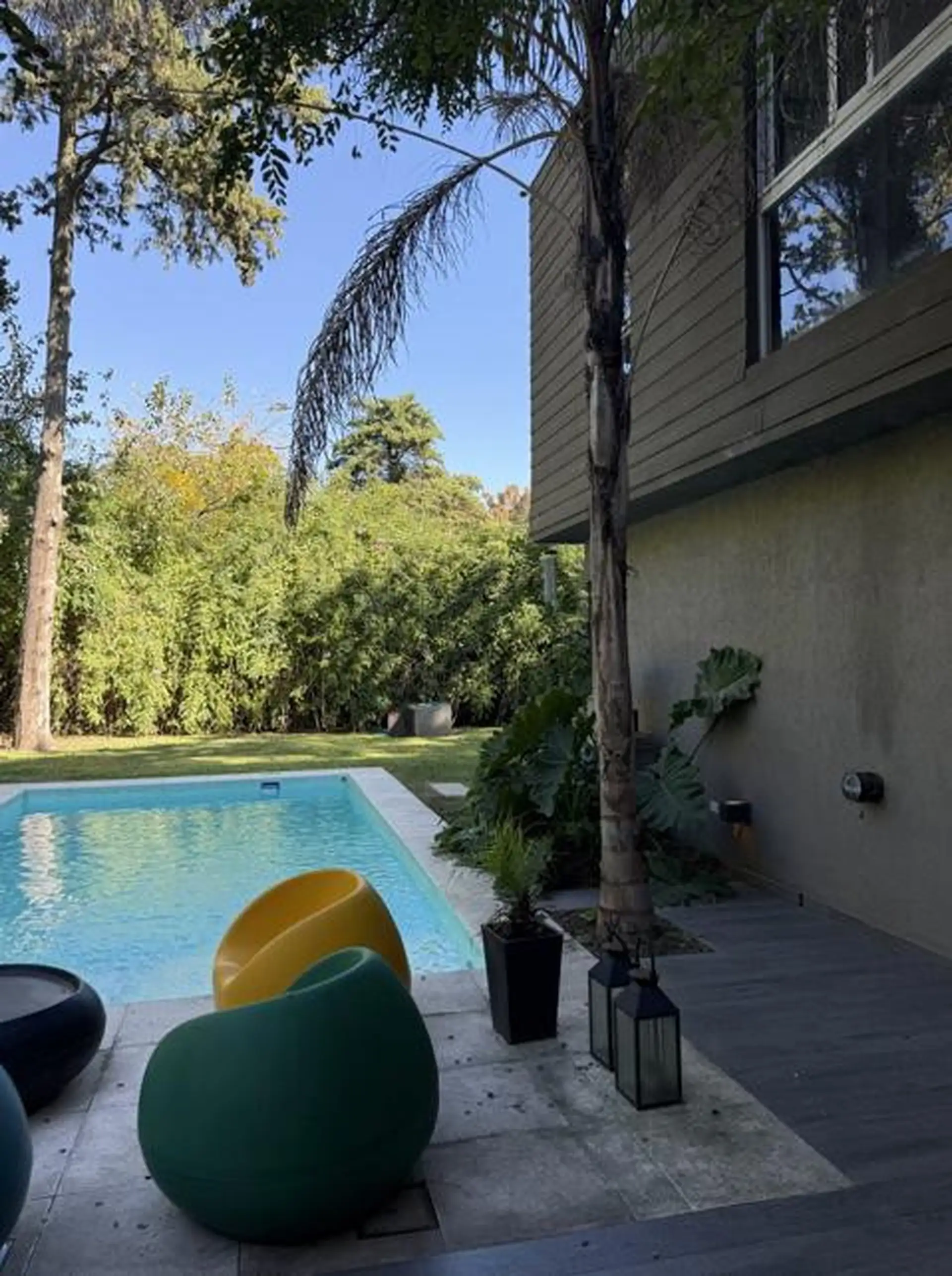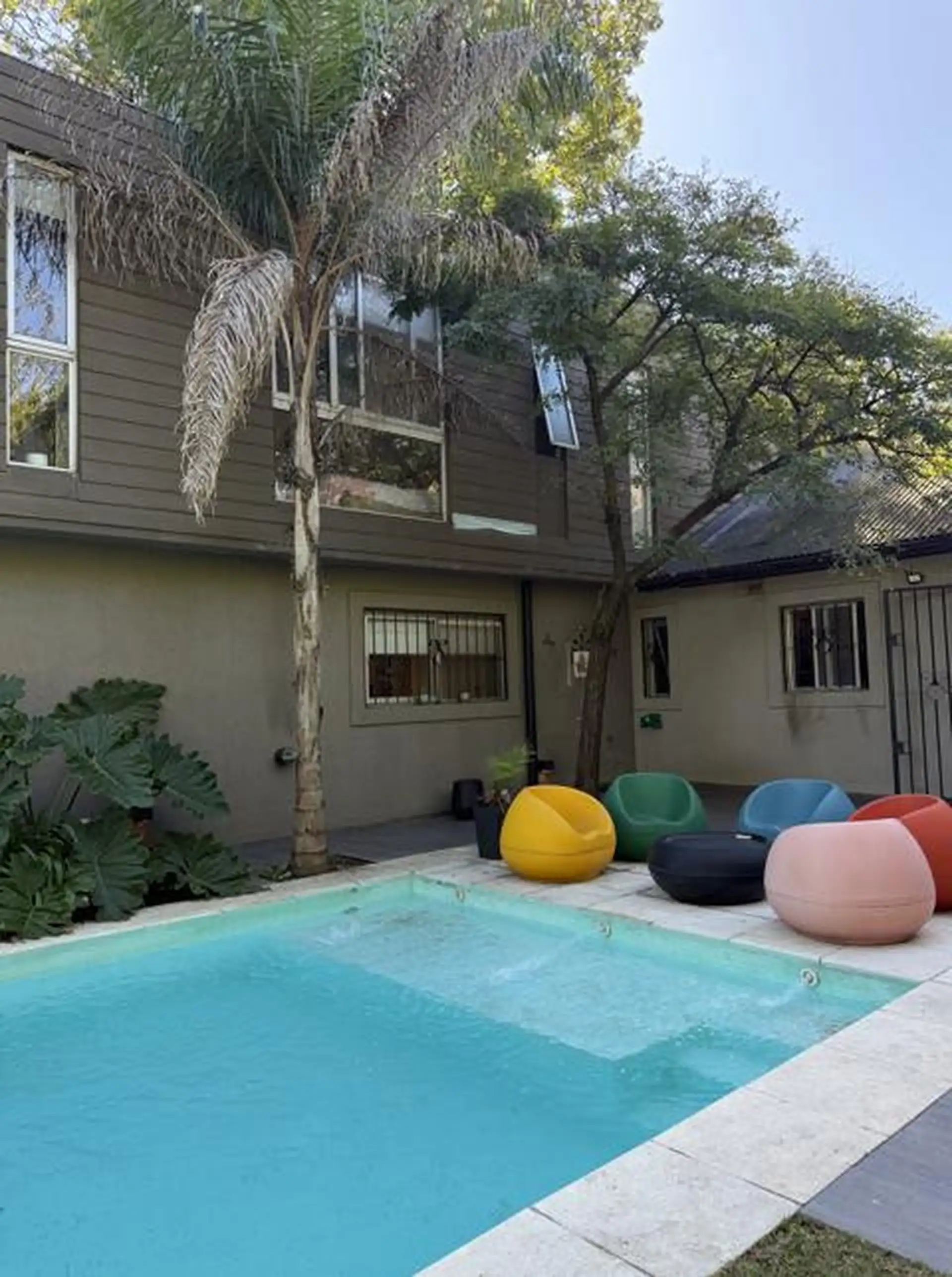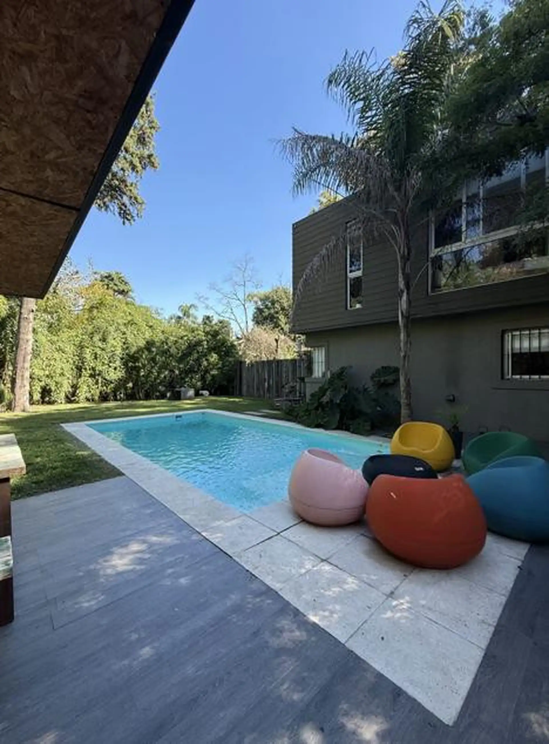 Частный дом в два этажа на участке более 500 m² в Udaondo, с садом на участке и окнами на территорию спереди. Гараж с крытым местом для двух автомобилей и место для сквозной парковки. В доме гостиная-столовая, кухня с нижними шкафами и навесными полками, барная стойка для завтрака. Спальня в suite с гидромассажем и гардеробной, с кондиционером и отоплением типа tiro balanceado; второй вариант — спальня или кабинет, отдельная ванная комната. На втором этаже холл для распределения, две спальни с ш
