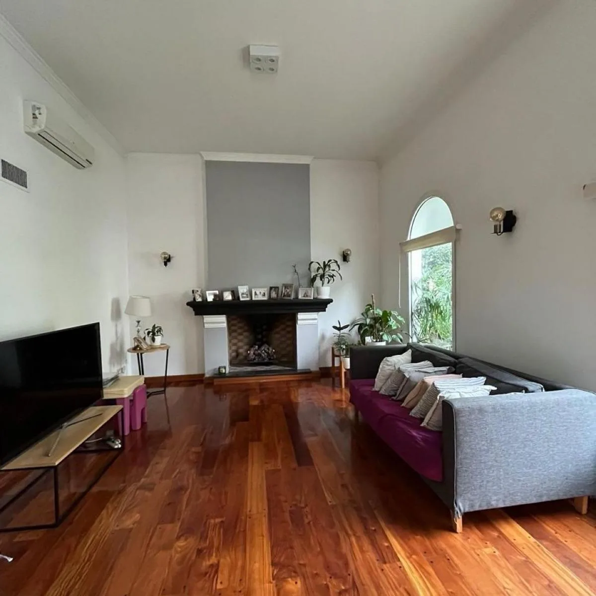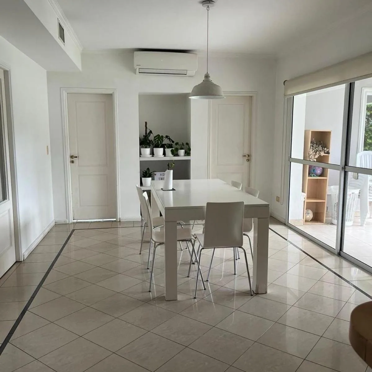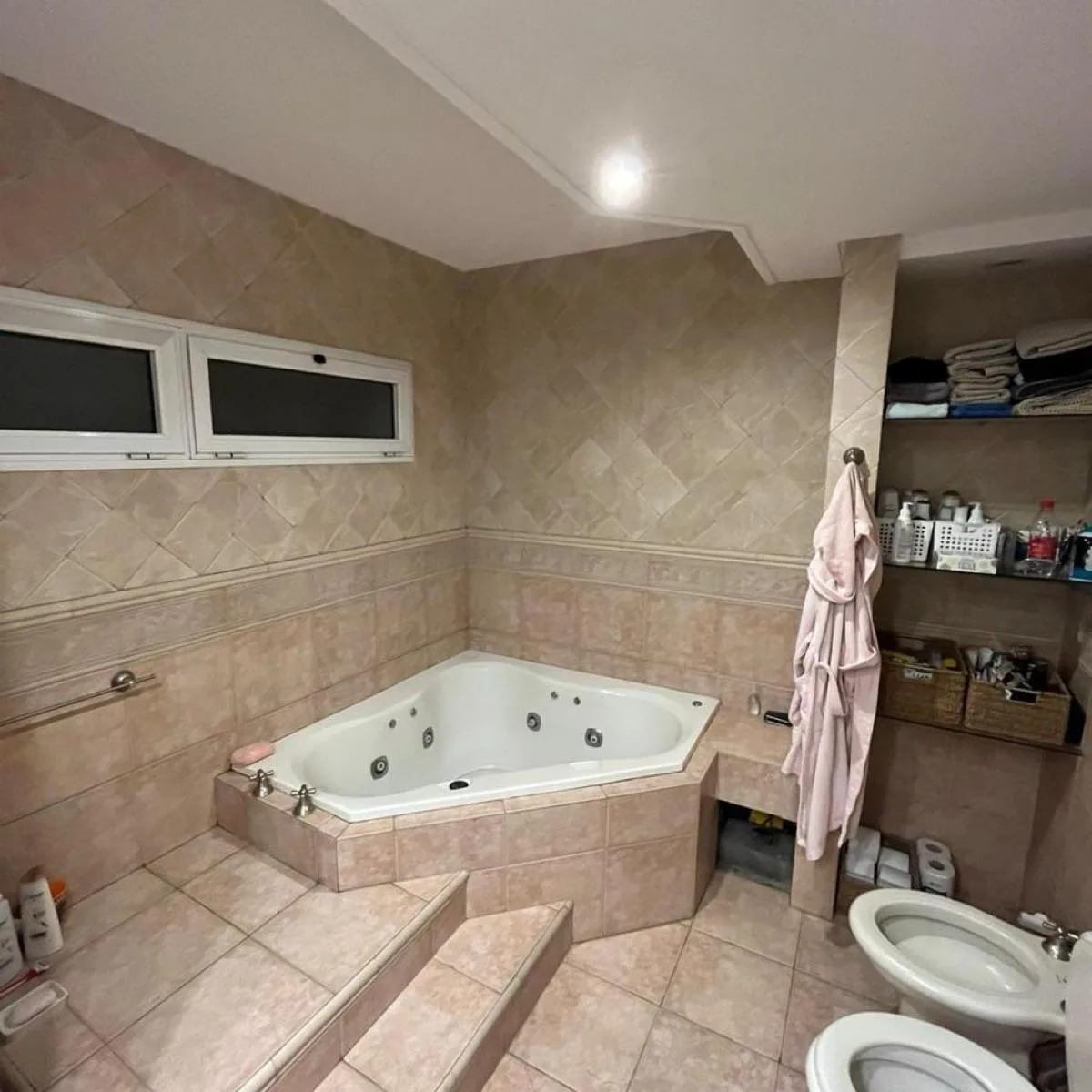 Дом в Barrio Cerrado El Jagüel, Parque Leloir. 4 спальни: 1 на первом этаже и 3 на втором. В доме гостиная-столовая с камином на дровах, центральное отопление и кондиционеры в основных помещениях. На первом этаже есть туалет для гостей и универсальное помещение, которое может использоваться как гараж или playroom, с выходом в обеденную зону и на кухню; кухня оборудована барной стойкой для завтраков, также предусмотрена отдельная прачечная. На участке есть крытая галерея с зоной гриля, сад и басс