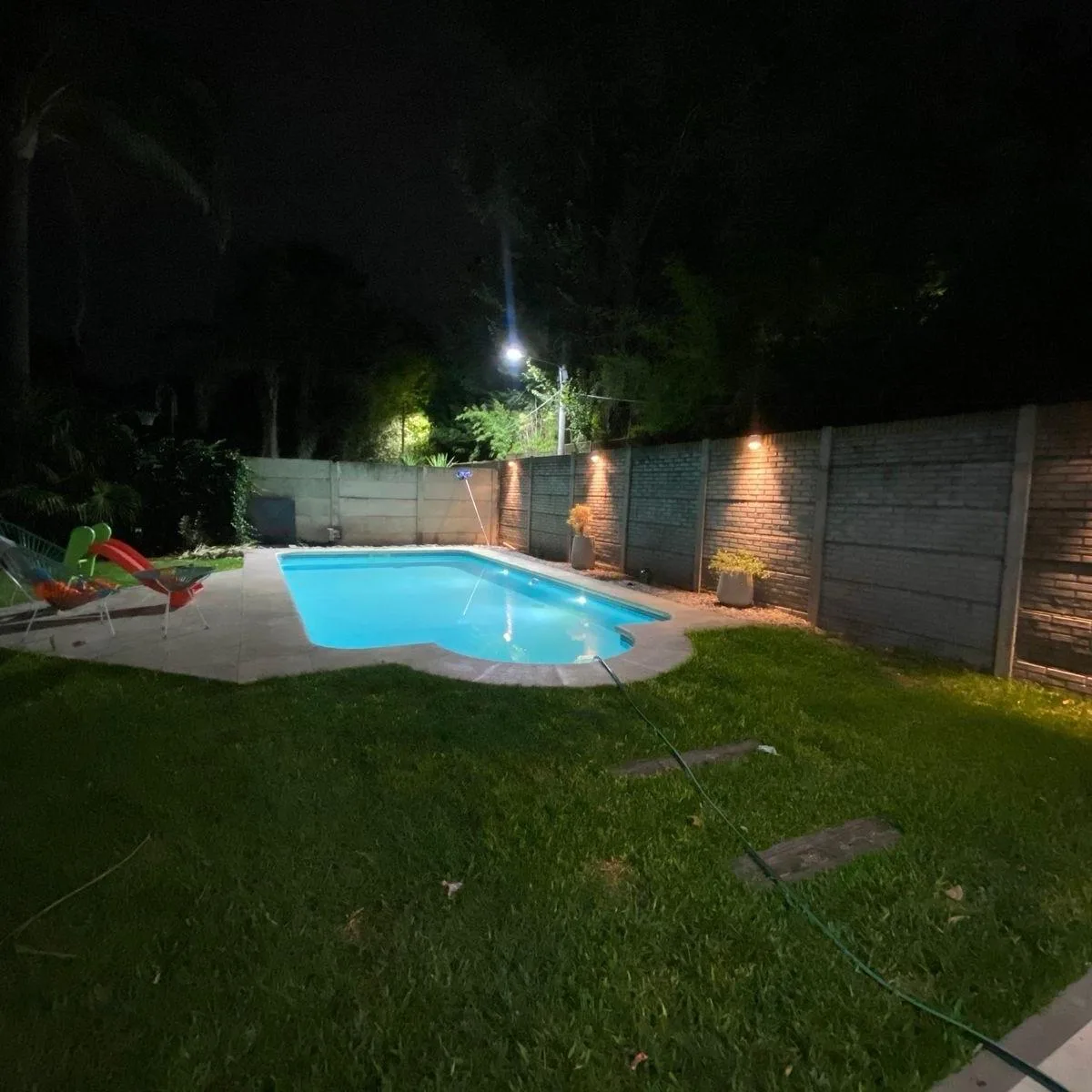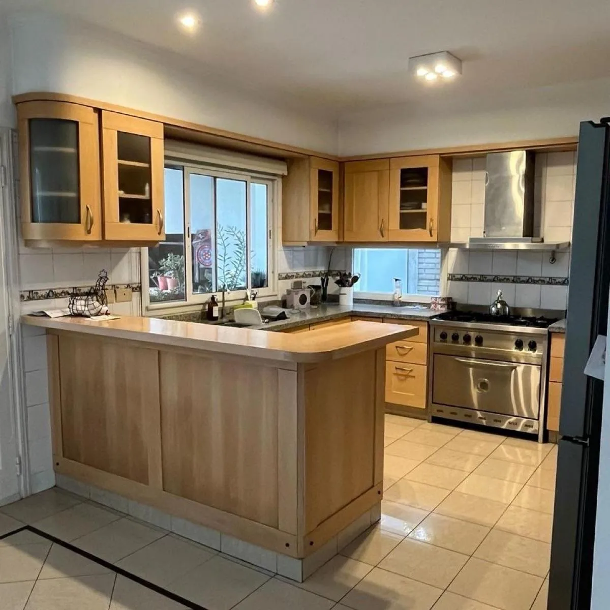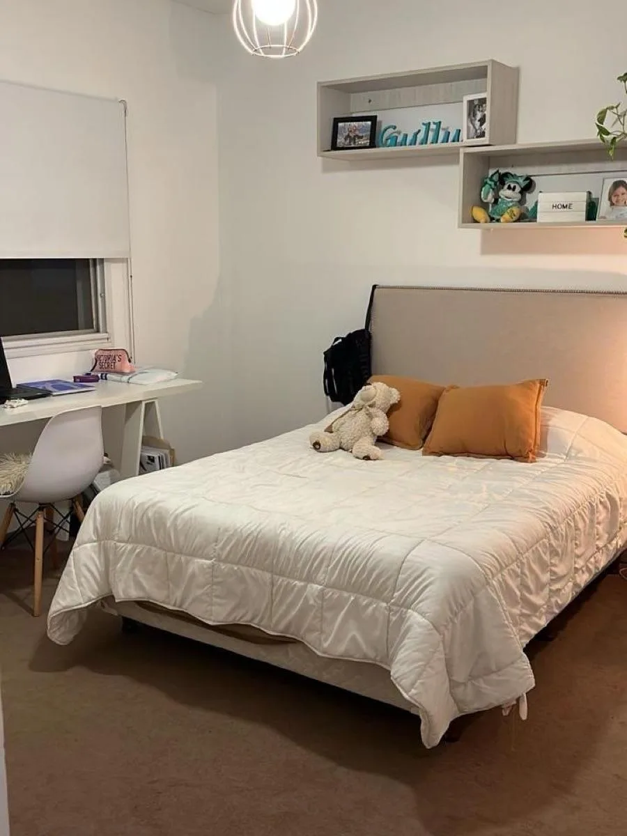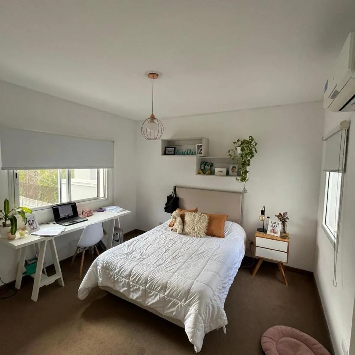Дом в Barrio Cerrado El Jagüel, Parque Leloir. 4 спальни: 1 на первом этаже и 3 на втором. В доме гостиная-столовая с камином на дровах, центральное отопление и кондиционеры в основных помещениях. На первом этаже есть туалет для гостей и универсальное помещение, которое может использоваться как гараж или playroom, с выходом в обеденную зону и на кухню; кухня оборудована барной стойкой для завтраков, также предусмотрена отдельная прачечная. На участке есть крытая галерея с зоной гриля, сад и басс