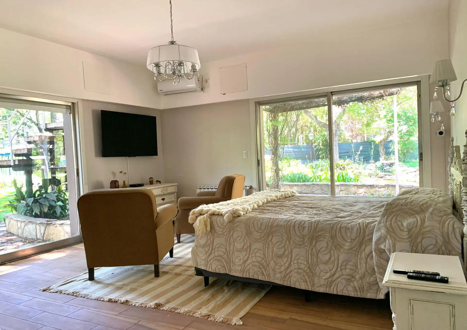 Дом в 2 уровнях, 4 спальни. На верхнем этаже: гостиная-столовая с балконом и видом на лагуну, кухня-гостиная с вторым выходом в парк, спальня и 2 туалета. На нижнем этаже: 2 спальни с большими окнами и прямым выходом к лагуне, 1 полностью оборудованная ванная, главная спальня со своей ванной комнатой. На участке: оранжерея, крытая зона гриля с барбекю и отдельной ванной, лагуна с мостиком и бассейн.