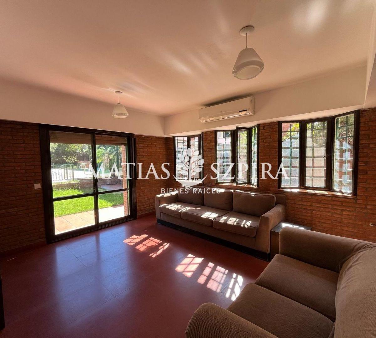 Временная аренда дома в PH в Ituzaingó, Villa Udaondo. Дом площадью на участке 4000 m², 5 комнат, с бассейном и зоной гриля. Есть игровая комната и кухня, объединённая с обеденной зоной с видом на сад. В описании указаны крытая парковка на 3 автомобиля и автоматические ворота. Арендная ставка: 3000 USD в месяц при договоре на 1 год, с возможностью заезда в декабре–феврале.