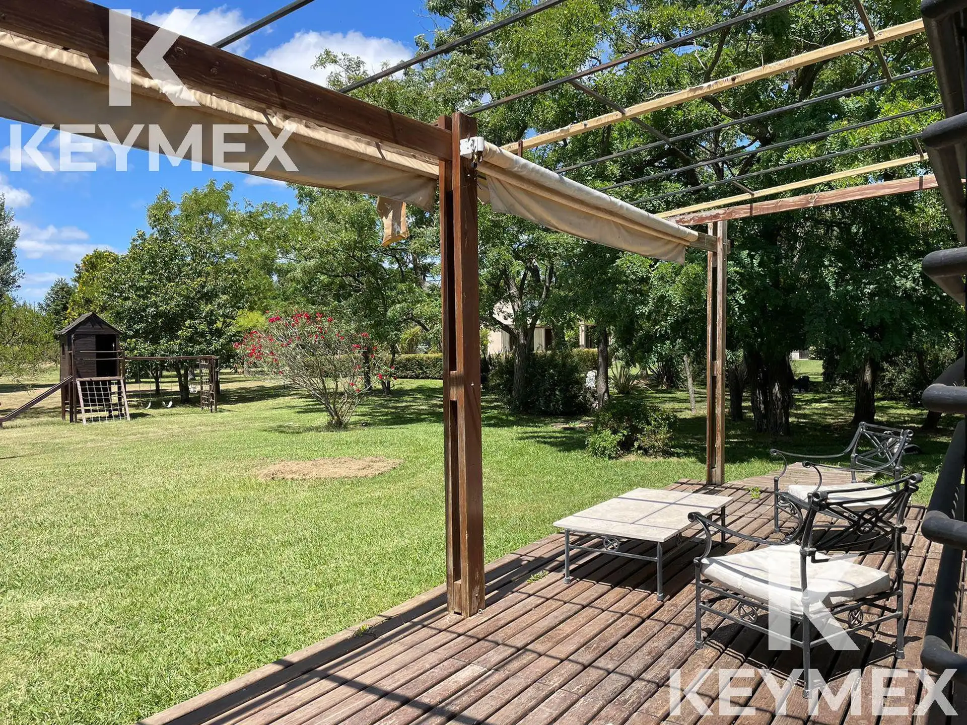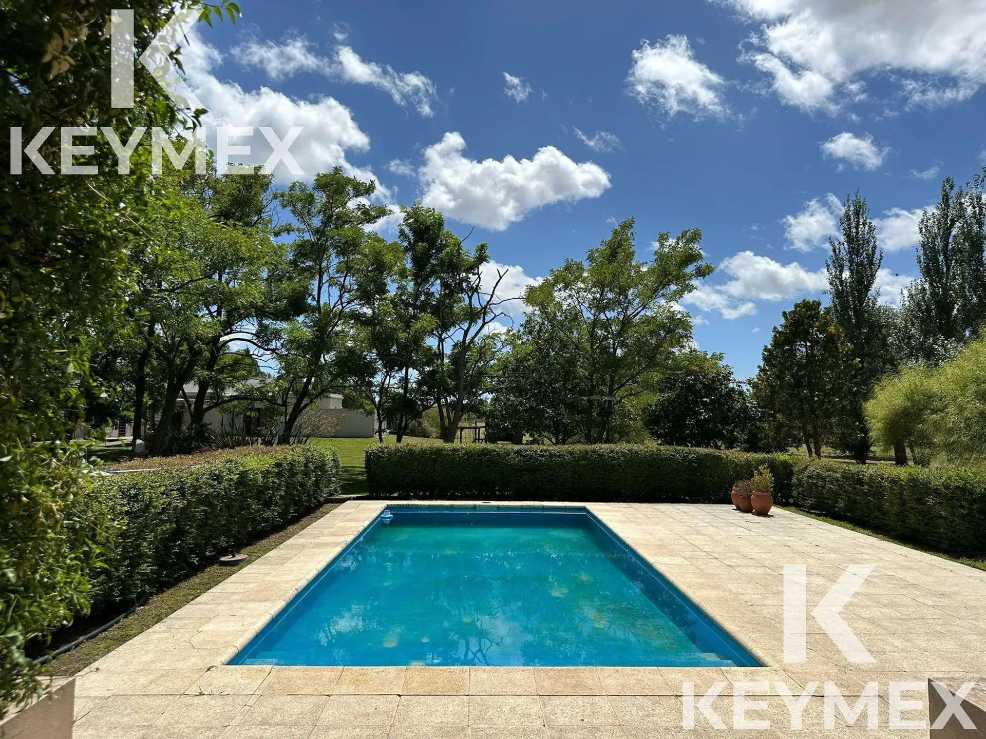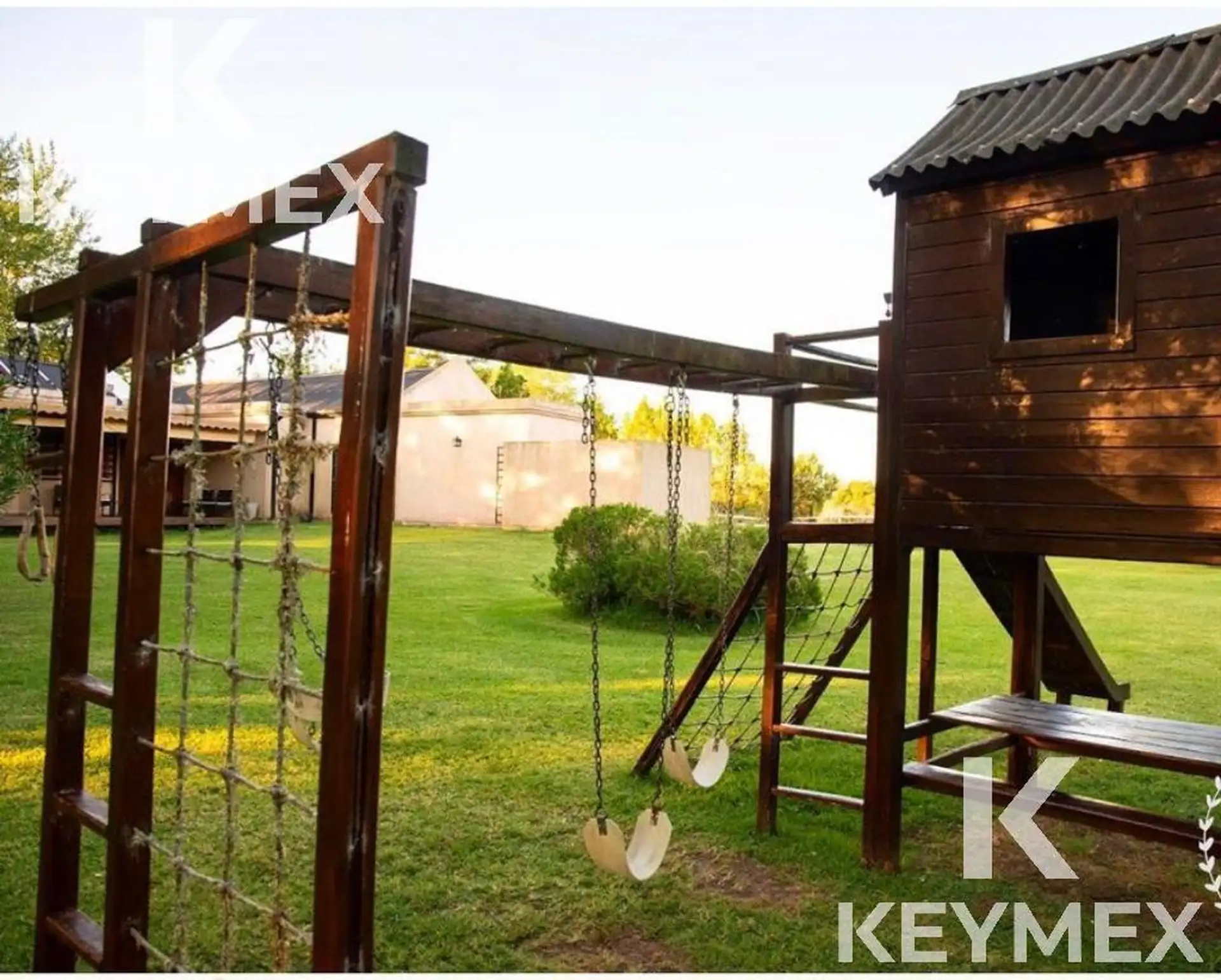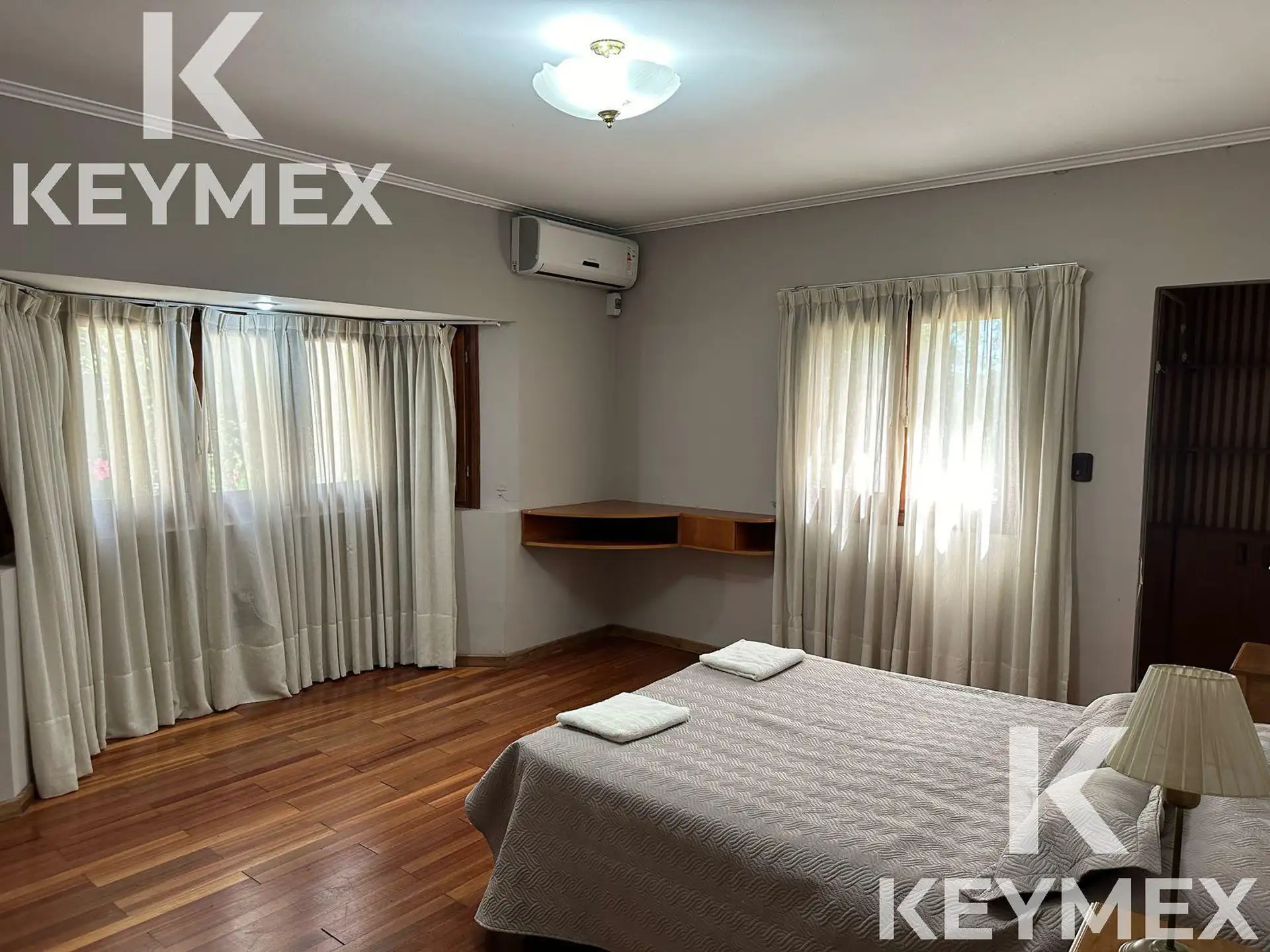 Временная аренда дома в Los Hornos, La Plata, на участке более 2 гектаров с парковой территорией. Дом расположен в одном уровне и включает 4 спальни: главная спальня en suite с гардеробной и ванной с джакузи, ещё две спальни с окнами и встроенными шкафами, а также 4-я спальня для обслуживающего персонала или общего использования с отдельным входом и отдельной полной ванной. На кухне-столовой установлены мебель под и над столешницей из чёрного мрамора, электрическая духовка, а также электрическая