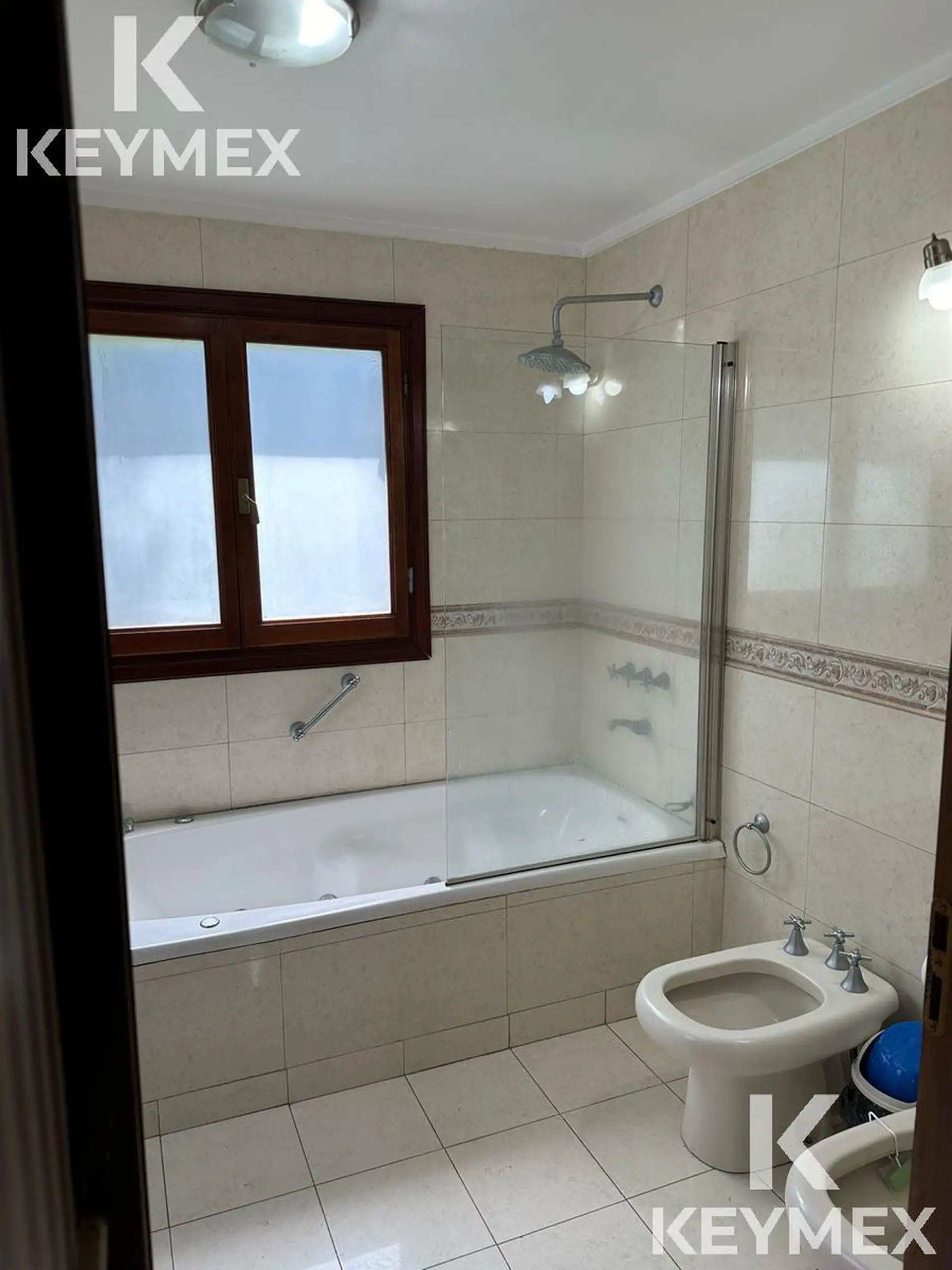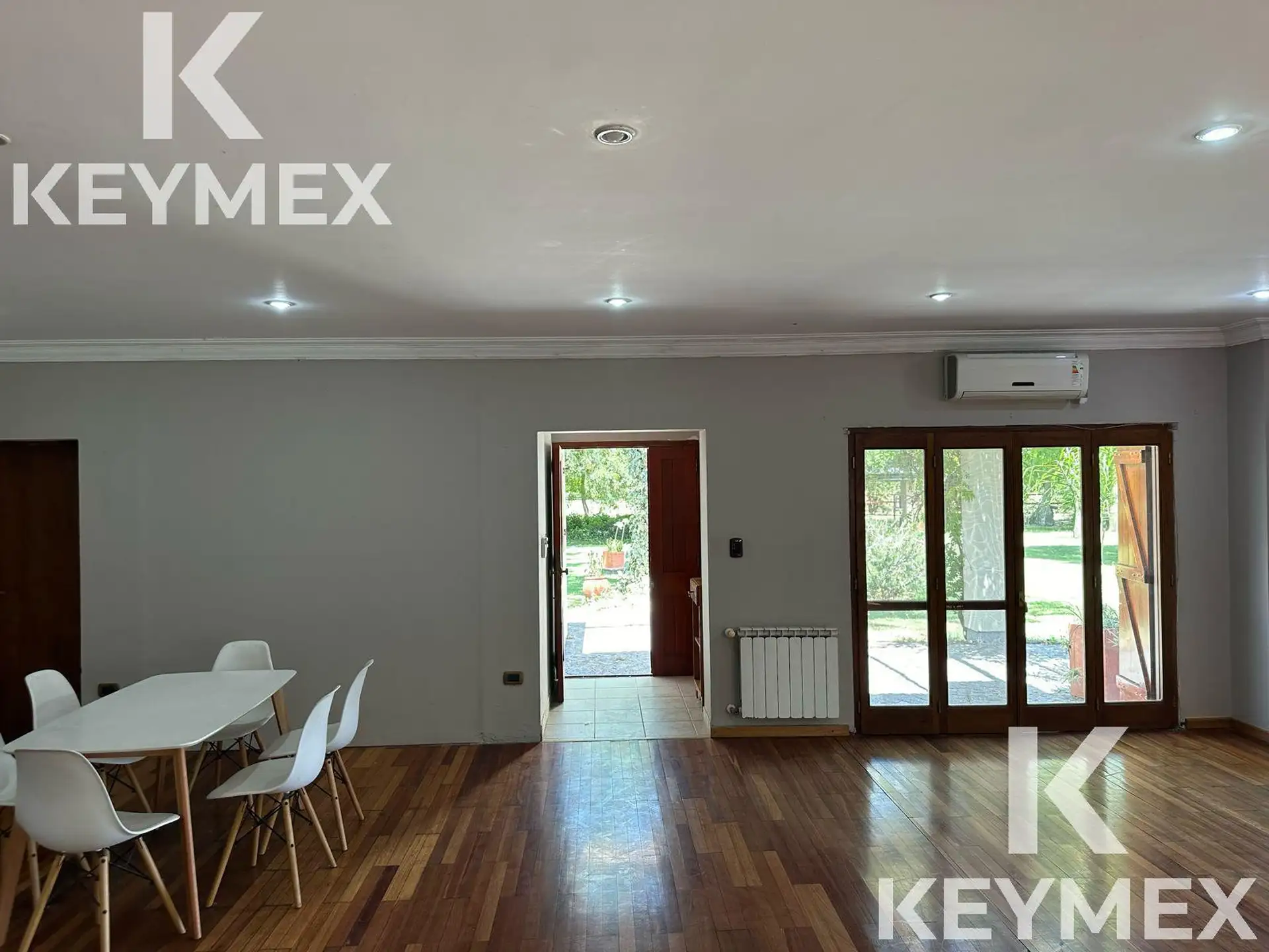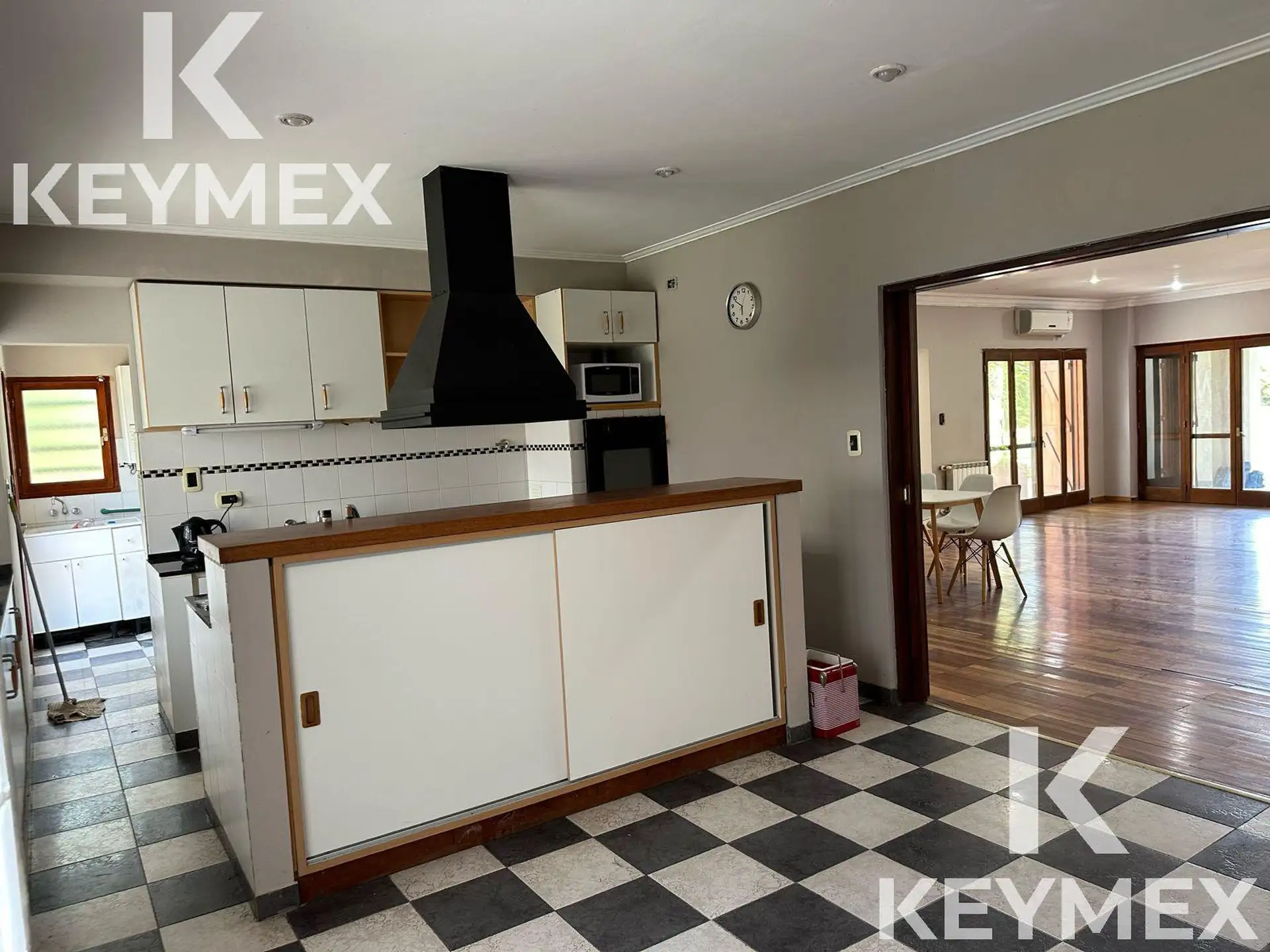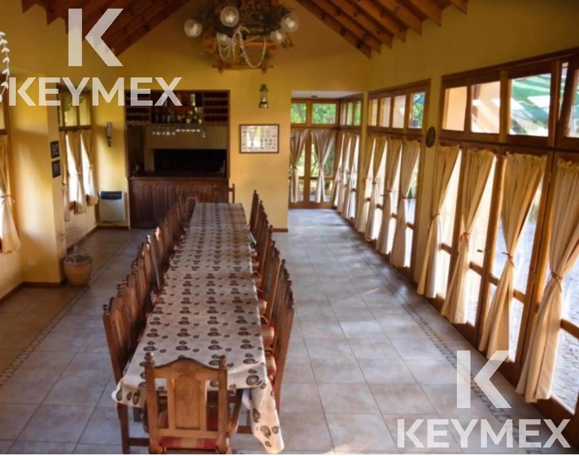 Временная аренда дома в Los Hornos, La Plata, на участке более 2 гектаров с парковой территорией. Дом расположен в одном уровне и включает 4 спальни: главная спальня en suite с гардеробной и ванной с джакузи, ещё две спальни с окнами и встроенными шкафами, а также 4-я спальня для обслуживающего персонала или общего использования с отдельным входом и отдельной полной ванной. На кухне-столовой установлены мебель под и над столешницей из чёрного мрамора, электрическая духовка, а также электрическая