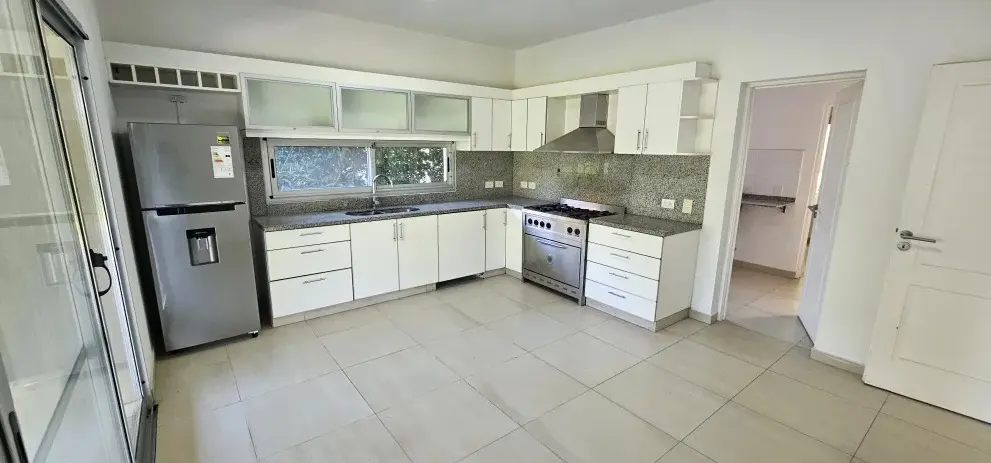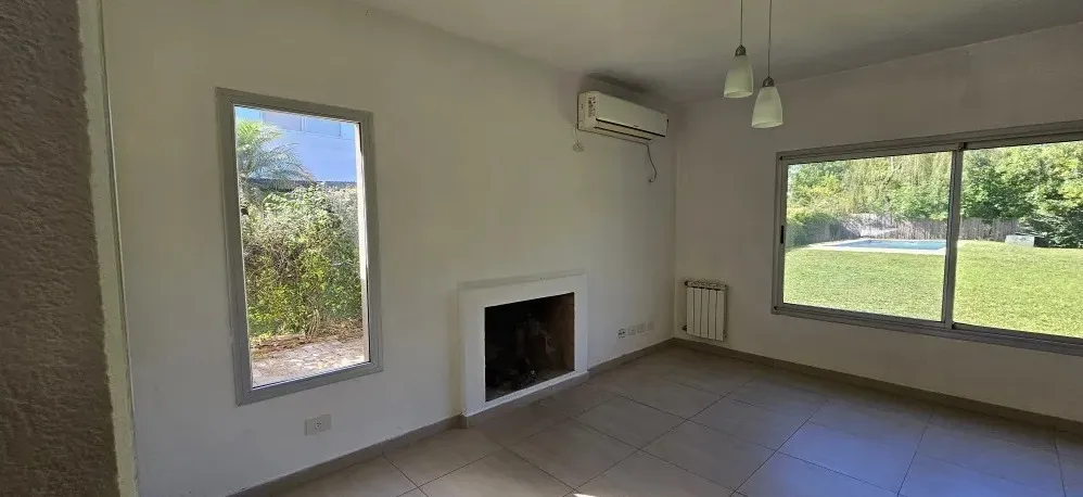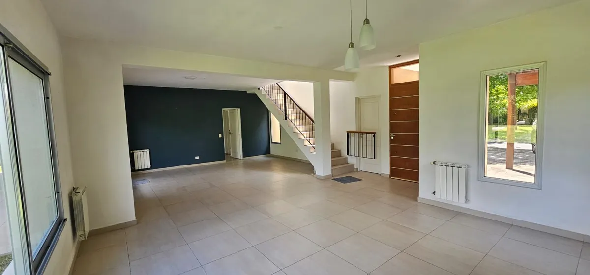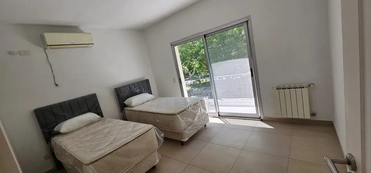Дом в аренду в Santa Catalina, Tigre, на участке 1.003 m². 4 спальни на PA, 1 спальня для прислуги с ванной на PB, всего 4 ванные комнаты. Есть (полу)меблировка с новыми матрасами (somiers). В доме предусмотрены котёл и радиаторы во всех помещениях, кондиционеры во всех помещениях, окна со стеклопакетами DVH. Гараж вмещает до 9 автомобилей. Бассейн 5x10 м с автоматическим поливом; зона гриля (quincho) с parrilla. Есть выход к реке на расстоянии 180 м с внутренним причалом, муниципальное использо