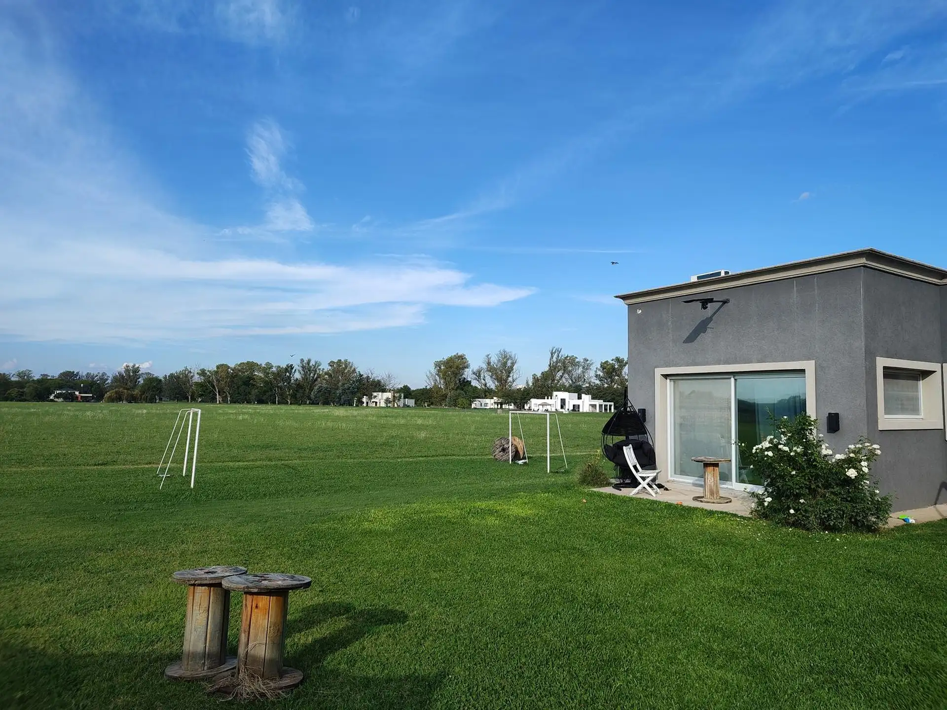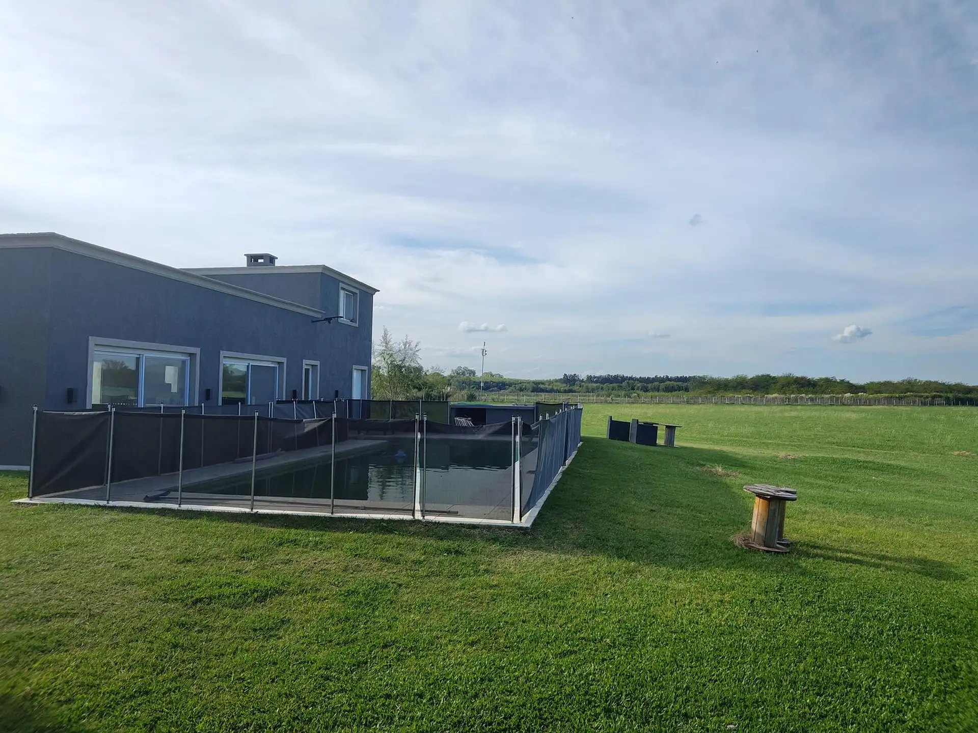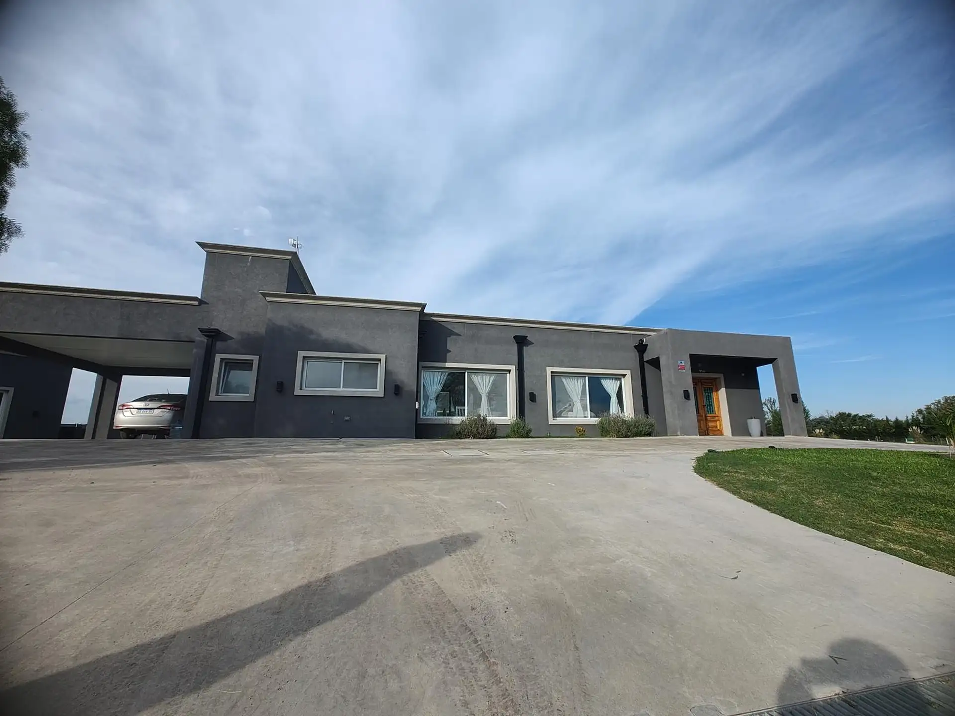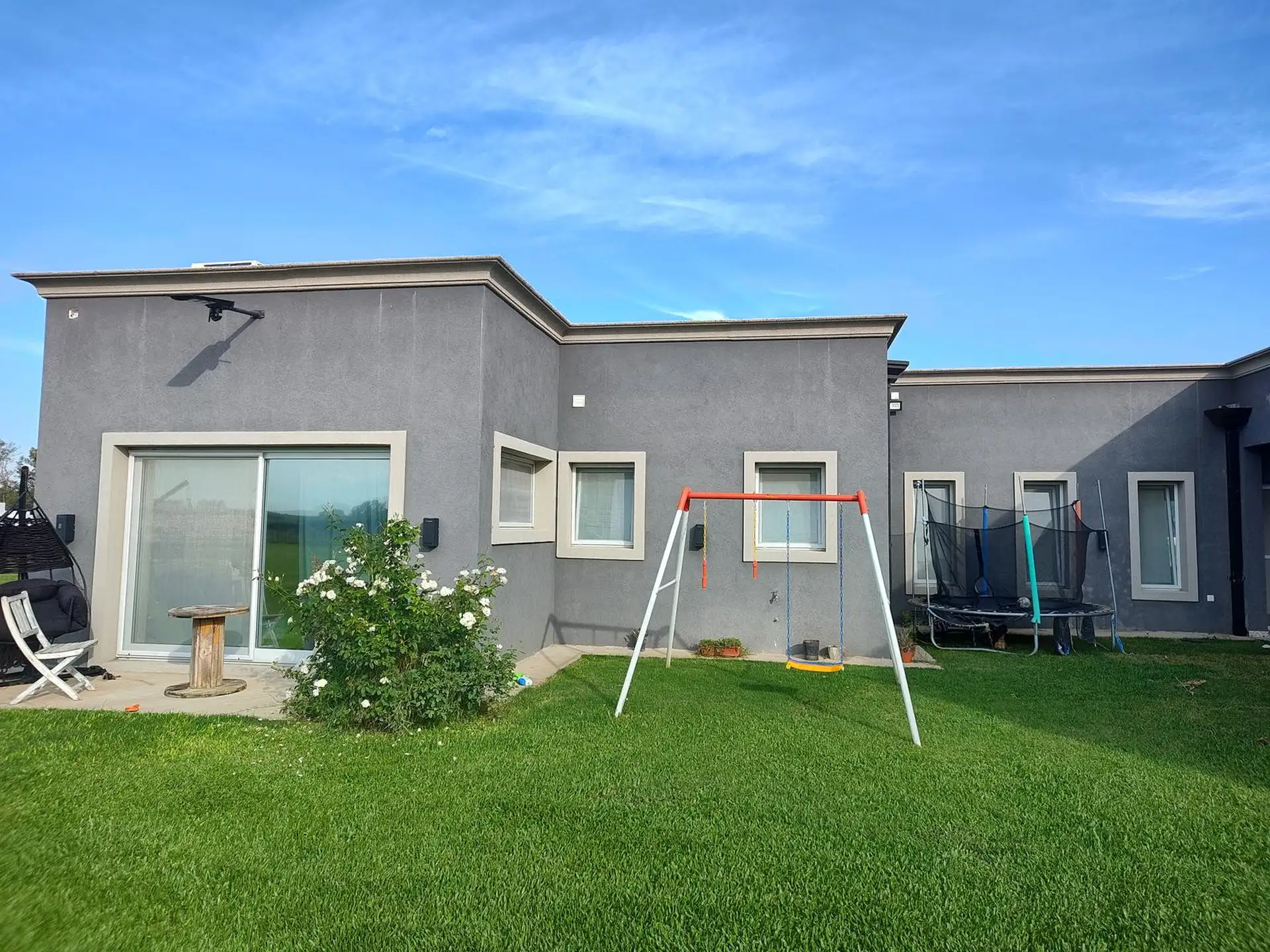 Дом в Luján, 6 комнат, на одном этаже. Вход через просторный холл с выходом в гостиную-столовую; кухня интегрирована. Три спальни с шкафами, главная спальня с ванной комнатой и гардеробной, 2 полноценных ванных комнаты. Есть постирочная, (закреплённое) парковочное место под навесом на 2 автомобиля, зона гриля с parrilla и бассейн. Участок 2000 m². В требованиях указаны аванс за 1 месяц, депозит за 1 месяц, агентские сборы, гарантия собственника или seguro de caución; аренда на год.