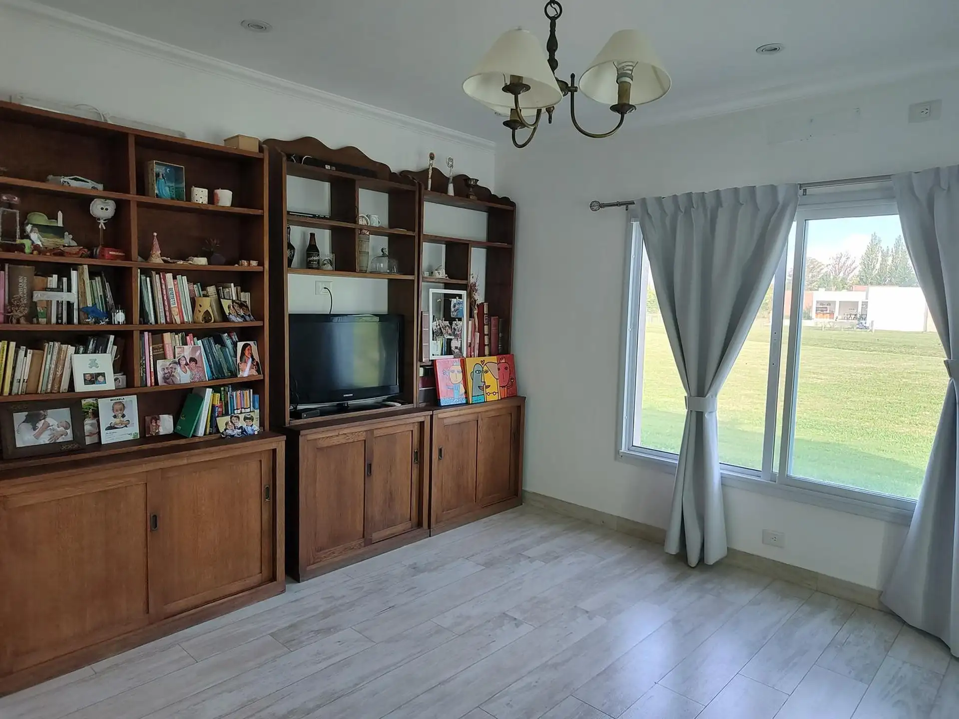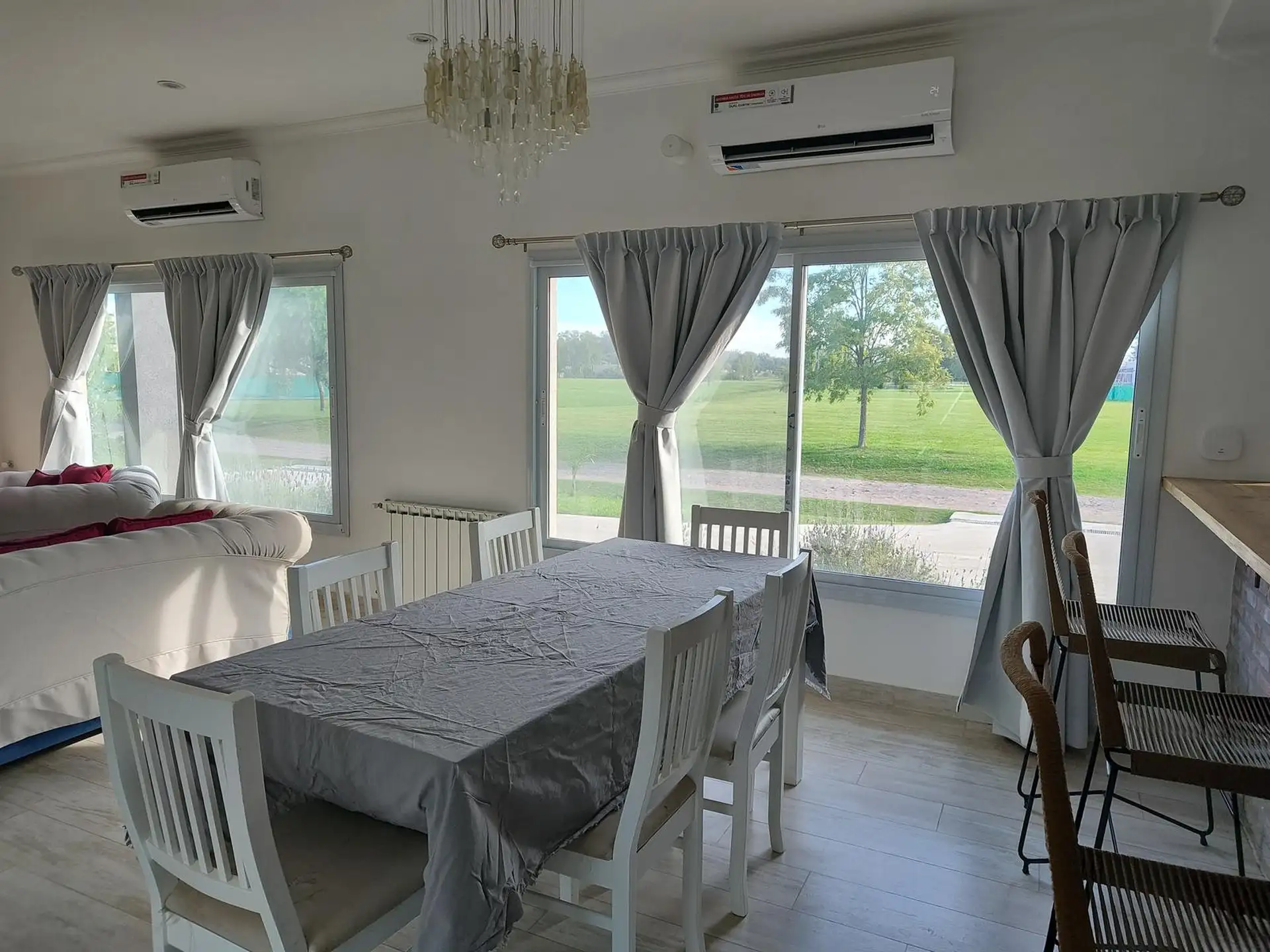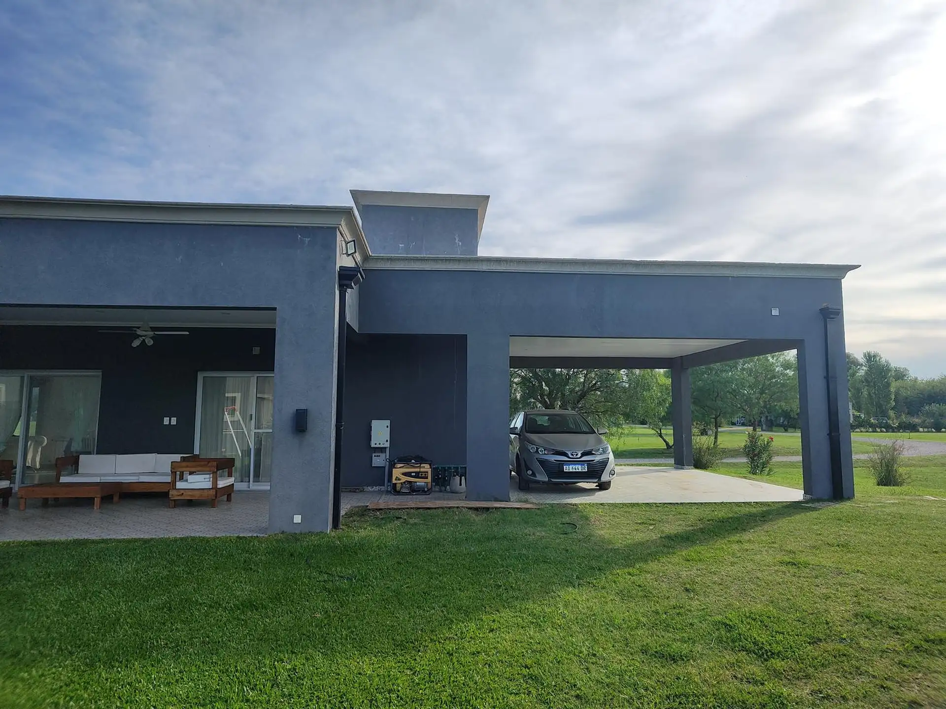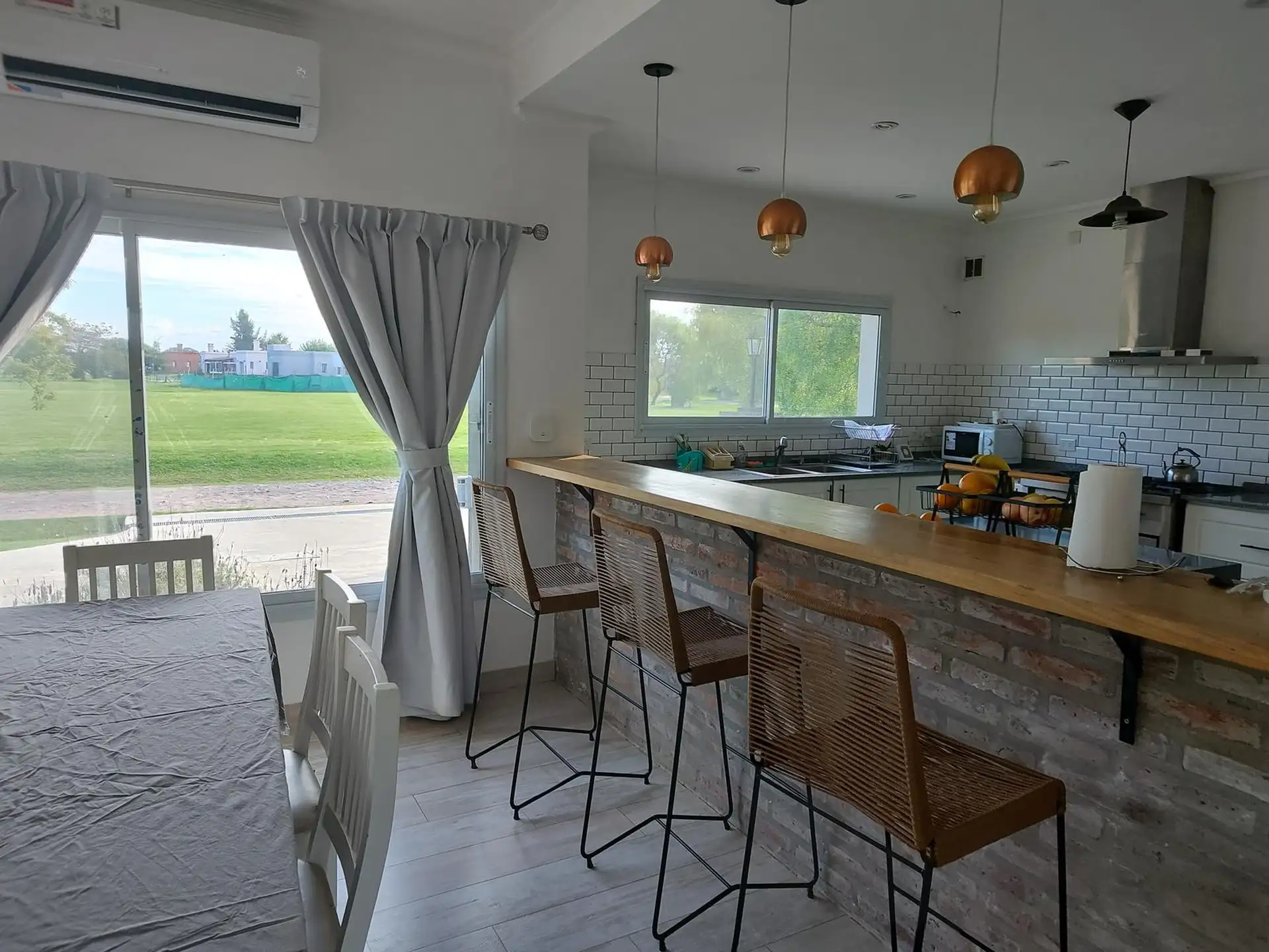 Дом в Luján, 6 комнат, на одном этаже. Вход через просторный холл с выходом в гостиную-столовую; кухня интегрирована. Три спальни с шкафами, главная спальня с ванной комнатой и гардеробной, 2 полноценных ванных комнаты. Есть постирочная, (закреплённое) парковочное место под навесом на 2 автомобиля, зона гриля с parrilla и бассейн. Участок 2000 m². В требованиях указаны аванс за 1 месяц, депозит за 1 месяц, агентские сборы, гарантия собственника или seguro de caución; аренда на год.