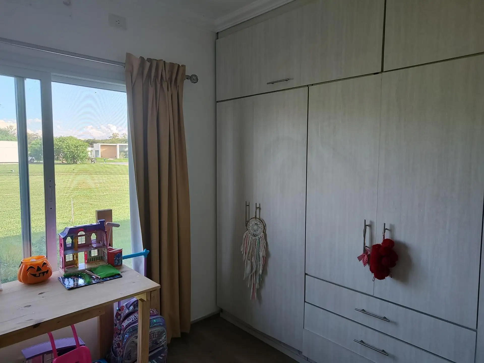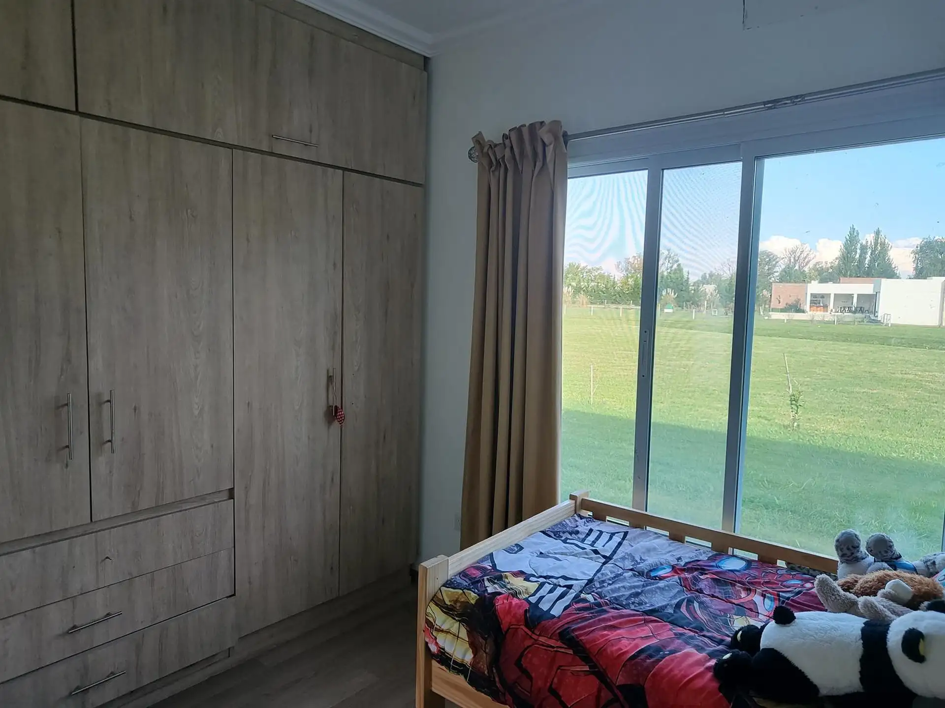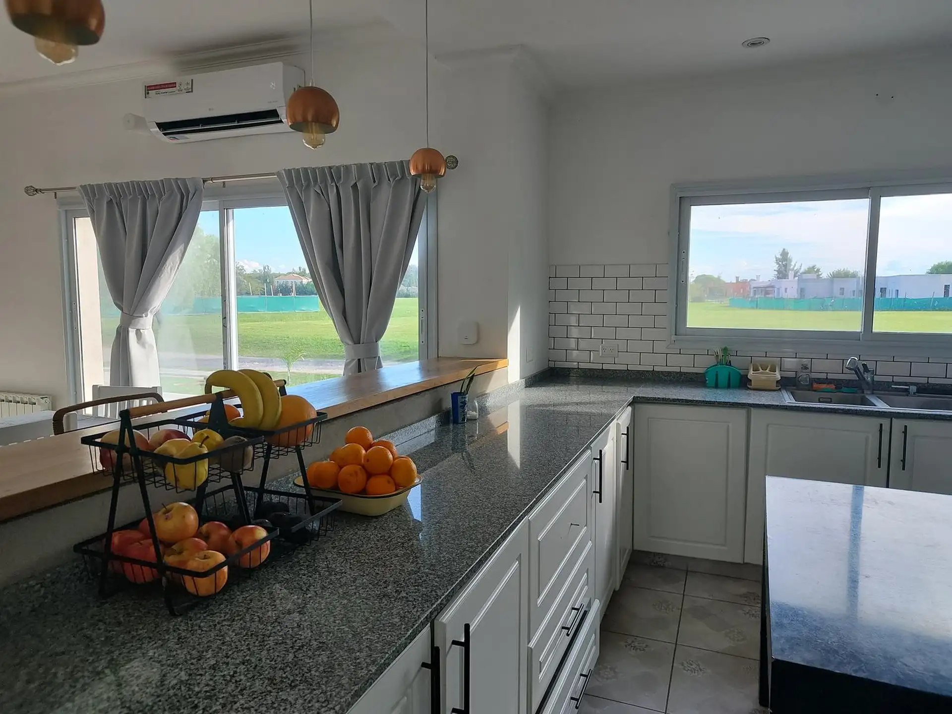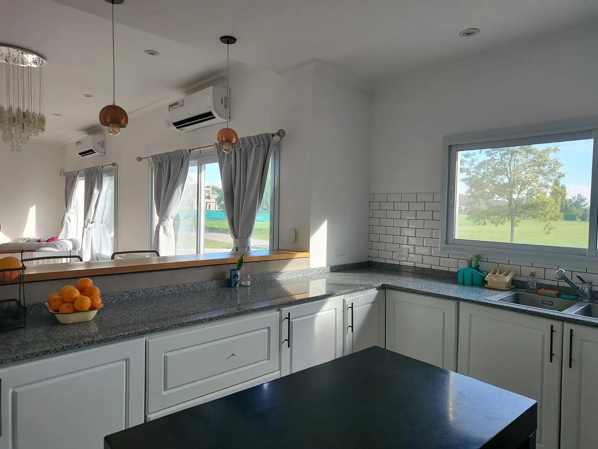 Дом в Luján, 6 комнат, на одном этаже. Вход через просторный холл с выходом в гостиную-столовую; кухня интегрирована. Три спальни с шкафами, главная спальня с ванной комнатой и гардеробной, 2 полноценных ванных комнаты. Есть постирочная, (закреплённое) парковочное место под навесом на 2 автомобиля, зона гриля с parrilla и бассейн. Участок 2000 m². В требованиях указаны аванс за 1 месяц, депозит за 1 месяц, агентские сборы, гарантия собственника или seguro de caución; аренда на год.