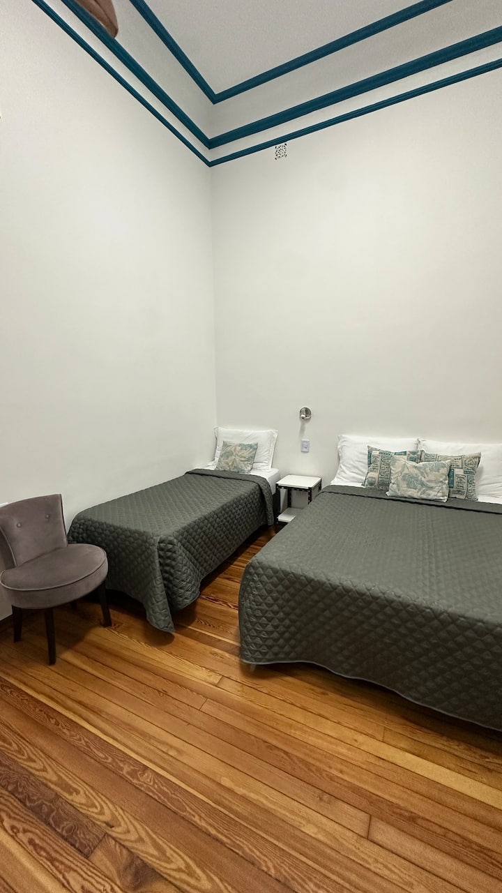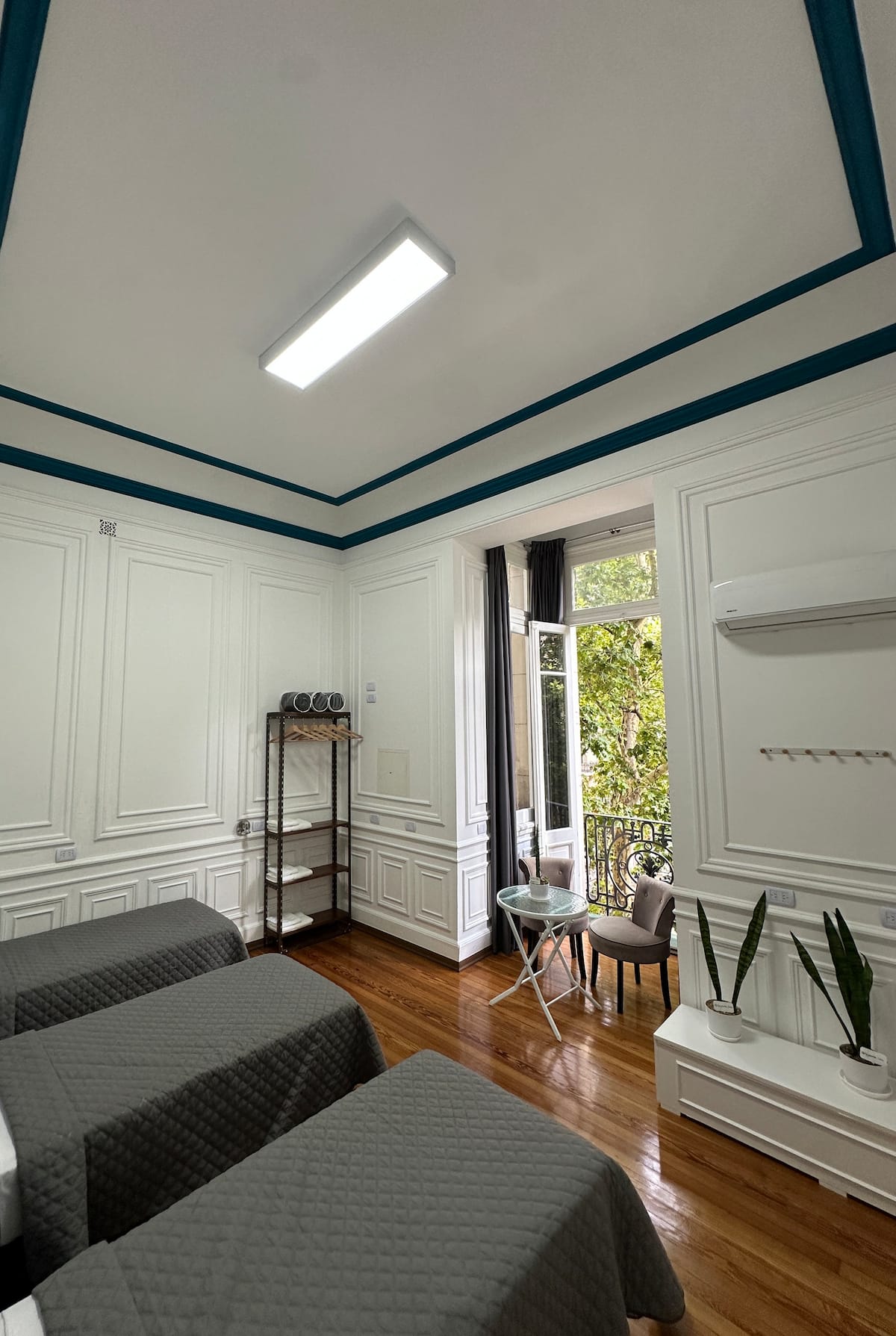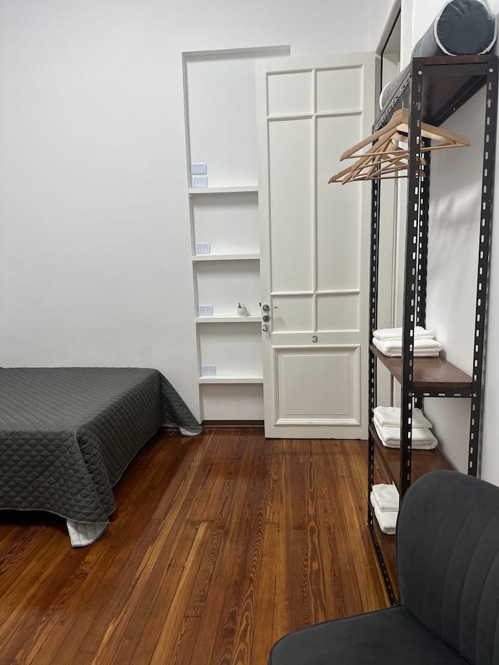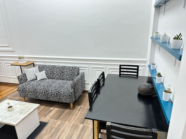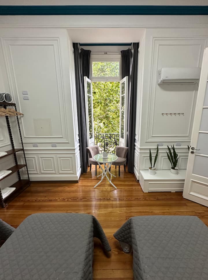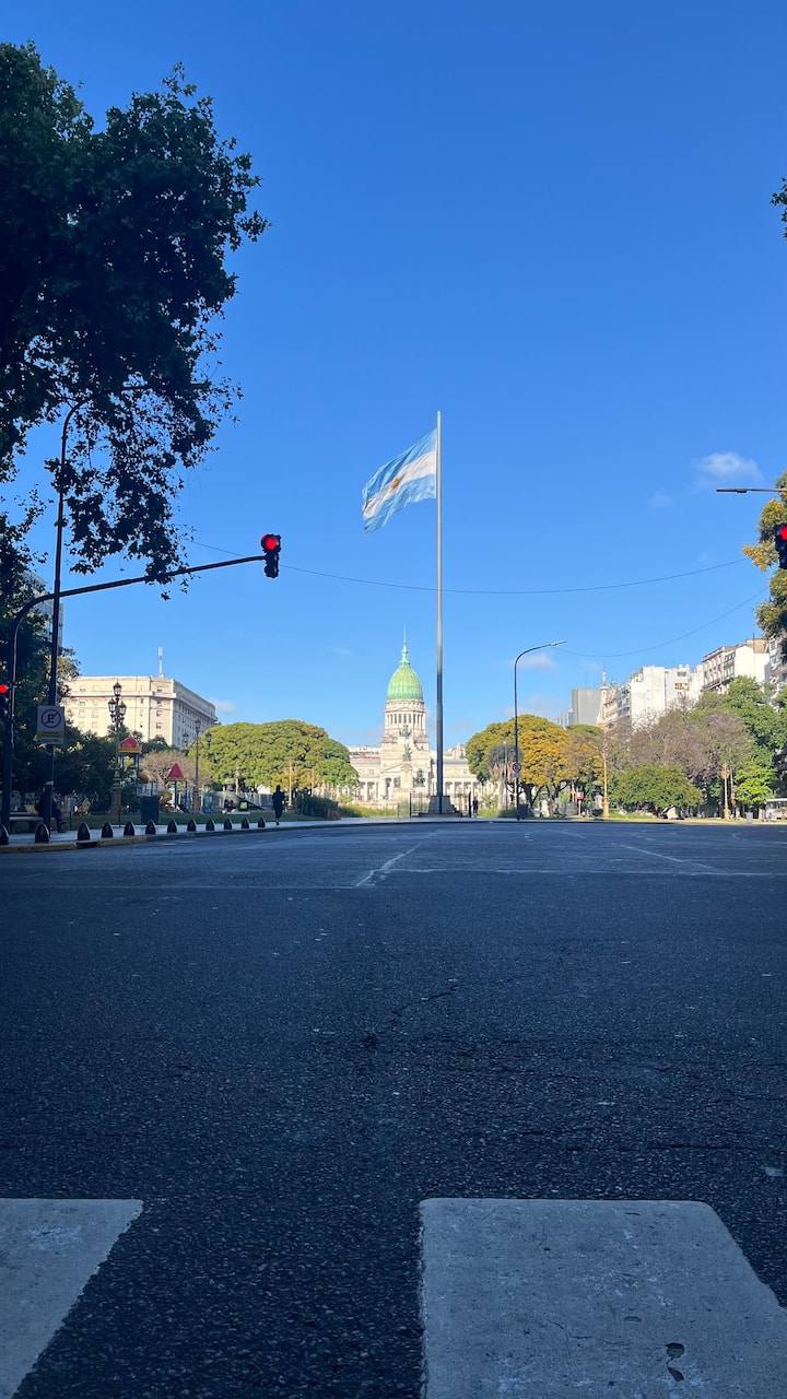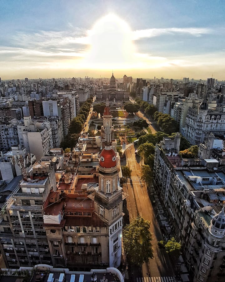 Квартира в Monserrat на Av. de Mayo площадью 122 m², 4 спальни, 4 ванные комнаты. Высота потолков 4 m. В квартире есть гостиная-столовая и зона отдыха, кухня с электроплитой и техникой: микроволновая печь, холодильник, вытяжка, кофеварка, тостер, электрический чайник, стирально-сушильная машина. Во всех комнатах установлены кондиционеры с режимом охлаждения и обогрева. Вместимость указана до 13 гостей.