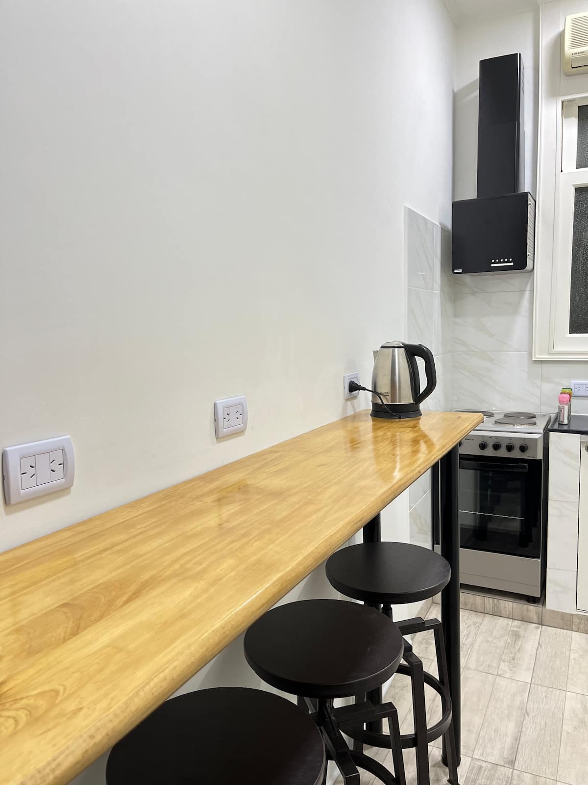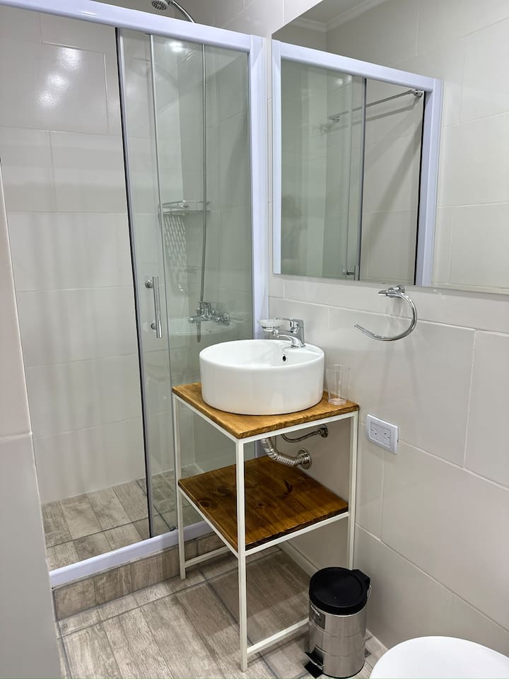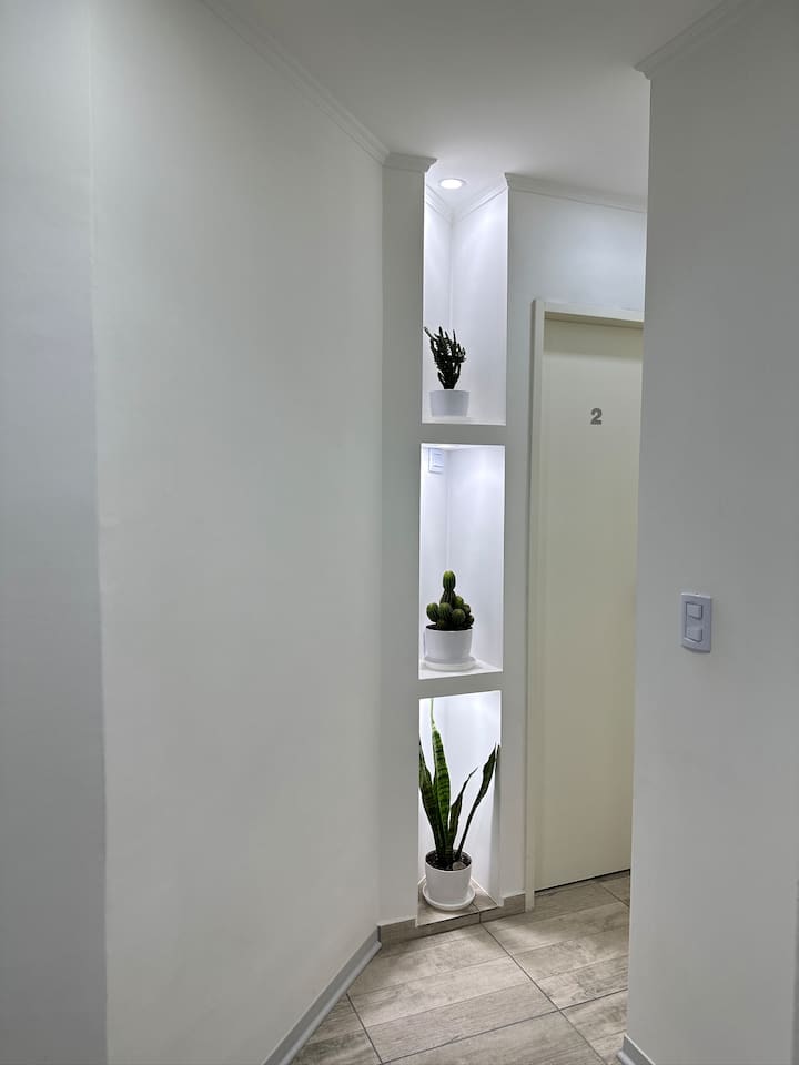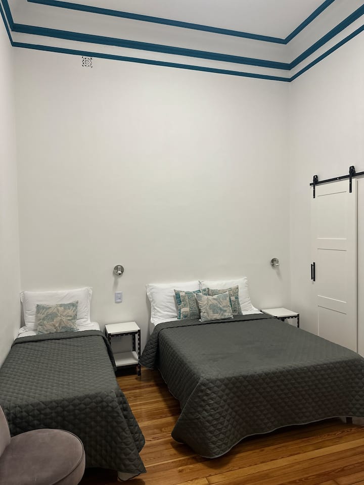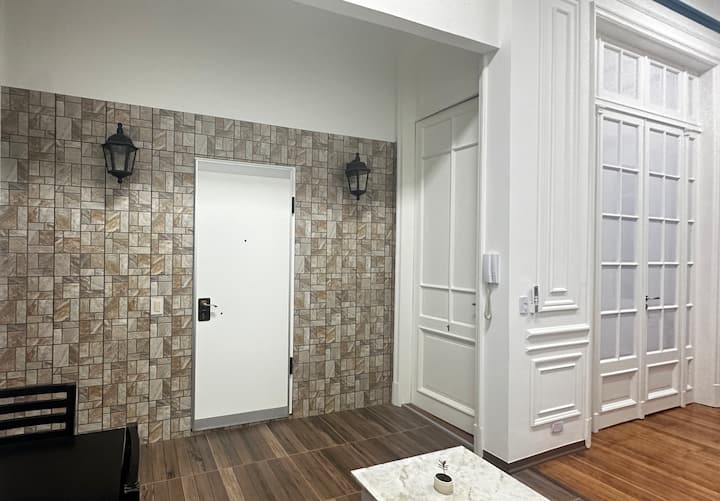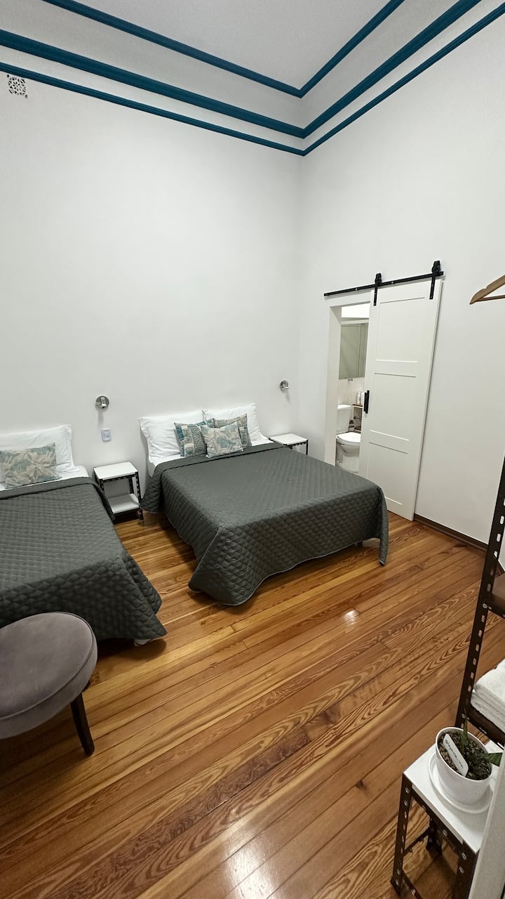 Квартира в Monserrat на Av. de Mayo площадью 122 m², 4 спальни, 4 ванные комнаты. Высота потолков 4 m. В квартире есть гостиная-столовая и зона отдыха, кухня с электроплитой и техникой: микроволновая печь, холодильник, вытяжка, кофеварка, тостер, электрический чайник, стирально-сушильная машина. Во всех комнатах установлены кондиционеры с режимом охлаждения и обогрева. Вместимость указана до 13 гостей.