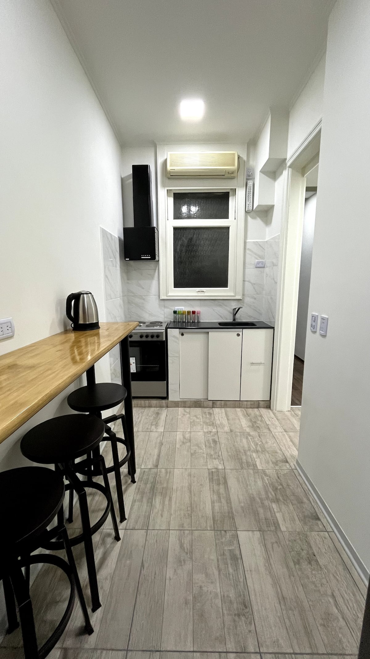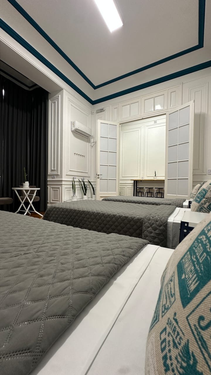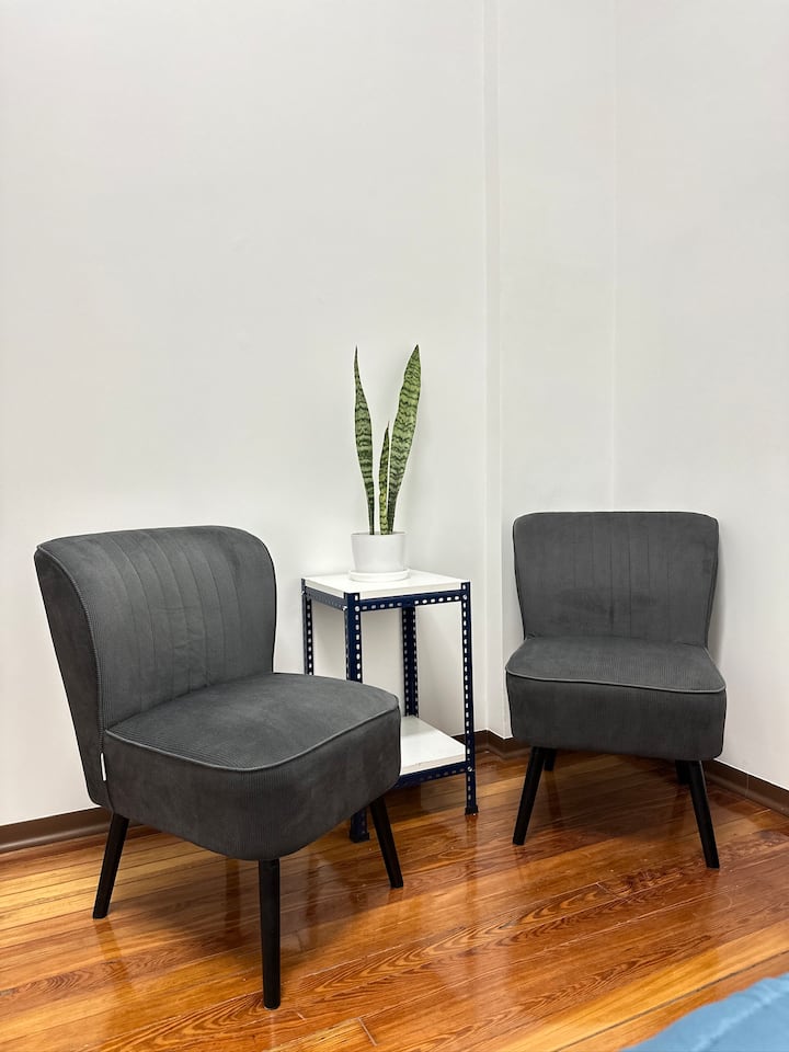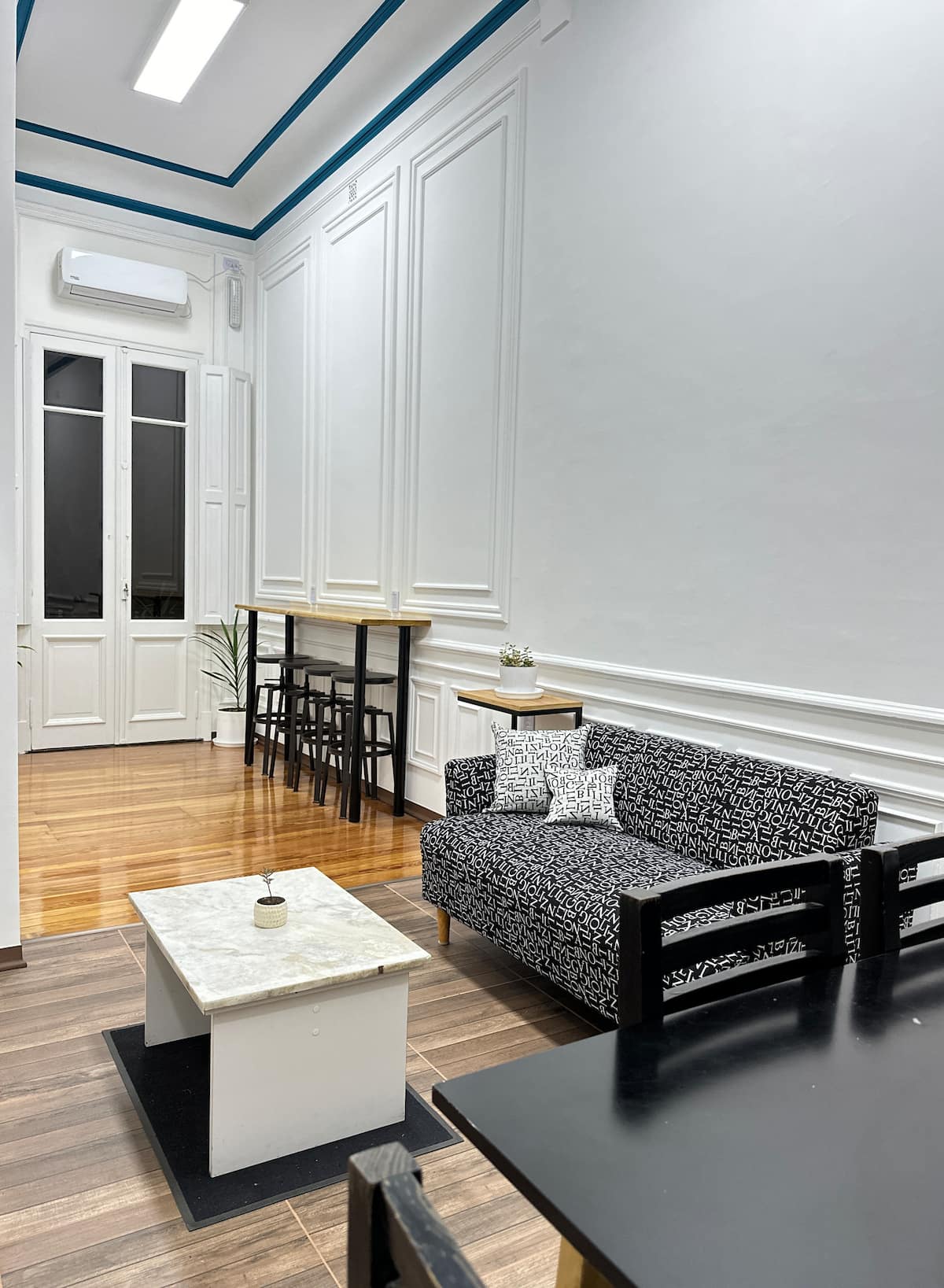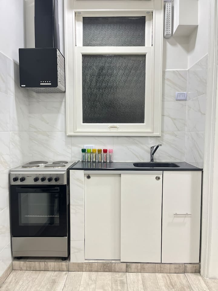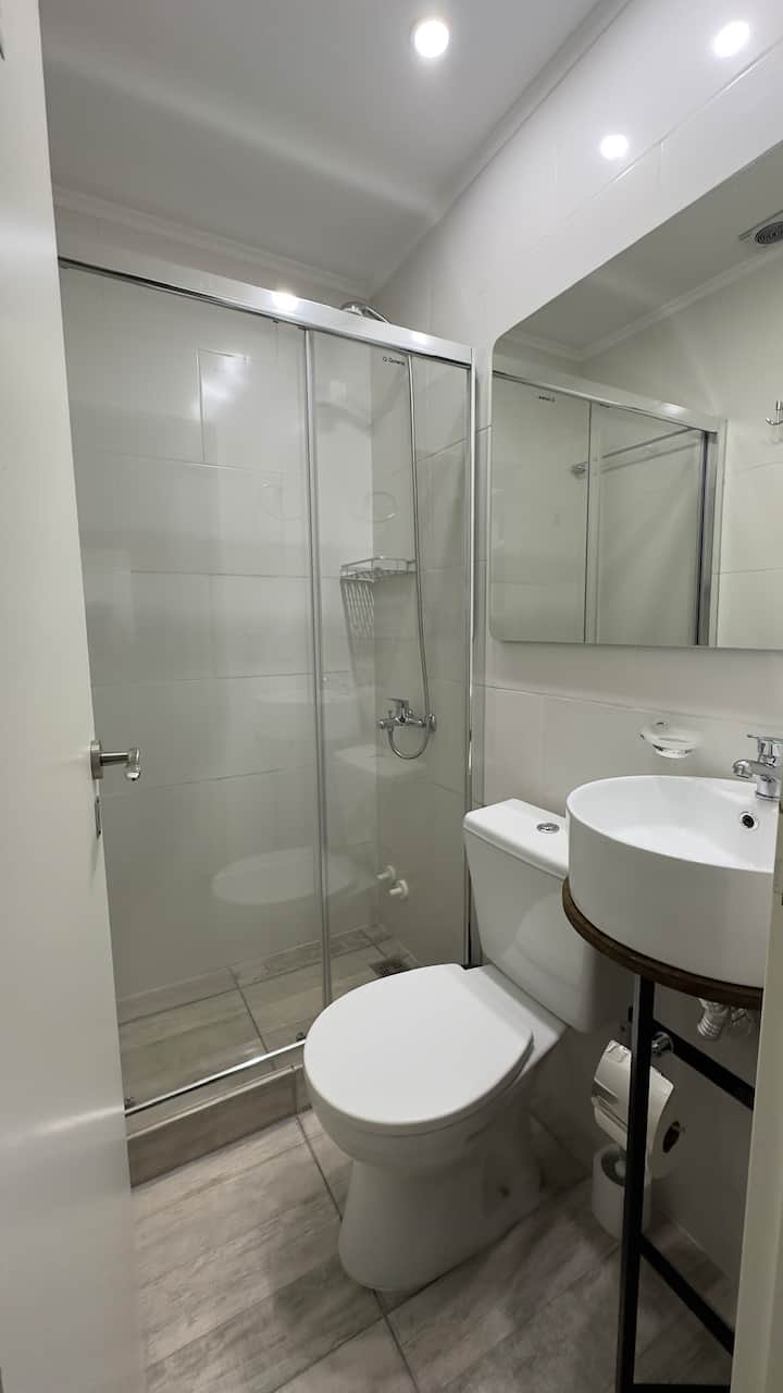 Квартира в Monserrat на Av. de Mayo площадью 122 m², 4 спальни, 4 ванные комнаты. Высота потолков 4 m. В квартире есть гостиная-столовая и зона отдыха, кухня с электроплитой и техникой: микроволновая печь, холодильник, вытяжка, кофеварка, тостер, электрический чайник, стирально-сушильная машина. Во всех комнатах установлены кондиционеры с режимом охлаждения и обогрева. Вместимость указана до 13 гостей.