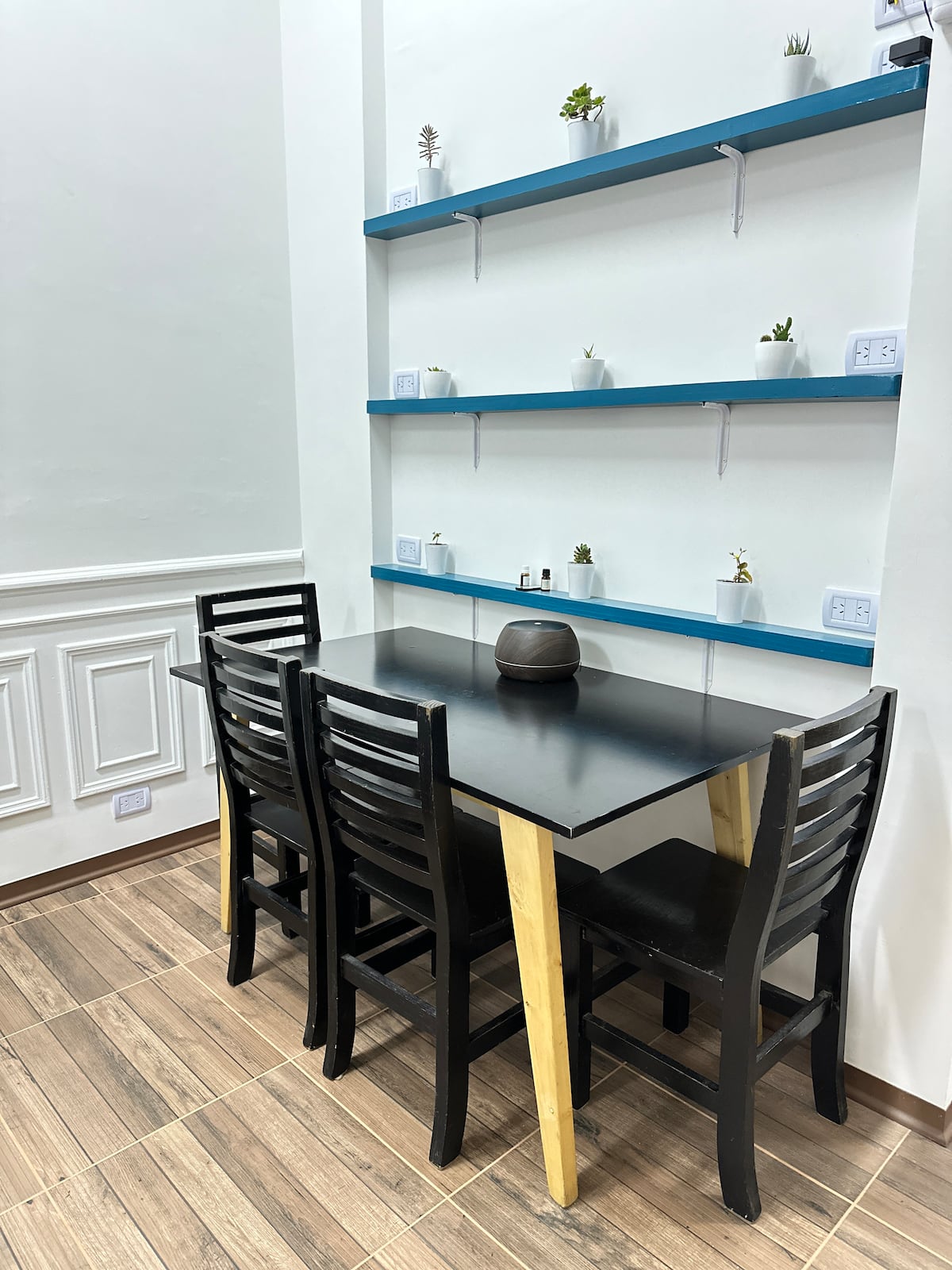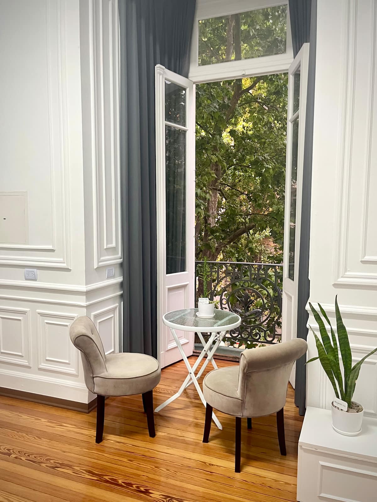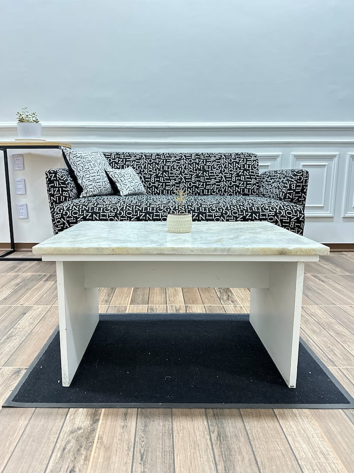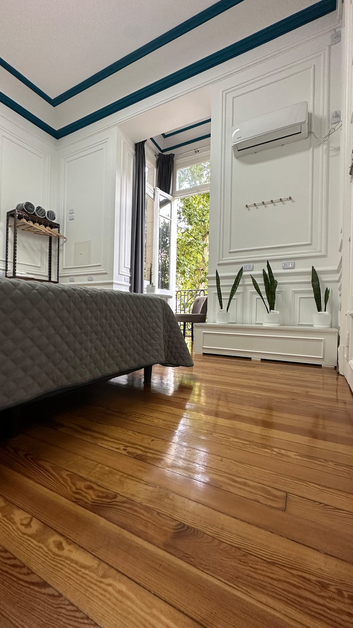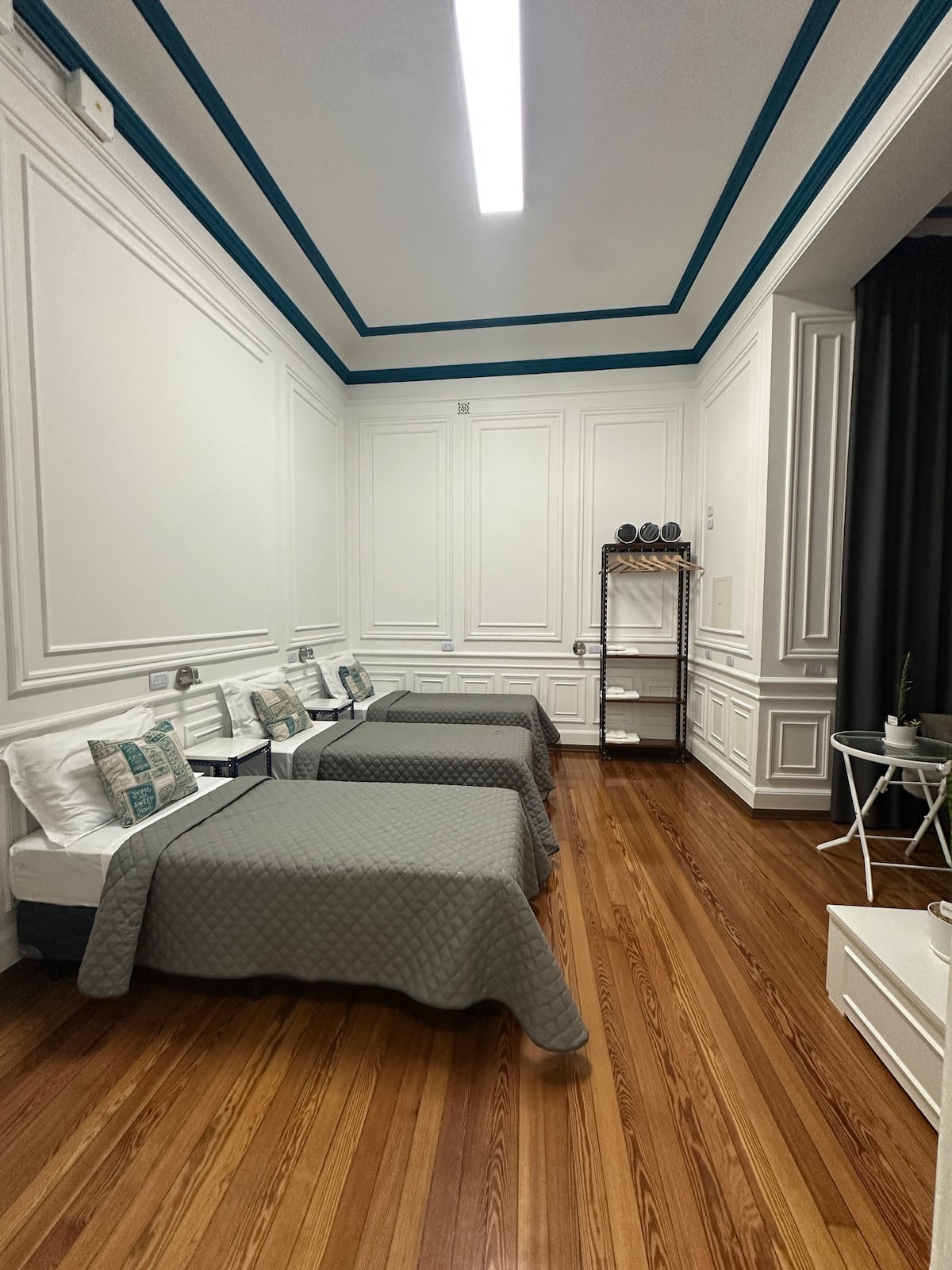 Квартира в Monserrat на Av. de Mayo площадью 122 m², 4 спальни, 4 ванные комнаты. Высота потолков 4 m. В квартире есть гостиная-столовая и зона отдыха, кухня с электроплитой и техникой: микроволновая печь, холодильник, вытяжка, кофеварка, тостер, электрический чайник, стирально-сушильная машина. Во всех комнатах установлены кондиционеры с режимом охлаждения и обогрева. Вместимость указана до 13 гостей.