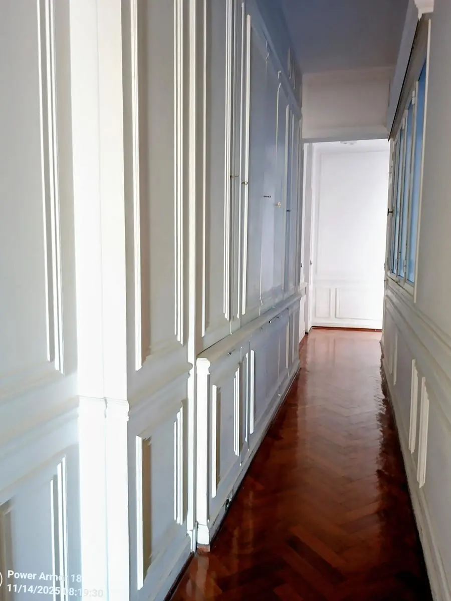 Квартира в Palermo на 6-м этаже рационалистического здания. Окна на площадь Plaza Alemania. В доме 5 комнат, 4 спальни и 2 помещения под обслуживание, 2 полных санузла и гостевой туалет. Отдельно указано (закреплённое) парковочное место на первом этаже, а также охрана и видеонаблюдение по запросу. Центральное отопление радиаторами и центральное горячее водоснабжение; потолки высокой высоты. Свежая покраска; здание рассчитано на 8 этажей.