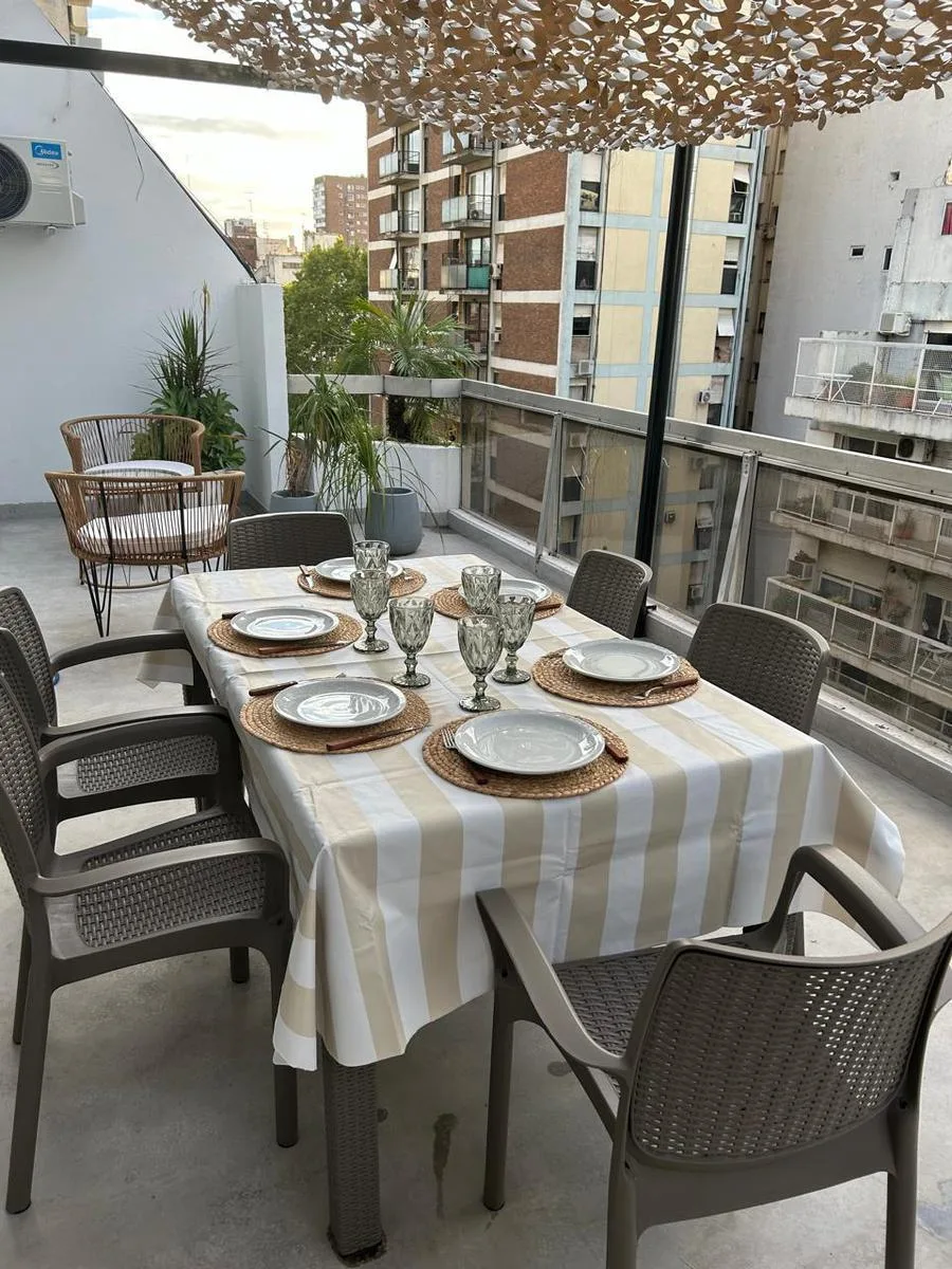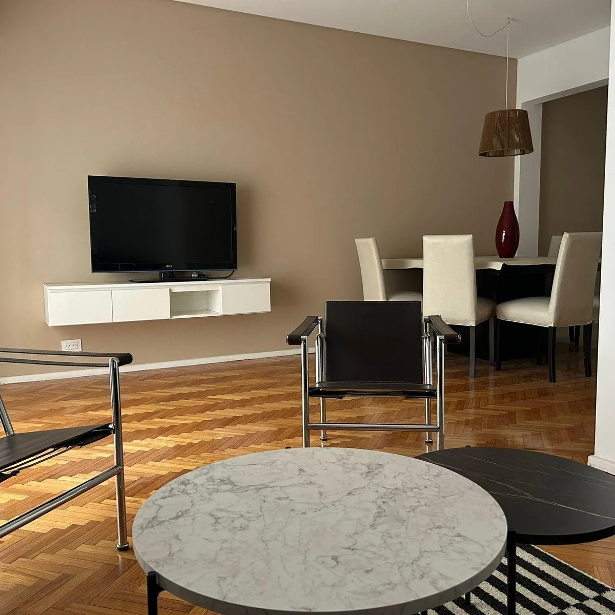 Аренда квартиры в Palermo: 4 спальни и общая площадь 130 m² крытых плюс 30 m² открытых, этаж высокий. В квартире с мебелью и оборудованием есть 4 спальни, гостиная с телевизором 42" и кондиционером, отдельная кухня с плитой на 4 конфорки и духовкой, микроволновой печью, кофеваркой и тостером. Отдельные удобства включают гардеробы в спальнях, в прачечной стиральную машину и маленькую раковину, в санузлах 1 туалет и 2 полностью оборудованные ванные комнаты. Предусмотрены центральное горячее водосн