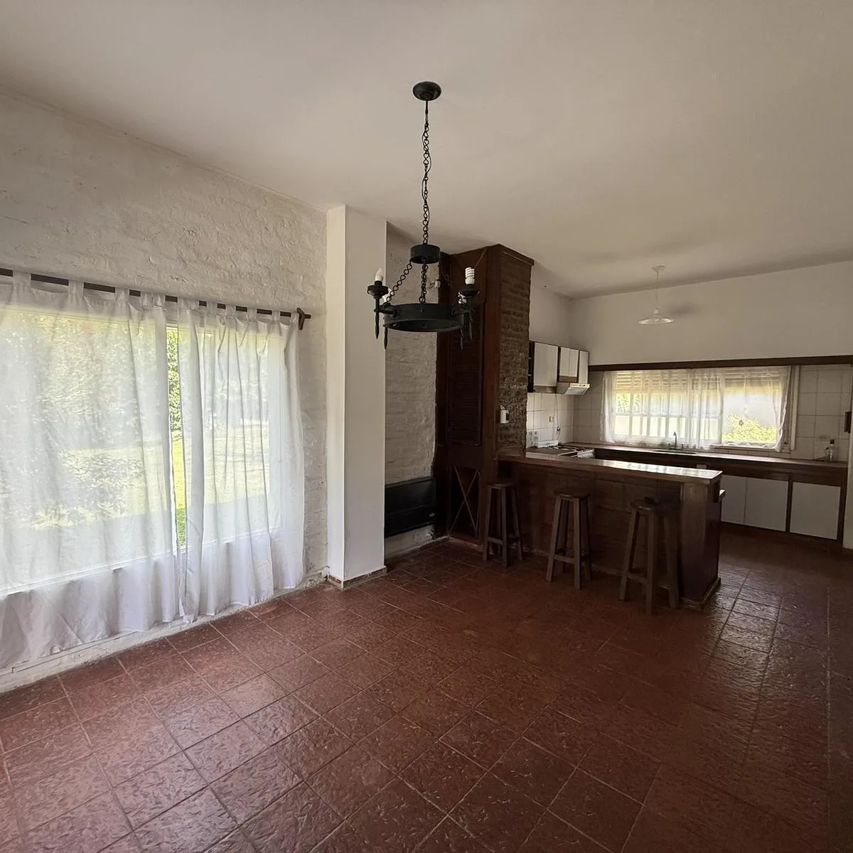 Дом в аренду в La Cascada Country Club, Pilar. Площадь участка 390 m², крытых почти 130 m², 2 этажа. На первом этаже гостиная с камином, столовая с кухней, интегрированной барной стойкой, гостевой туалет, полунакрытая галерея с зоной гриля, прачечная, частный сад, (двойной) гараж для 2 автомобилей. На втором этаже 4 спальни с встроенными шкафами и 2 полных ванных комнаты; 2 спальни выходят на балкон с размерами 3, 4 x 2, 6 m, а 2 дополнительные спальни выходят на другой балкон размерами 2, 1 x 2