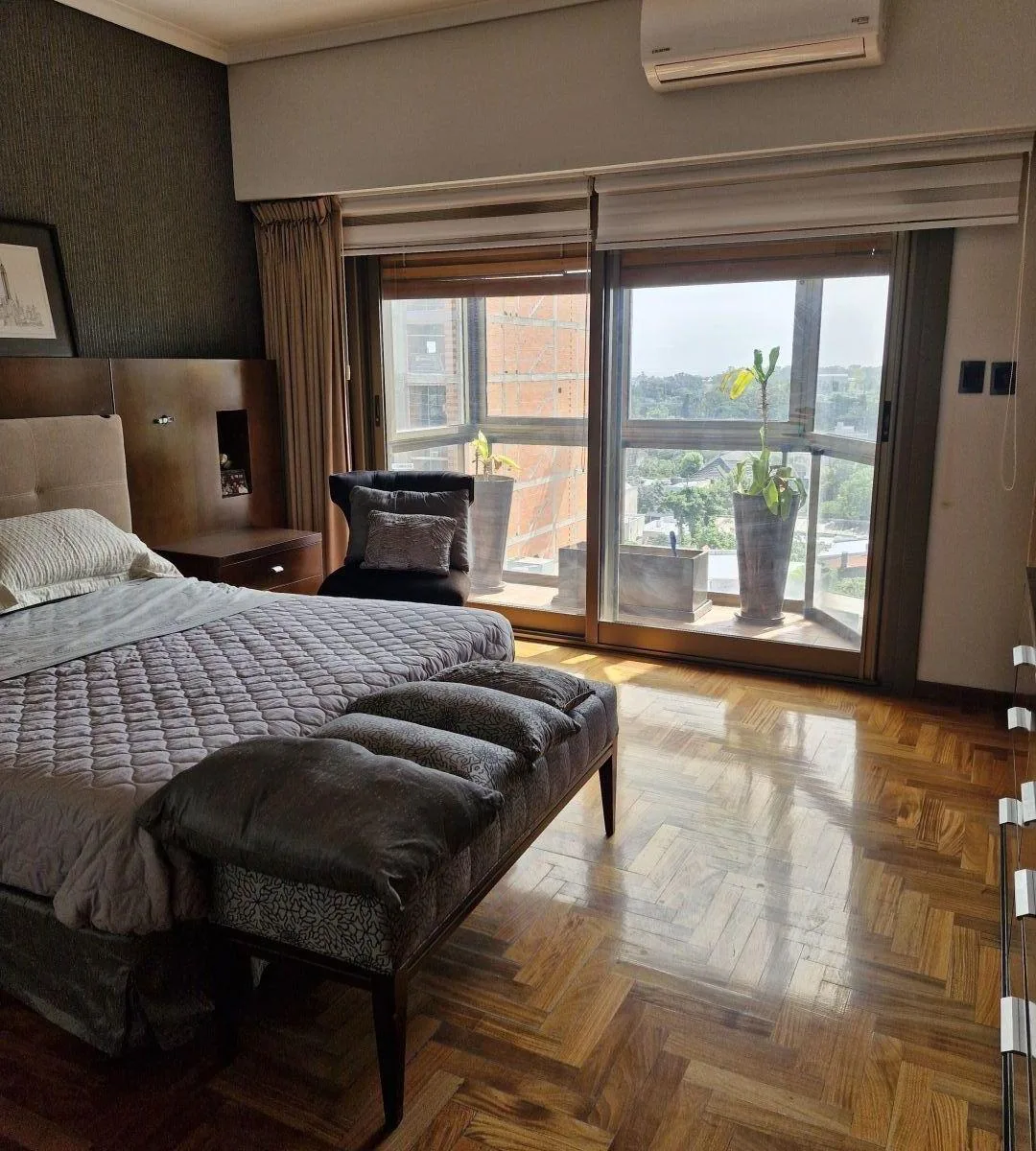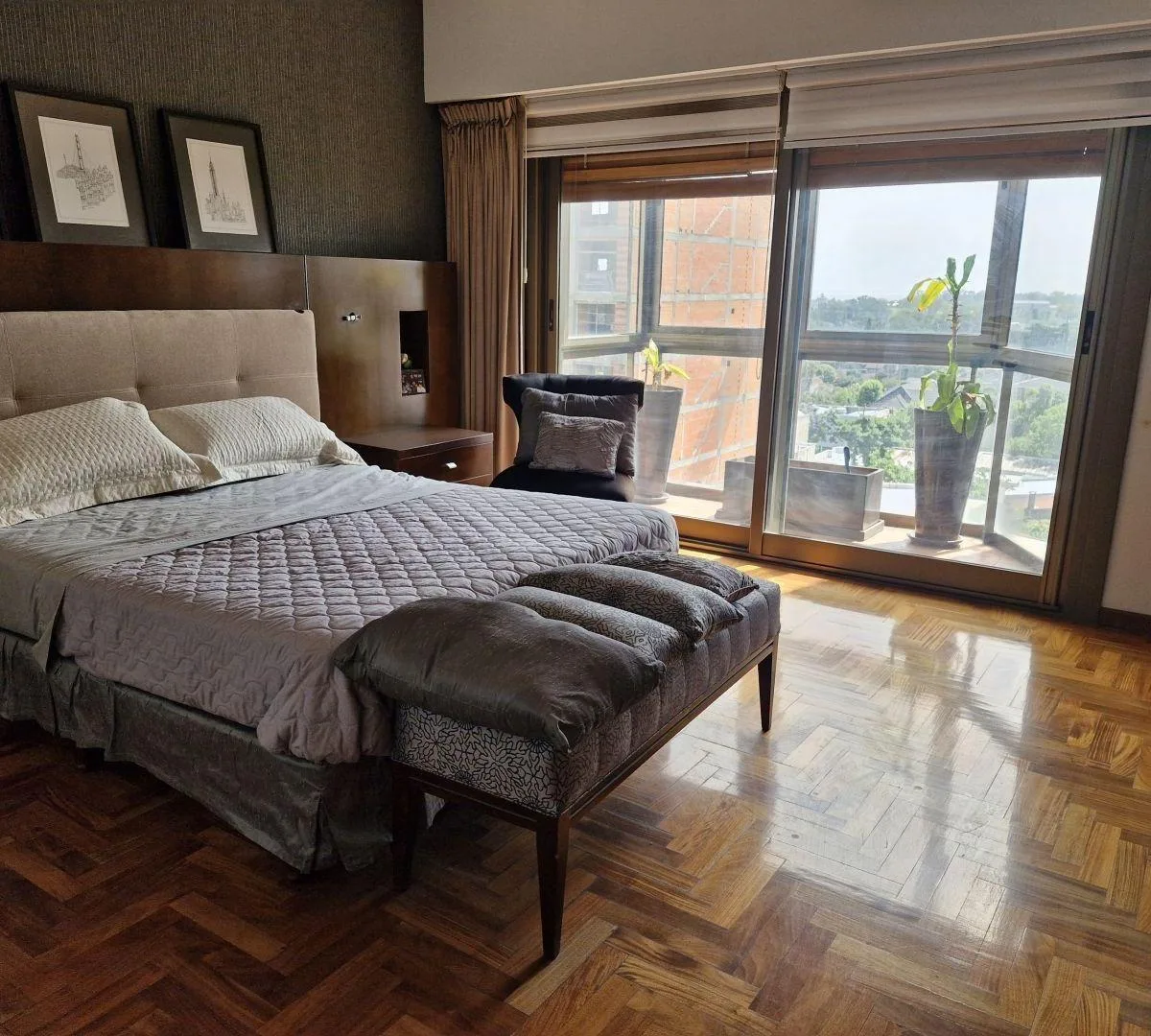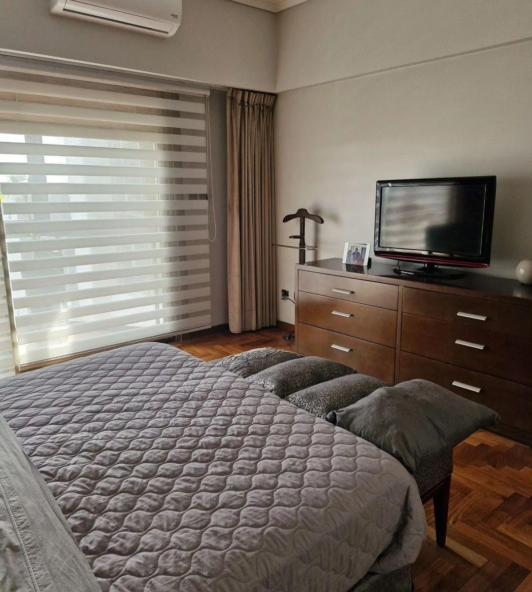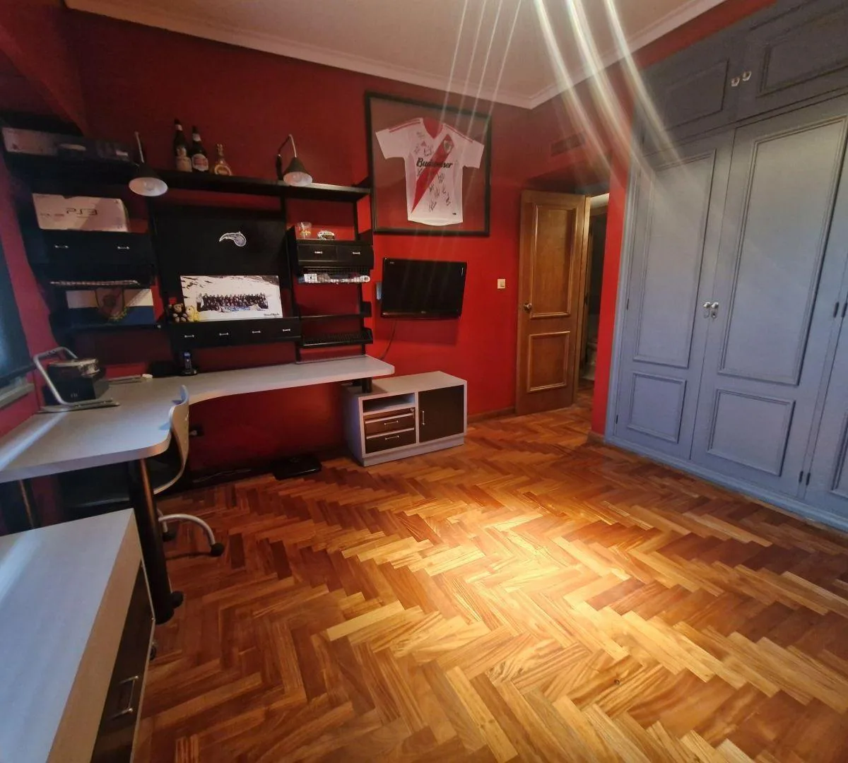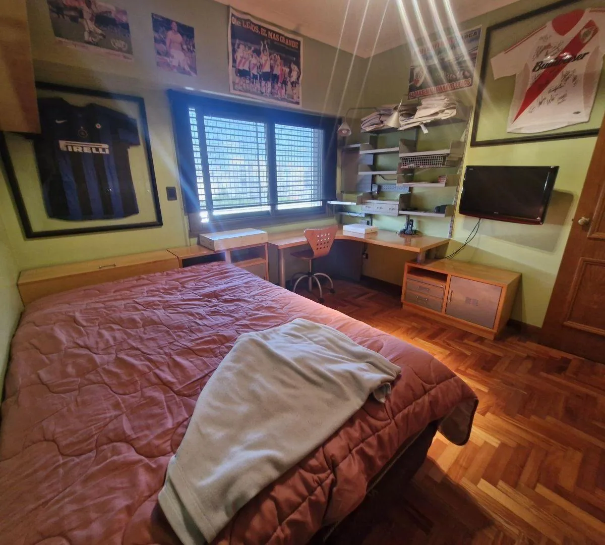 Квартира в полупрезидентном (semipiso) доме в Quilmes: 5 комнат, 3 спальни и 1 suite, общие площади не указаны. Планировка предусматривает вход для персонала и основной вход, просторную гостиную-столовую с выходом на балкон-террасу, туалет. Кухня с нижними шкафами и большой кладовой, отдельная прачечная с дополнительным балконом, отдельная комната для персонала с полной ванной; в suite большая гардеробная и ванная с двумя раковинами. Дополнительно есть две спальни с встроенными шкафами. В стоимо