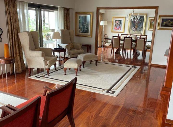 Квартира в Quilmes Centro на продажу и в аренду, 5 комнат. Имеется кухня, обеденная зона, отдельная прачечная, гостиная, балкон-терраса, два спальных помещения с встроенными шкафами, отдельная спальня с собственной ванной комнатой и гардеробной, кабинет со встроенными шкафами и ванной, полноценная ванная и туалет. В квартире предусмотрены приватный лифтовый/парадный холл, (закреплённые) парковочные места для 2 автомобилей и кладовая в подземном уровне, охрана 24 часа. В здании есть бассейн, обща