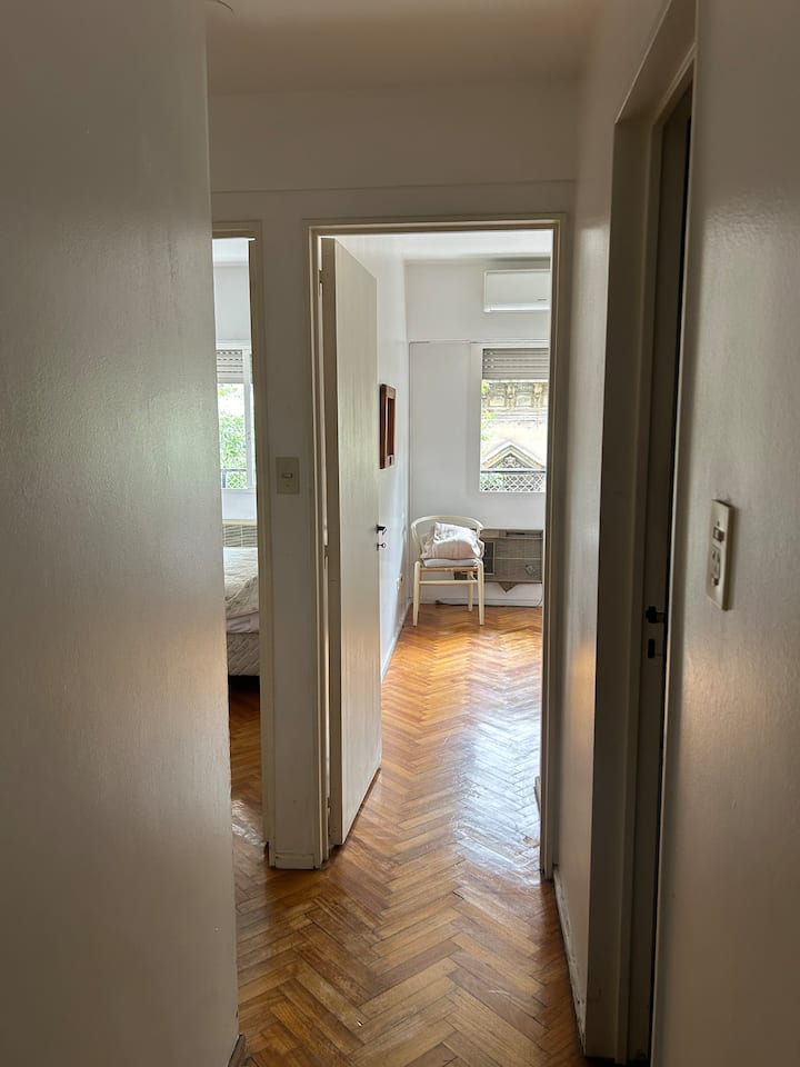 Квартира в Recoleta, 3-й этаж, окна на улицу. В описании указано, что на этаже расположена только эта квартира. Планировка рассчитана на 4 спальни.