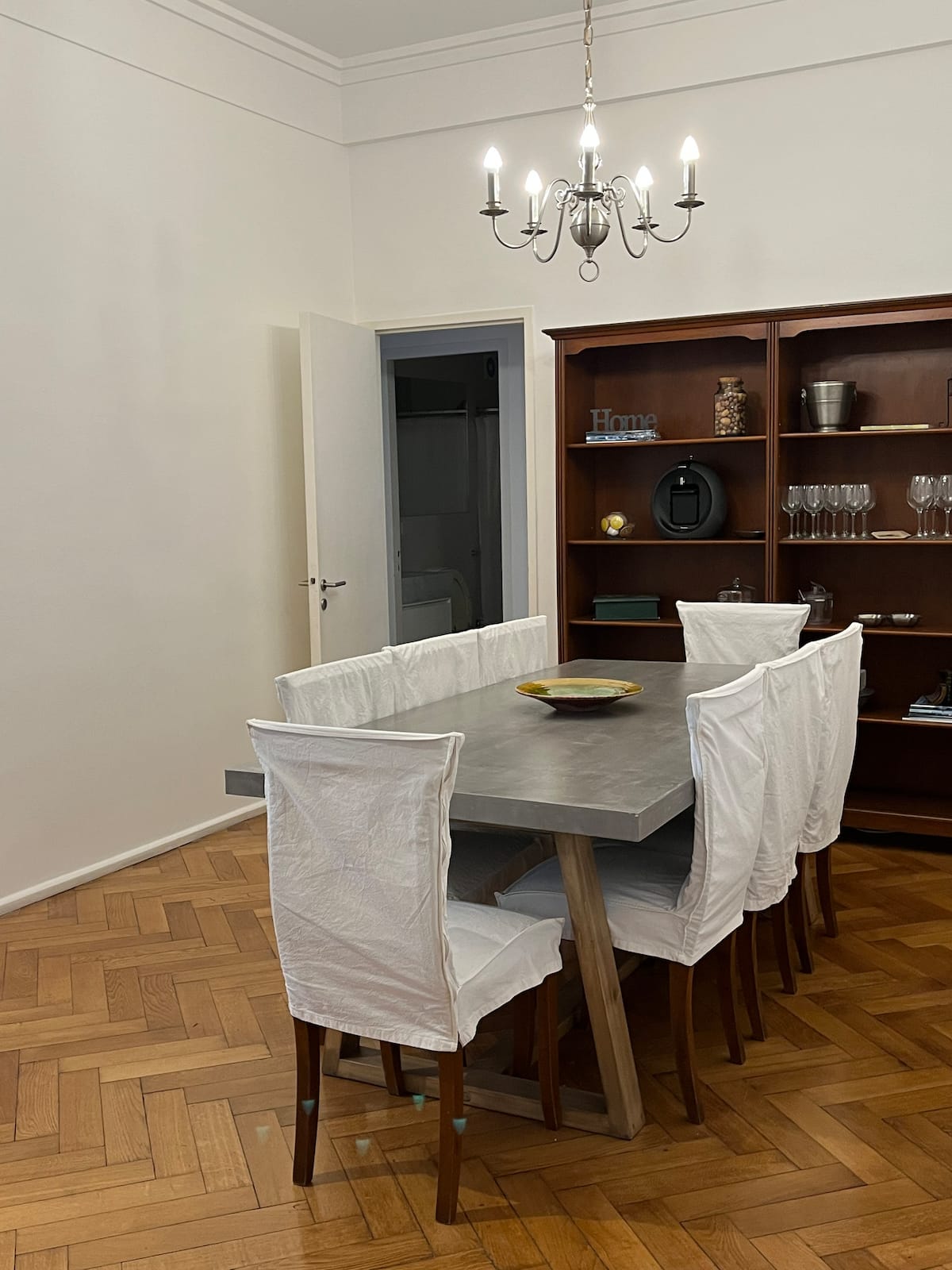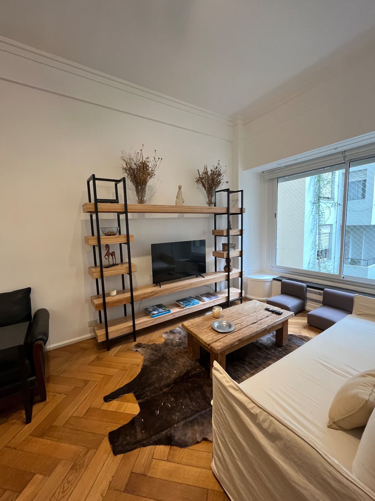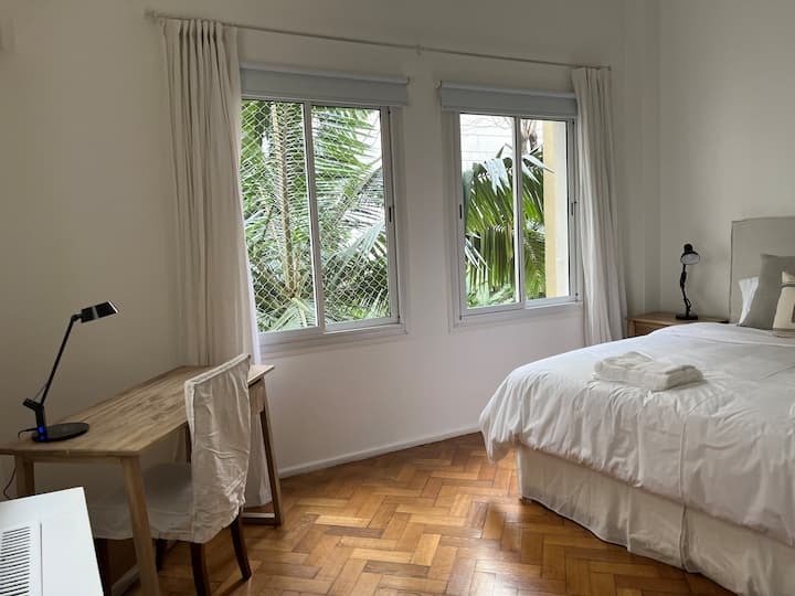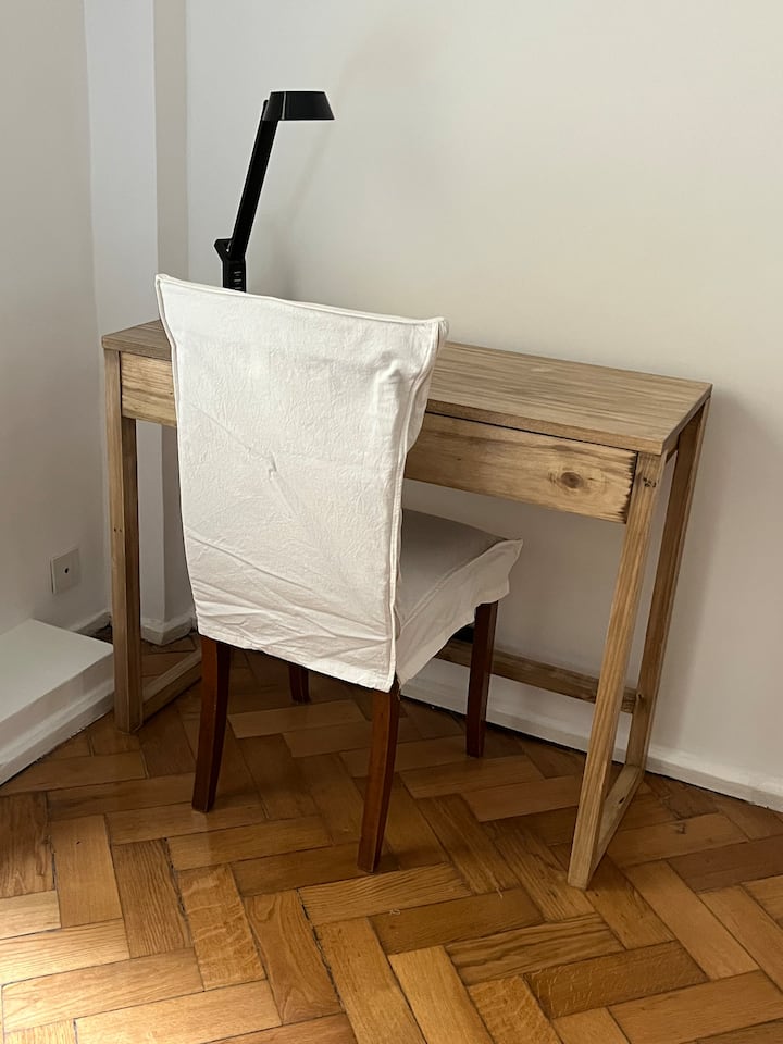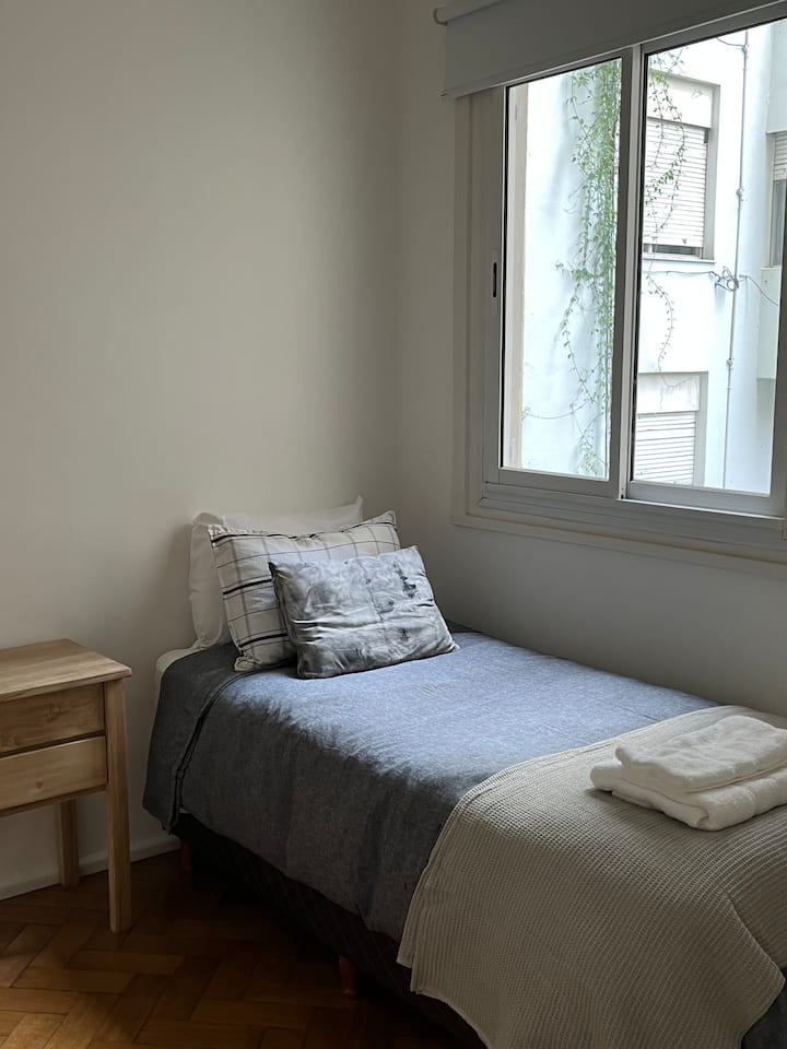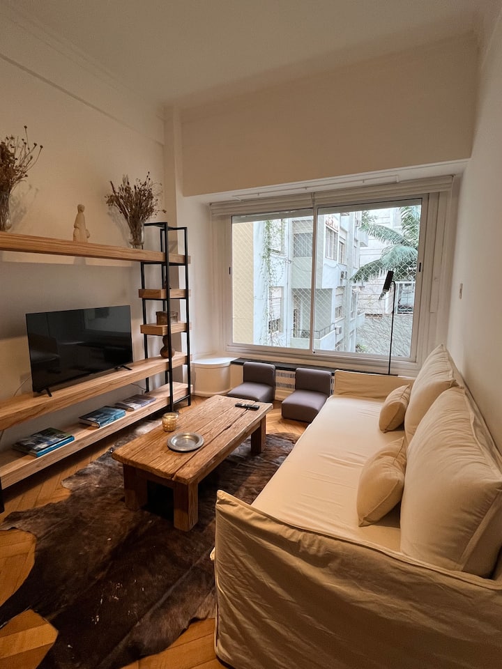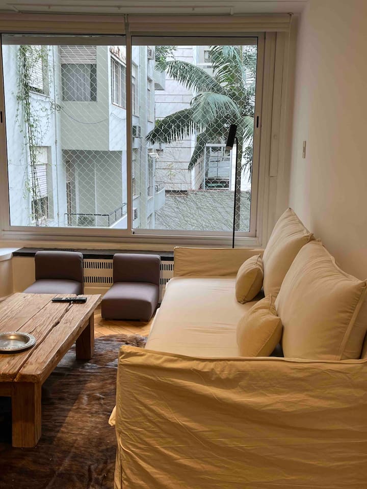 Квартира с 4 спальнями в Retiro в историческом здании в стиле Art Deco (1934), после новой отделки и с мебелью. Рассчитана на размещение до 6 человек. В квартире установлены 3 сплит-кондиционера холод-тепло и центральное отопление; есть посудомоечная машина, стиральная и сушильная машины, телевизор и Wi‑Fi. Планировка включает спальню хозяев с двуспальной кроватью, ещё 3 спальни с односпальными кроватями. Ванная комната хозяев с ванной, гостевой туалет, общая ванная для спален 2 и 3 с ванной и о