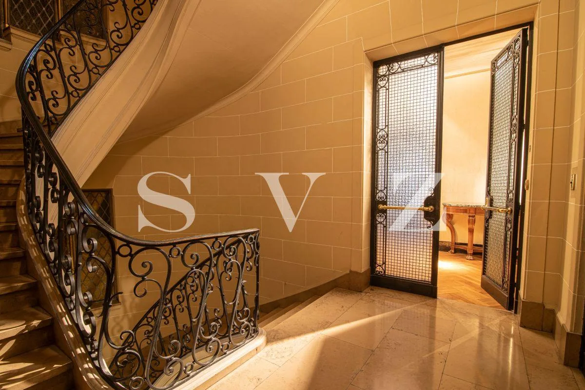 Квартира с 4 спальнями и общей площадью 420 m² расположена на фасаде. Планировка включает гостиную, столовую, кухню и отдельную прачечную, 3 ванных комнаты и 2 дополнительных туалета. В квартире есть балкон, установлены кондиционеры. В здании 7 этажей, на каждом этаже по 1 квартире, есть лифт и консьерж, предусмотрена охрана.