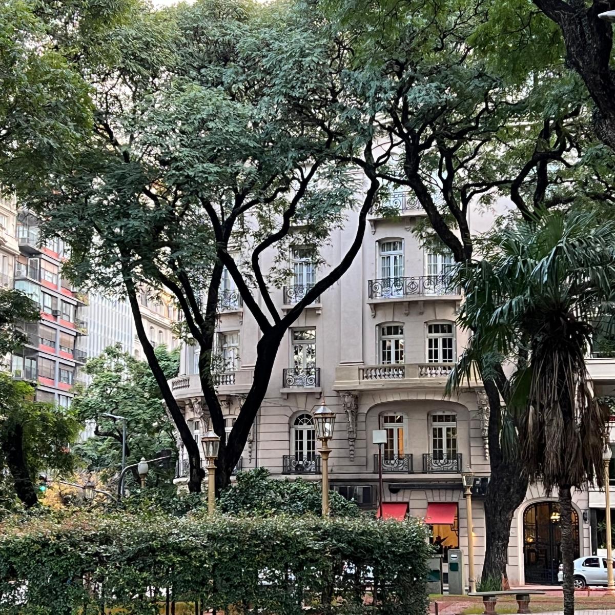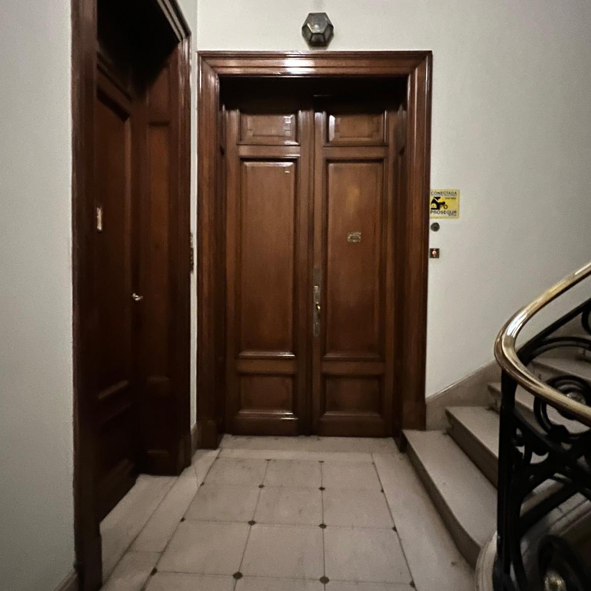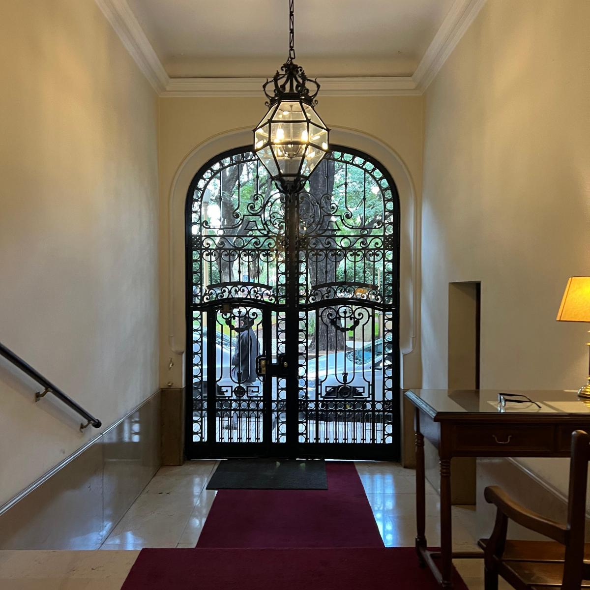 Квартира в угловом французском стиле в Retiro, окна на улицу, 10 балконов по периметру. Здание с парадным входом, высокими потолками, мраморной лестницей и ограждением из железа и бронзы. Основные комнаты выходят на фасад; в них установлены оригинальные деревянные элементы и бронзовая фурнитура. Парадная зона с прямым видом на деревья Plaza San Martín, мраморные камины и паркет из дуба Eslavonia с бордюрами во всех помещениях.