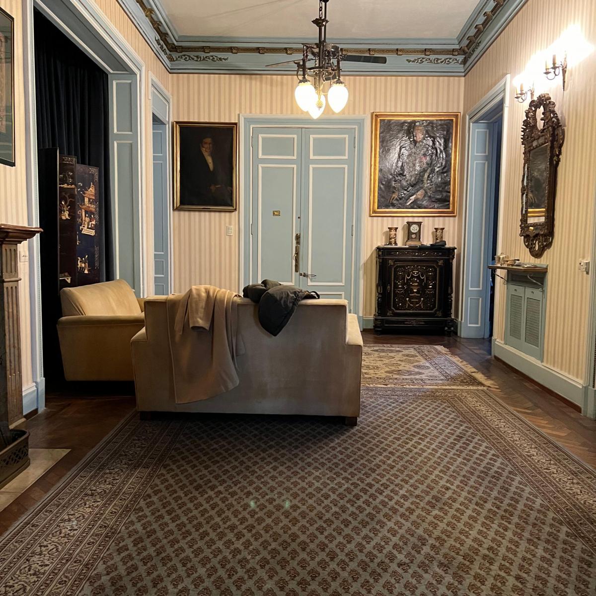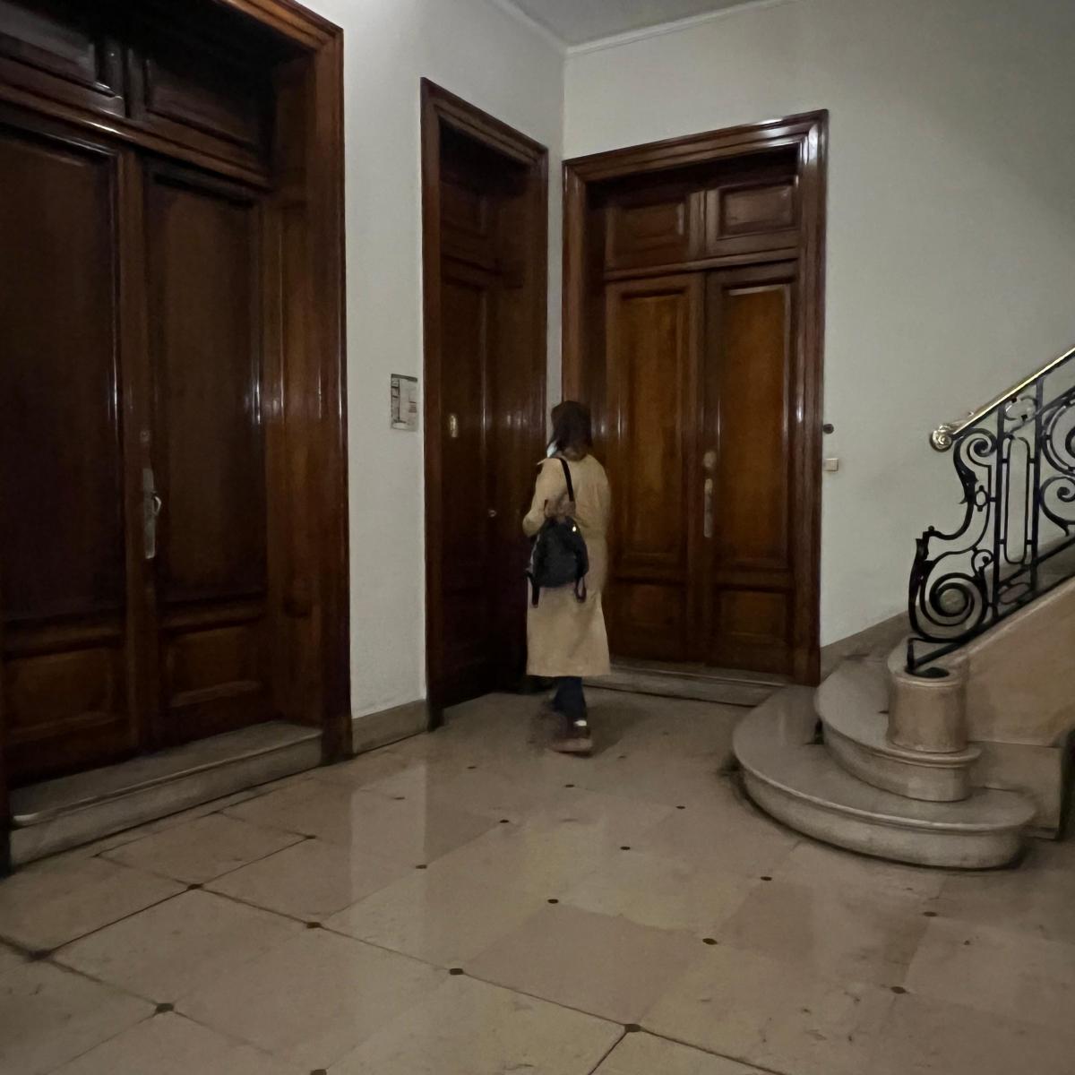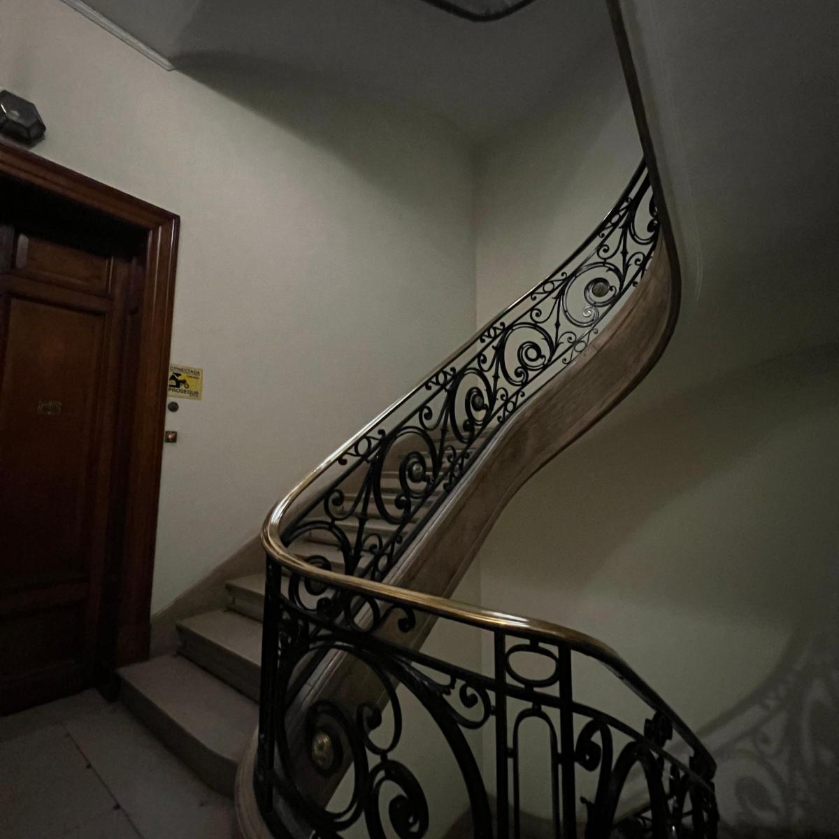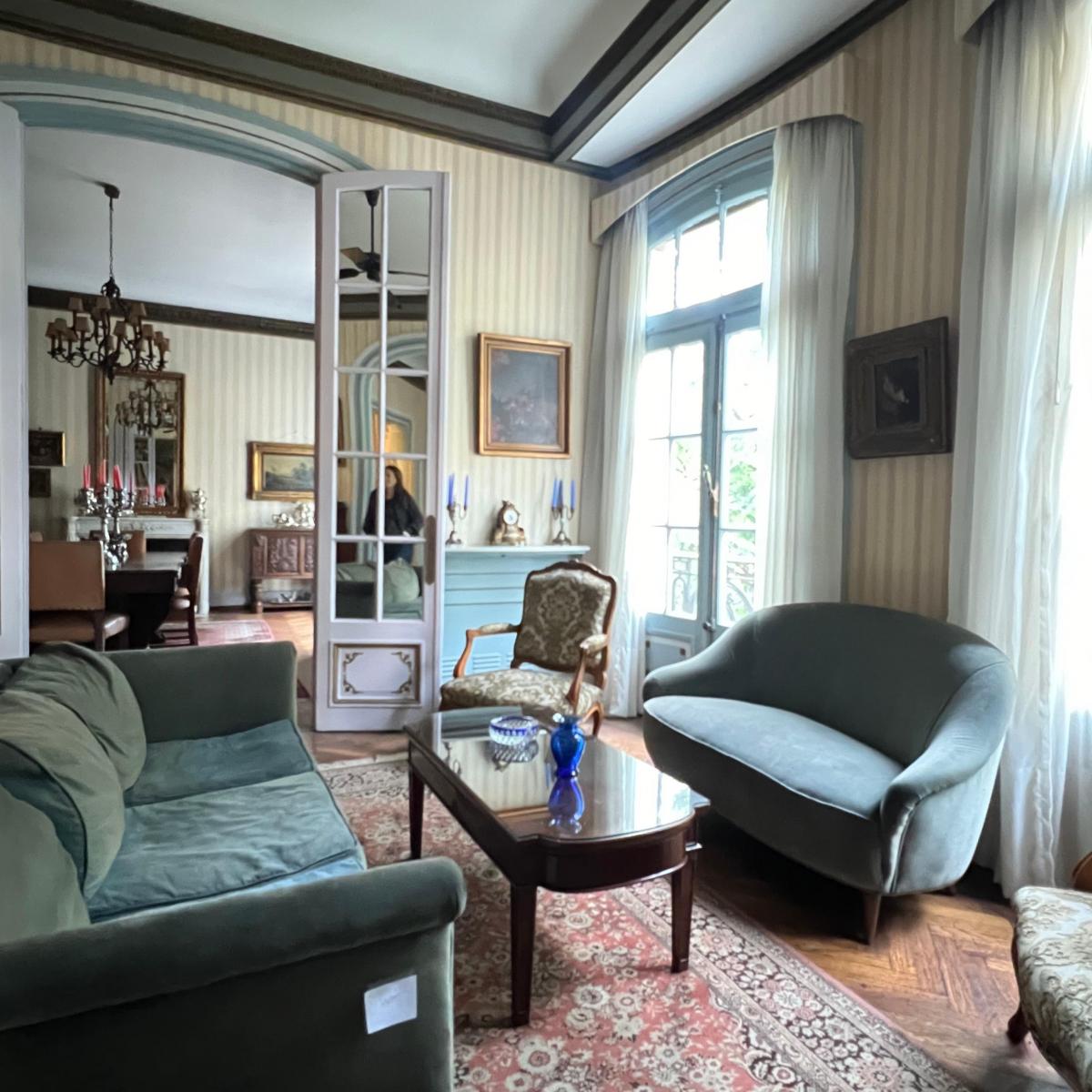 Квартира в угловом французском стиле в Retiro, окна на улицу, 10 балконов по периметру. Здание с парадным входом, высокими потолками, мраморной лестницей и ограждением из железа и бронзы. Основные комнаты выходят на фасад; в них установлены оригинальные деревянные элементы и бронзовая фурнитура. Парадная зона с прямым видом на деревья Plaza San Martín, мраморные камины и паркет из дуба Eslavonia с бордюрами во всех помещениях.