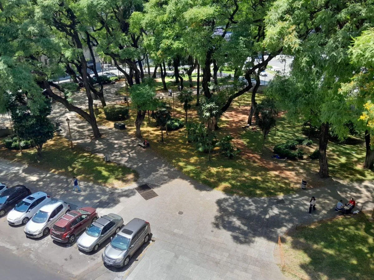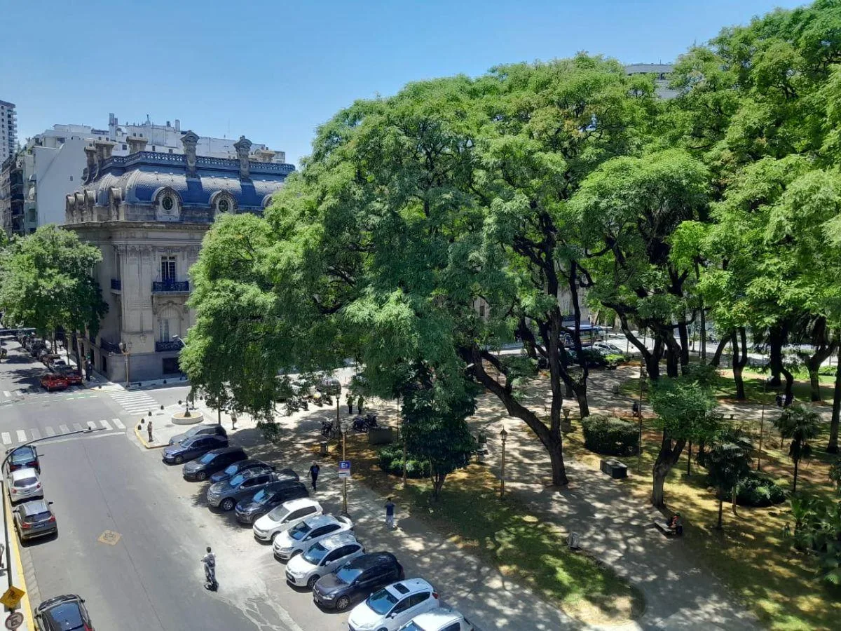Квартира в Retiro на 10-м этаже, 330 m², ориентация восток, с окнами на зелёную зону Plaza San Martín. В планировке: гостиная (8 x 7,5) с выходом на балкон, столовая (6,5 x 4,2) с выходом на балкон, кабинет (4,1 x 3,1), family-room (6 x 3,1), 4 спальни (2 спальни-сюит с собственными ванными) и 3 полностью оборудованные ванные комнаты. Балкон 6,8 x 2,5 и дополнительный балкон у первой спальни 4 x 1,3. Отдельная кухня 8 x 2 с office 4,5 x 1,8 и кухонной варочной поверхностью для подогрева пищи, ст