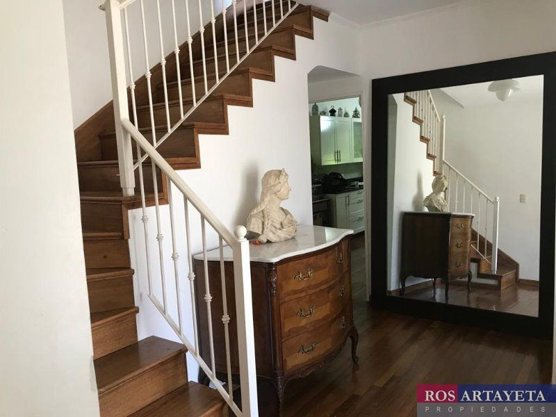 Дом в Rincon del Arca, San Fernando, 4 спальни. Первый этаж: прихожая, гостиная-столовая, playroom с выходом в сад, гостевой туалет, кухня и отдельная прачечная, комната для персонала с душевой ванной. Есть галерея, сад с направлением NE, крытая (закрытая) парковка на 1 автомобиль и место для 4 автомобилей без покрытия, зона гриля. Отопление — лучистое отопление по плите; во всех помещениях установлен кондиционер (холод). Второй этаж: ковровое покрытие, 4 спальни, 3 ванные, 1 кабинет; есть грузо