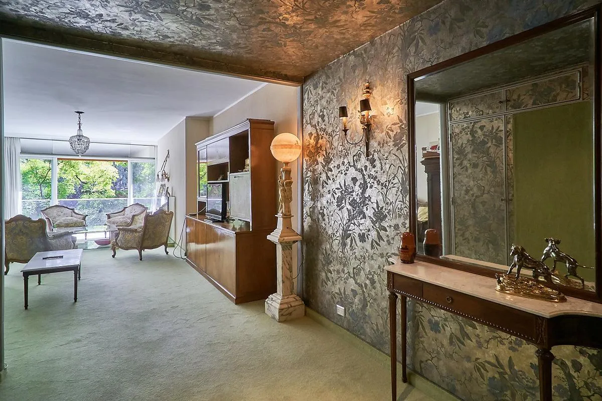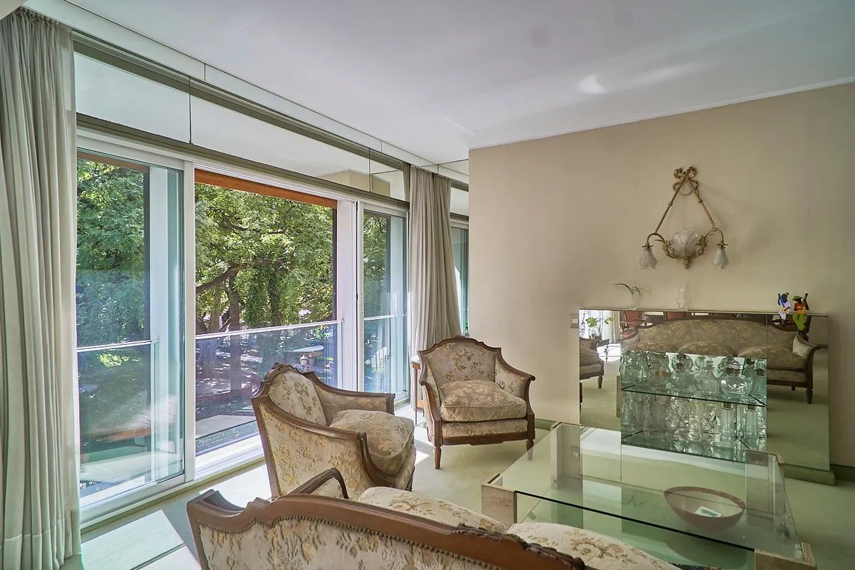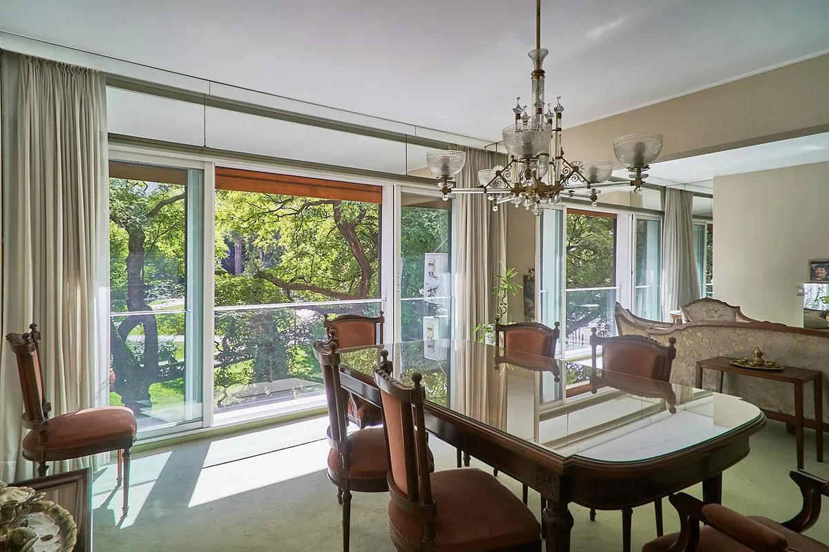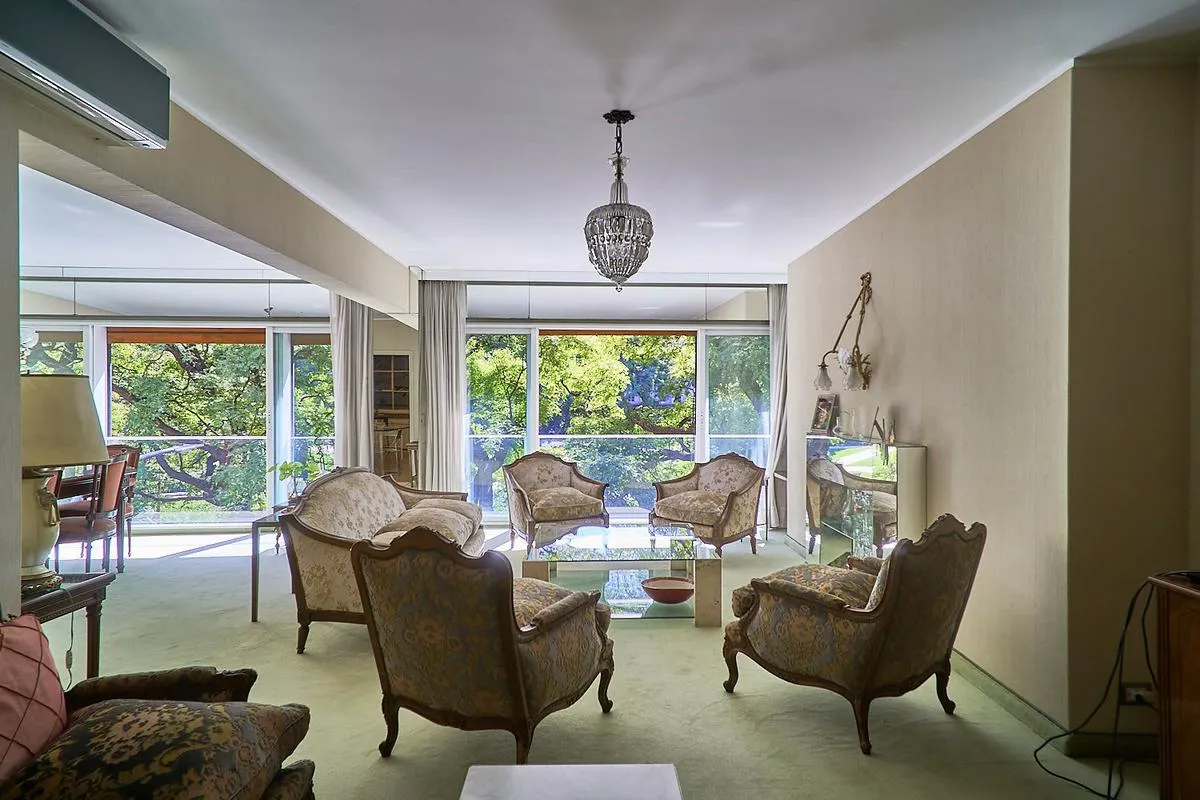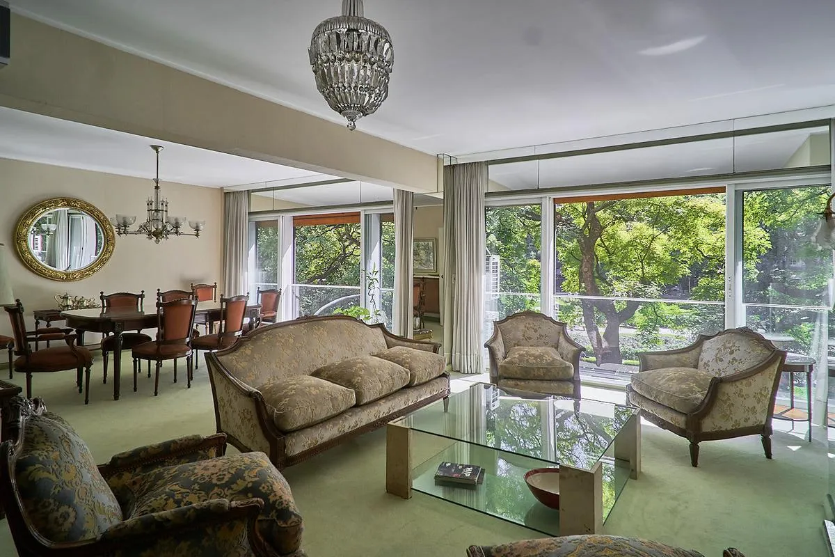Квартира площадью 220 m² в здании с двумя фасадами, полупоследняя планировка, окна на улицу и во двор, с видом на Plaza Libertad. В квартире отдельный приватный вход с парадным лобби и отдельный вход для обслуживающего персонала. Гостиная в форме «L» площадью 60 m² включает зоны для отдыха и столовой, кухня и отдельная столовая для ежедневного пользования, кабинет, личная зона отдыха. Четыре спальни со встроенными шкафами; две спальни имеют общий санузел с ванной в suite, после ремонта, также ес