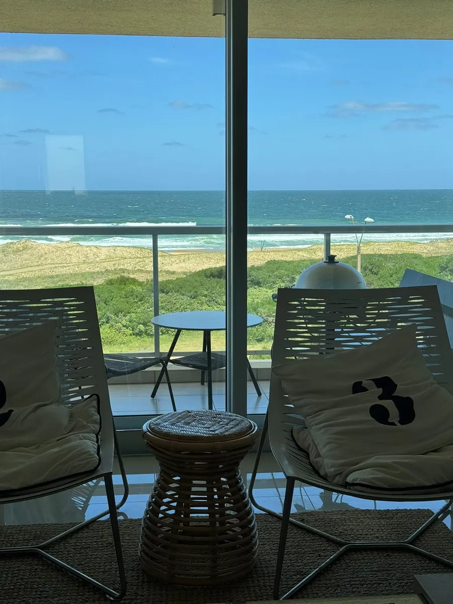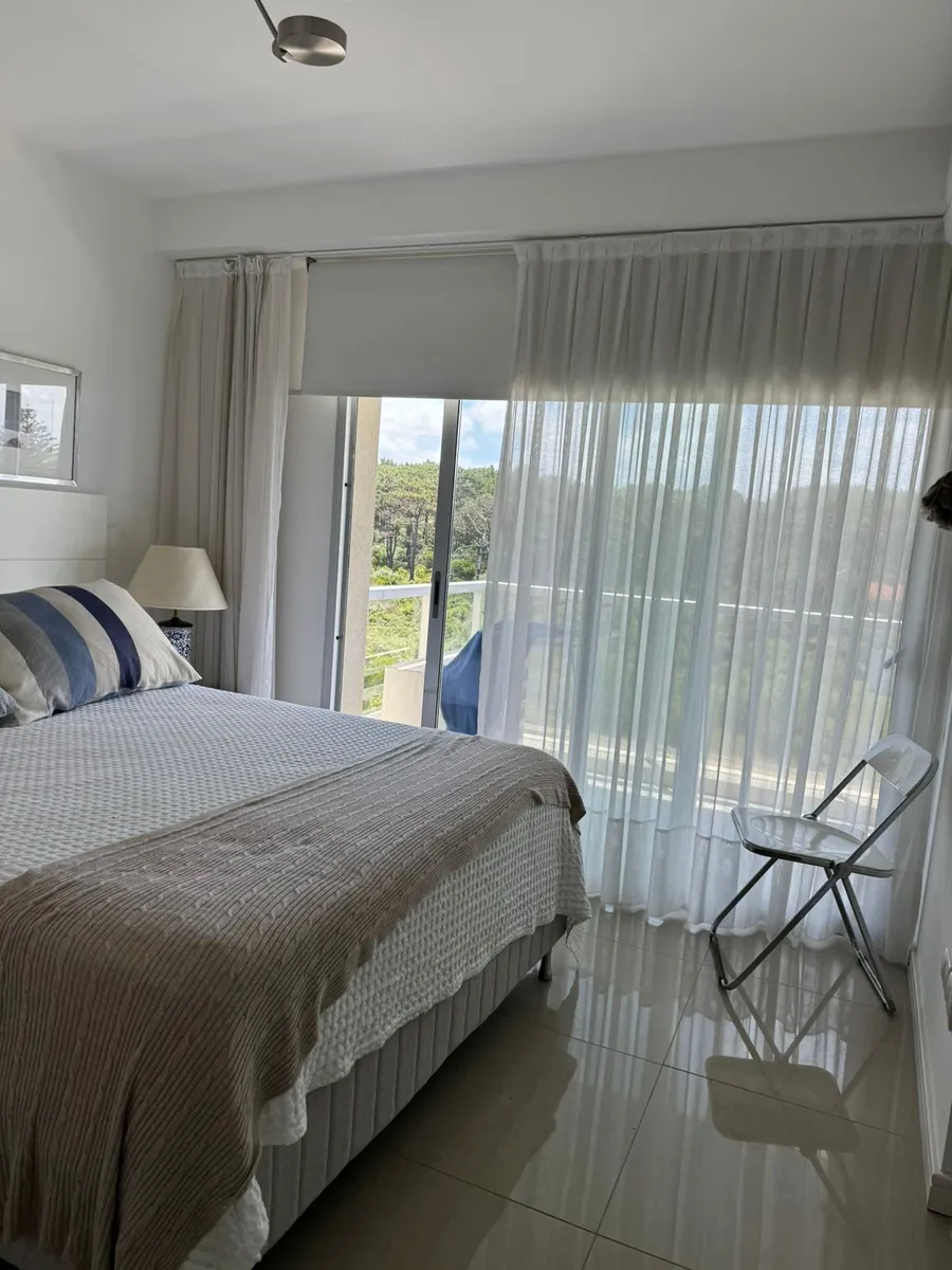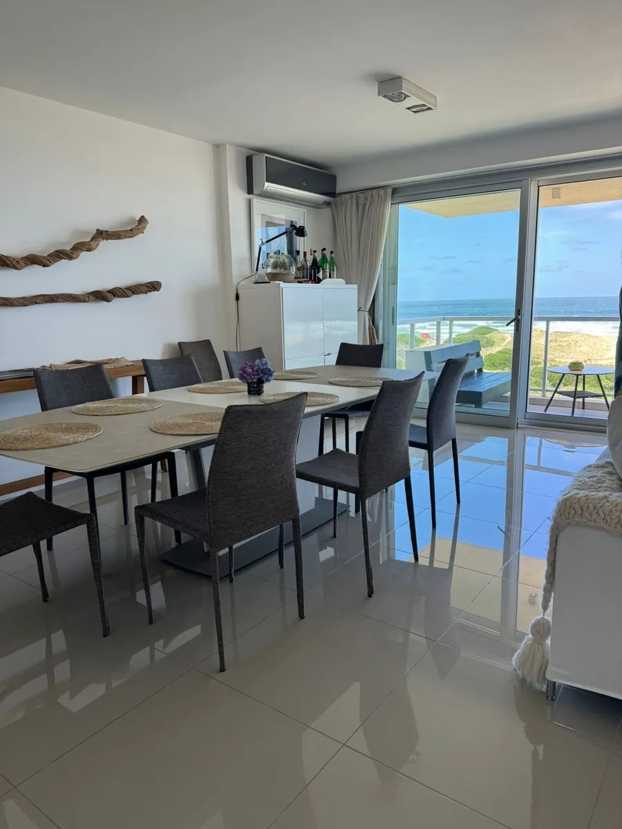 Квартира в здании Blue Marine, Parada 30 на пляже La Brava, с 4 спальнями en suite. В планировке: просторная гостиная, столовая и современная оборудованная кухня с большой интегрированной барной стойкой. Есть приватный лифт на площадке и балкон с видом на море. В здании: климатизированный бассейн, зоны гриля (quinchos), интернет-зал, помещение для детей и подростков с бассейном, Wi‑Fi, тренажёрный зал, сауна, а также сервис пляжа с зонтом и лежаками, услуги смотрителя и крытый гараж. Арендная пл