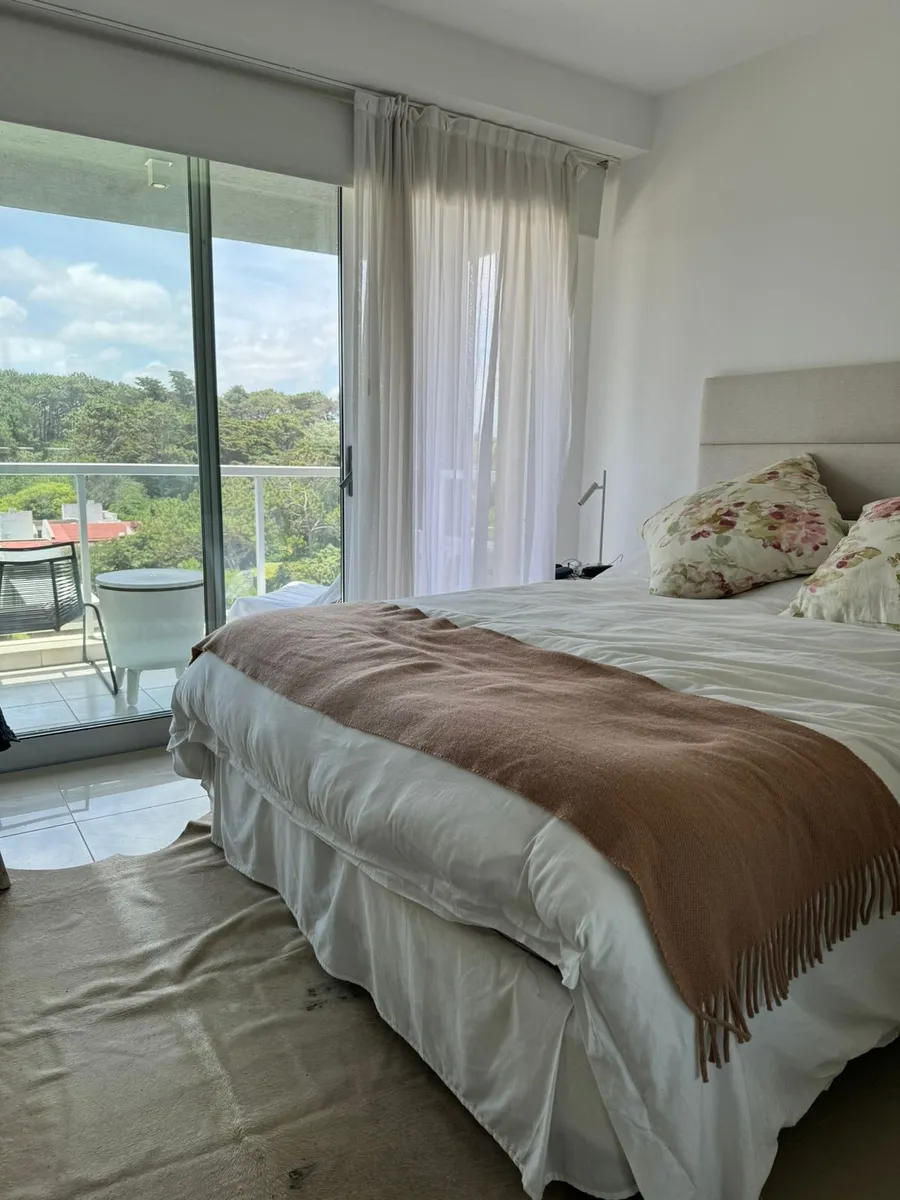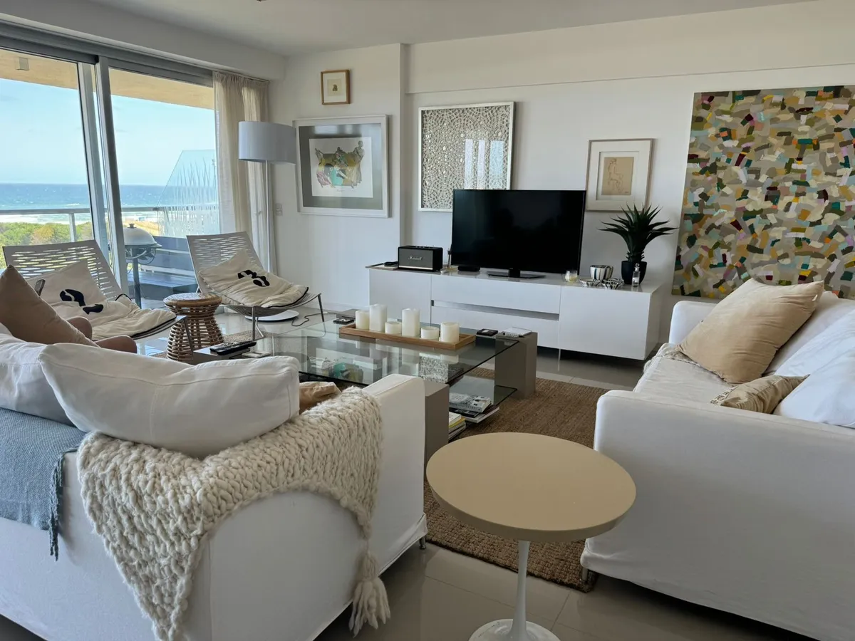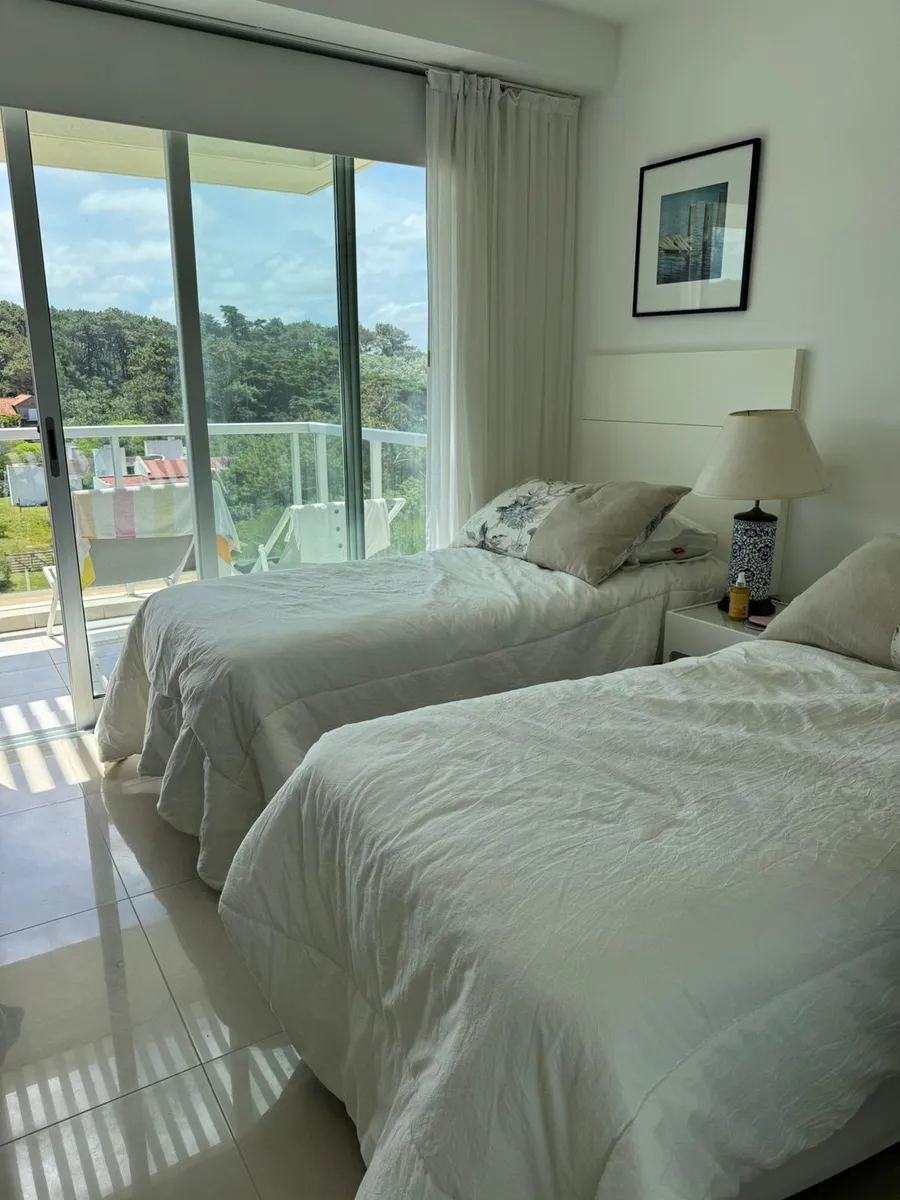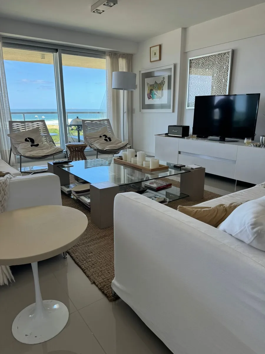 Квартира в здании Blue Marine, Parada 30 на пляже La Brava, с 4 спальнями en suite. В планировке: просторная гостиная, столовая и современная оборудованная кухня с большой интегрированной барной стойкой. Есть приватный лифт на площадке и балкон с видом на море. В здании: климатизированный бассейн, зоны гриля (quinchos), интернет-зал, помещение для детей и подростков с бассейном, Wi‑Fi, тренажёрный зал, сауна, а также сервис пляжа с зонтом и лежаками, услуги смотрителя и крытый гараж. Арендная пл