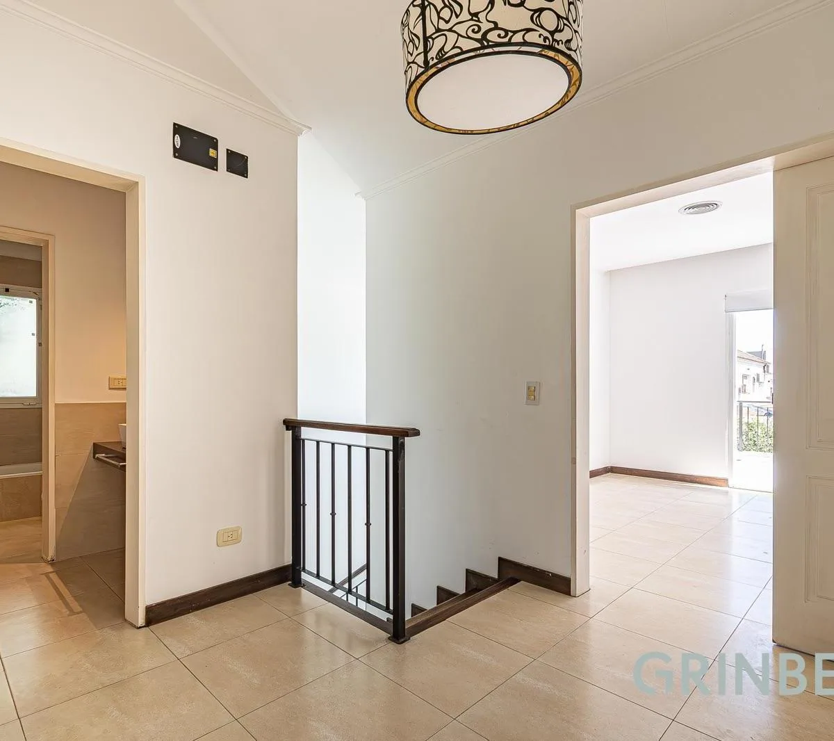 Двухэтажный дом в Barrio Los Sauces, Tigre. На первом этаже: гостиная с камином, кухня с обеденной зоной и отдельная зона отдыха с двойной высотой, выход на галерею, гостевой туалет, помещение под прислугу, кабинет или 4 спальня, галерея с зоной гриля. На втором этаже: спальня suite с гардеробной и 2 спальни, которые делят ванную комнату. В доме предусмотрен просторный сад с ориентацией на север.