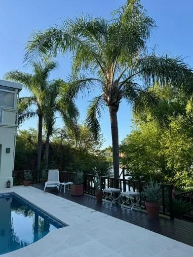 Дом площадью 344 m² на участке 810 m² в Santa María de Tigre, 3 уровня. Окна выходят на север, есть прямой доступ к Río Luján. На первом уровне расположены гостиная-столовая и столовая с зоной ежедневного пользования, кухня с островом, гостевой туалет, закрытая зона гриля с quincho и gym; также предусмотрены кабинет и мастер-сьют с двумя гардеробными, ванной с гидромассажем и душем. На втором уровне находятся 3 дополнительных спальни и полностью обновлённая ванная с ванной и душем. На последнем