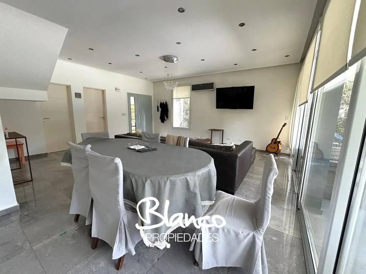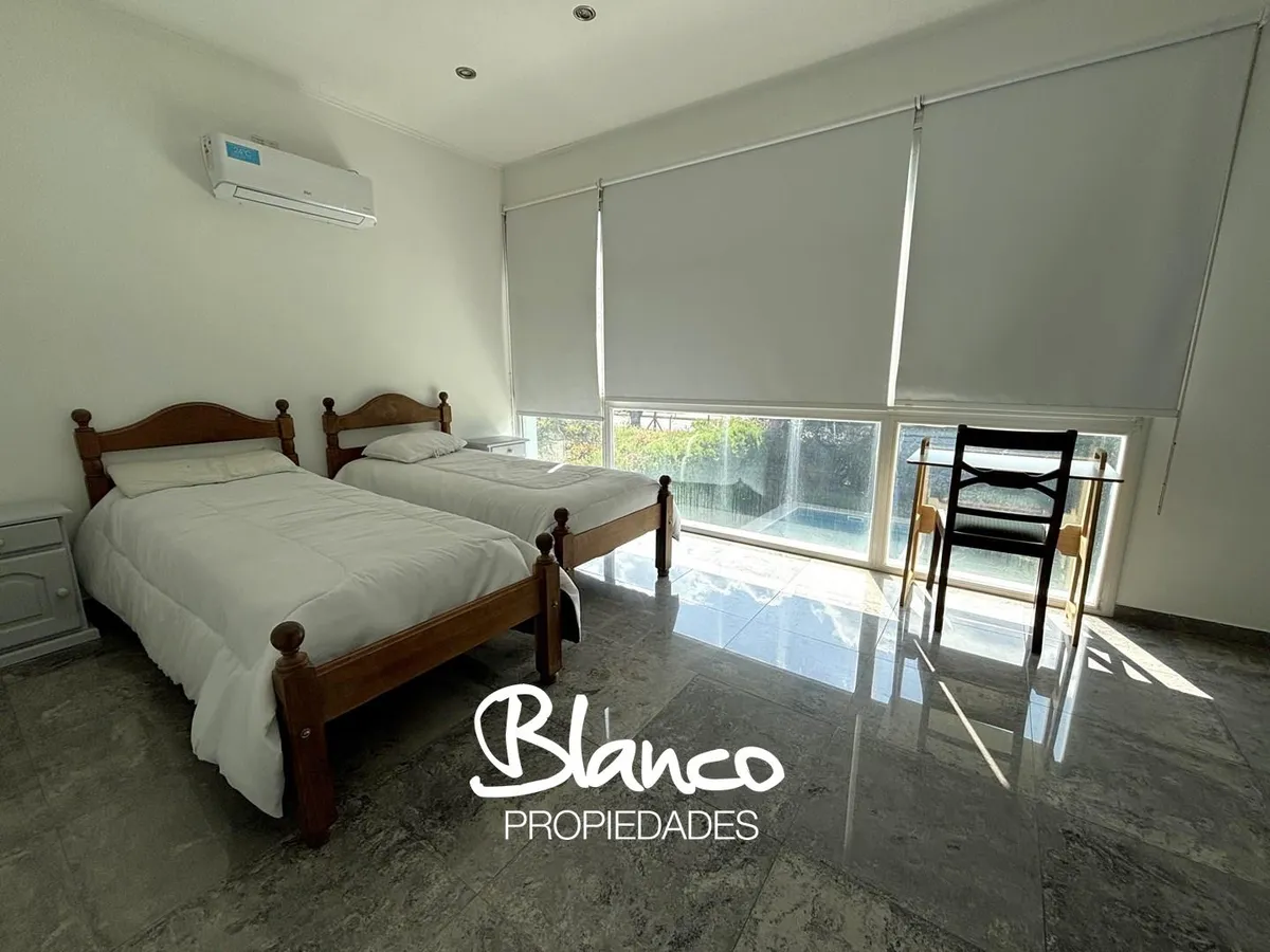Дом в аренду в частном районе Los Lagos, Nordelta, Tigre, построен на 2 этажах. Участок площадью 520 m² с ориентацией на северо-запад. На первом этаже гостиная с ТВ LED 55", интегрированная и раздвижная кухня, отдельная служебная комната с шкафом и ТВ, отдельная прачечная и 2 ванные комнаты. На втором этаже главная спальня в suite с ванной и гидромассажем, ещё 3 спальни с общей ванной комнатой и встроенными шкафами от пола до потолка; во всех спальнях есть кондиционеры холод/тепло и ТВ LED, отоп
