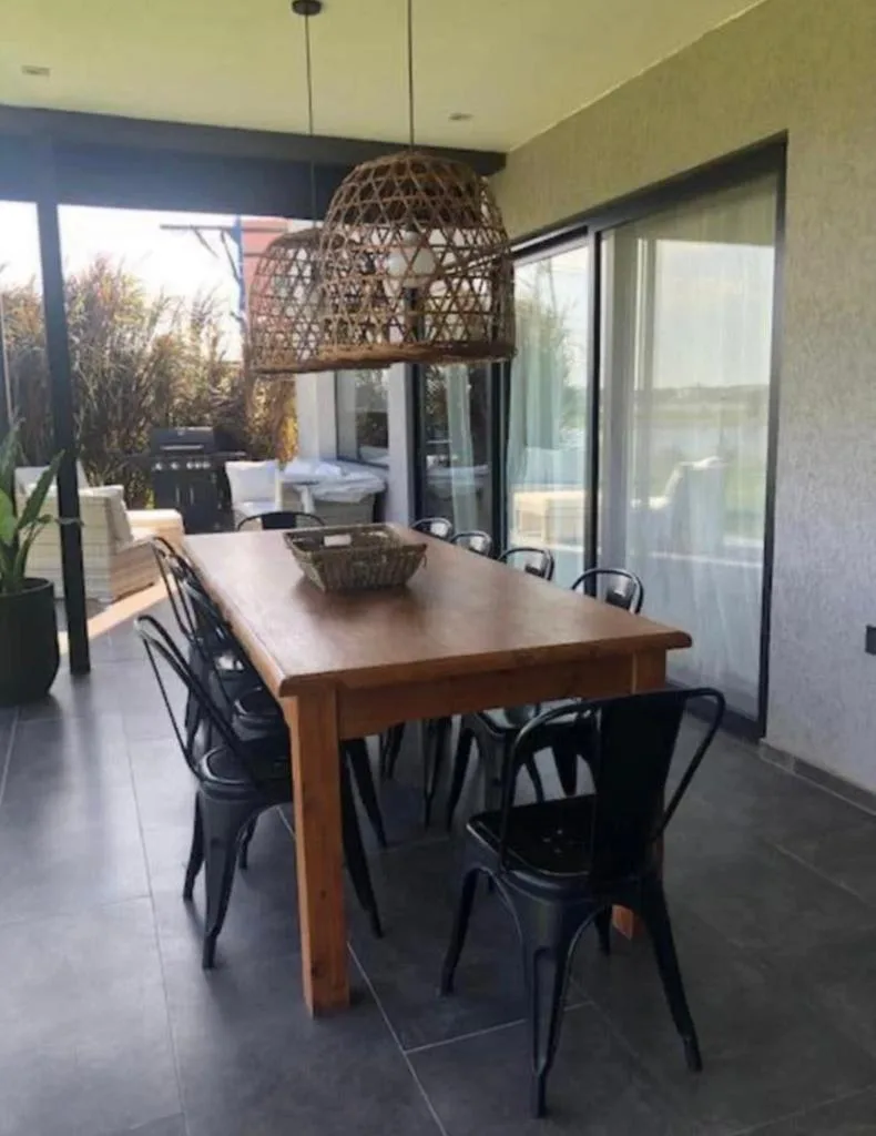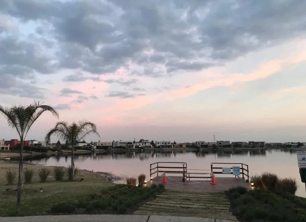 Дом на 2 этажах с выходом на лагуну в Barrio San Gabriel, Villanueva, Tigre. На первом этаже: прихожая, гостевой туалет, гостиная-столовая с камином, кухня с островом и электрической духовкой и электроплитой, спальня с ванной с душем, прачечная с отдельным выходом. На втором этаже: просторная зона (family или кабинет), главная спальня en suite с гардеробной, 2 спальни в полу-suite с общим санузлом; из всех спален вид на лагуну. В доме установлены кондиционеры, окна со стеклопакетами DVH и наполь