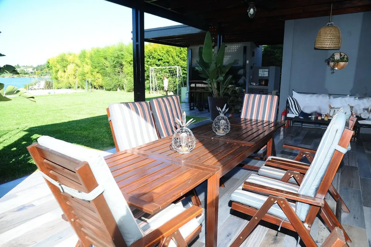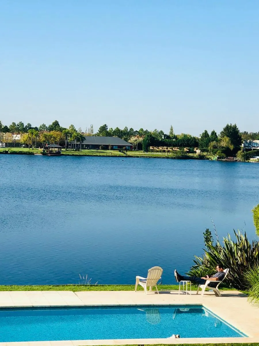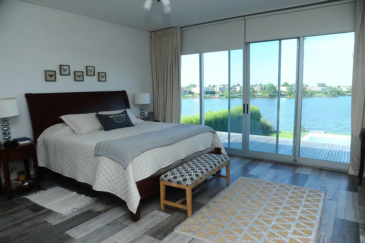Двухэтажный дом в Tigre на лагуне Talar del Lago, 2, на территории площадью 80 has с водным зеркалом. Внутри: прихожая, гостиная с кондиционером и выходом на галерею, гостевая туалетная комната, столовая с панорамным остеклением и выходом на закрытую галерею. В плейруме телевизор и кондиционер; кухня с промышленной духовкой, посудомоечной машиной и местом для большой холодильной камеры, есть кондиционер. На втором этаже 4 спальни, 2 из них с ванными комнатами (suites), ещё одна полностью оборудо