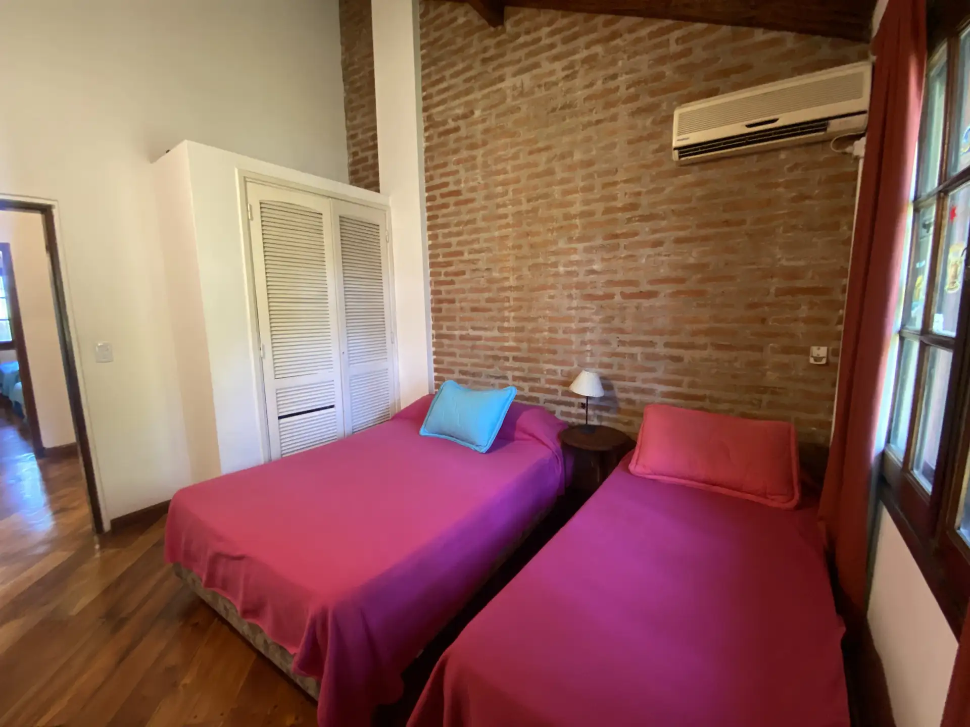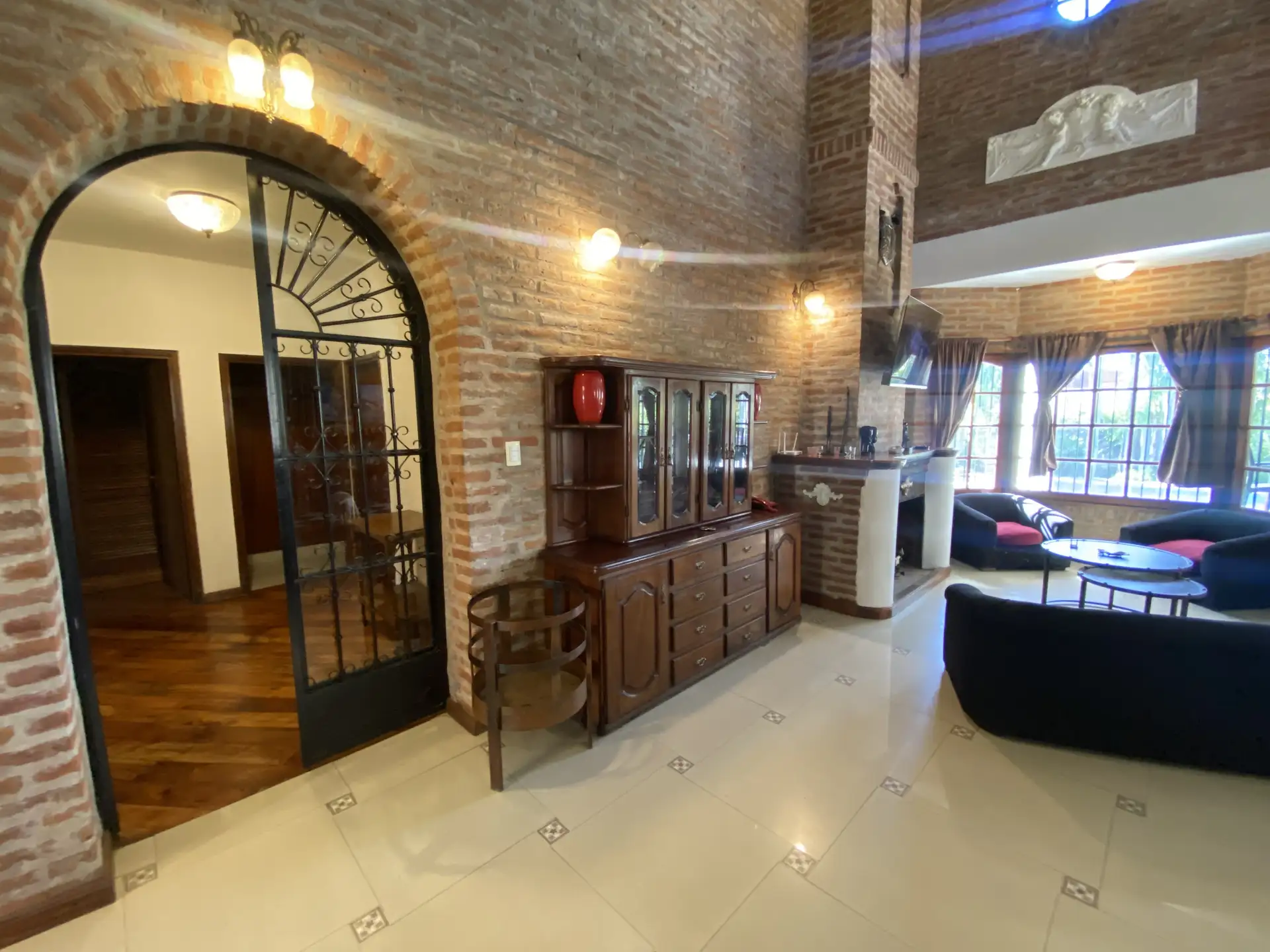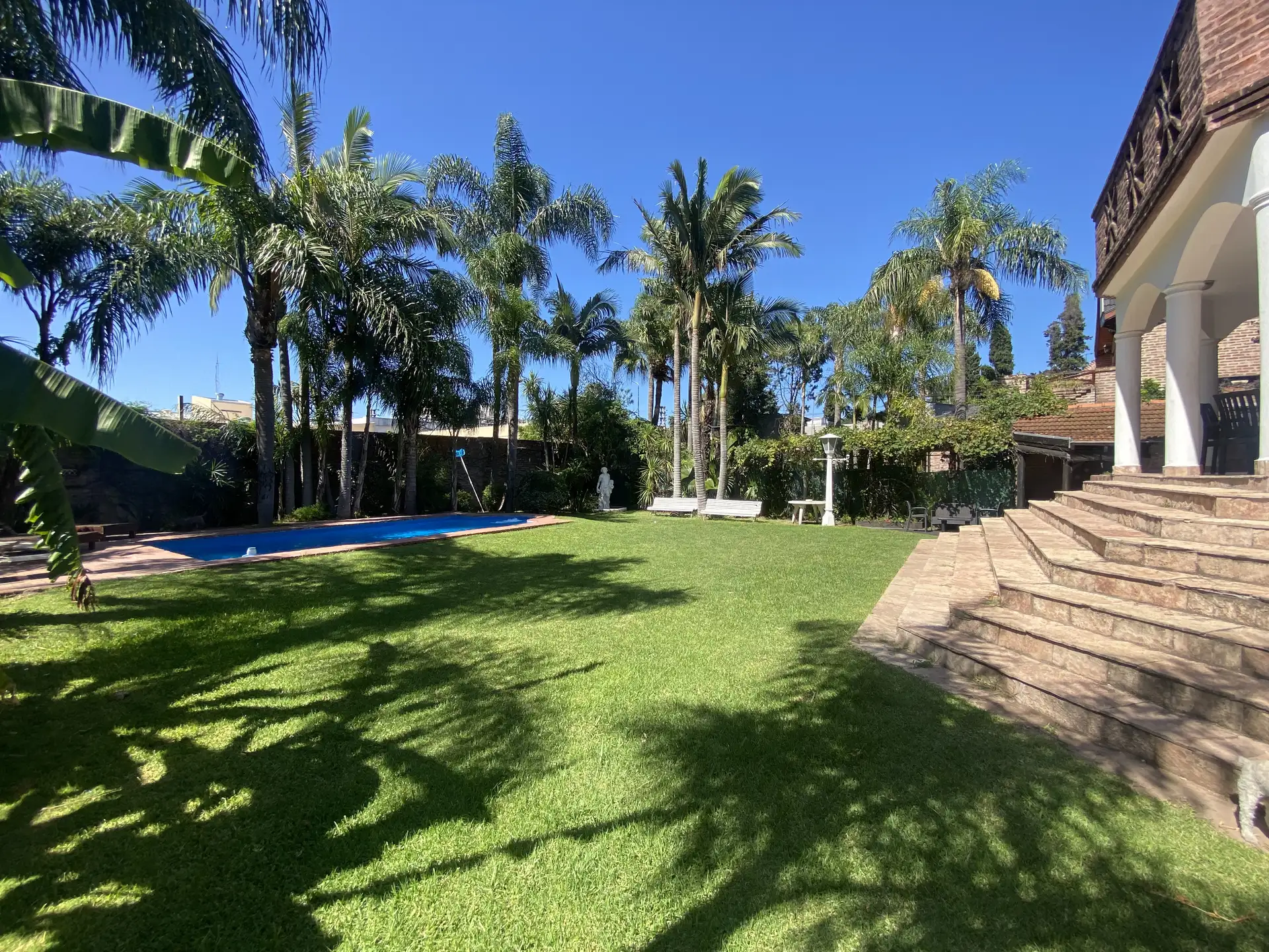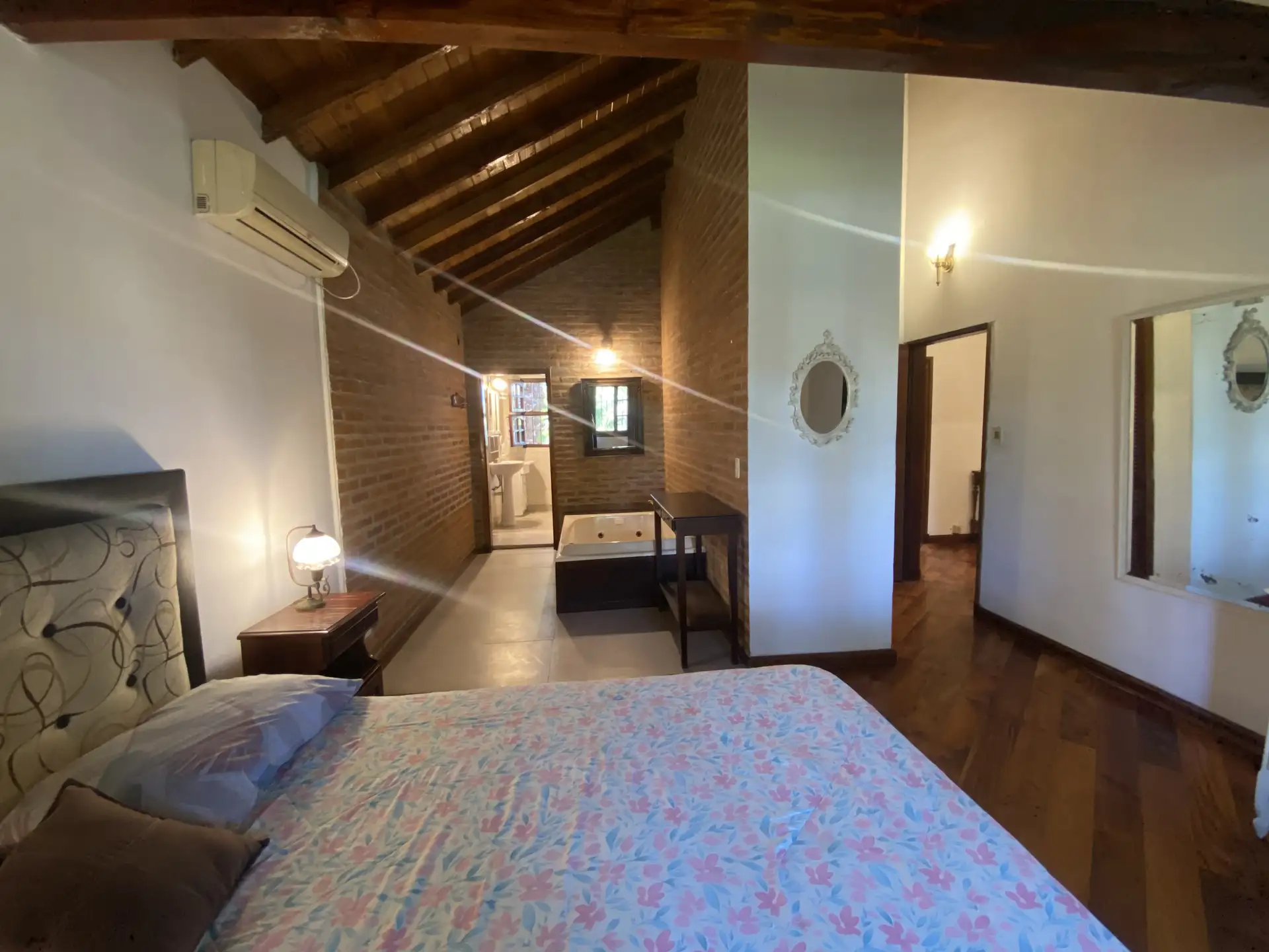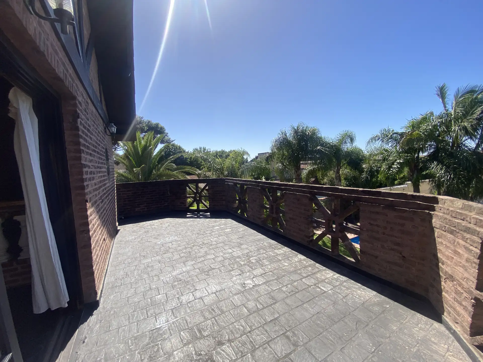 Дом в Don Torcuato (Tigre) в аренду, 800 m² участка, в двух уровнях. На первом этаже: большой разнуровневый гостиный зал, кухня и столовая, санузел, 3 спальни; одна из них с ванной комнатой (suite), отдельная ванная; 4-я комната для прислуги. На втором этаже: просторная гостиная или playroom с балконом и видом на парк. В цокольной части: (закреплённое) парковочное место на 2 автомобиля, прачечная и санузел. На участке: парк с бассейном, галерея с видом на парк и зона гриля с большой решёткой.