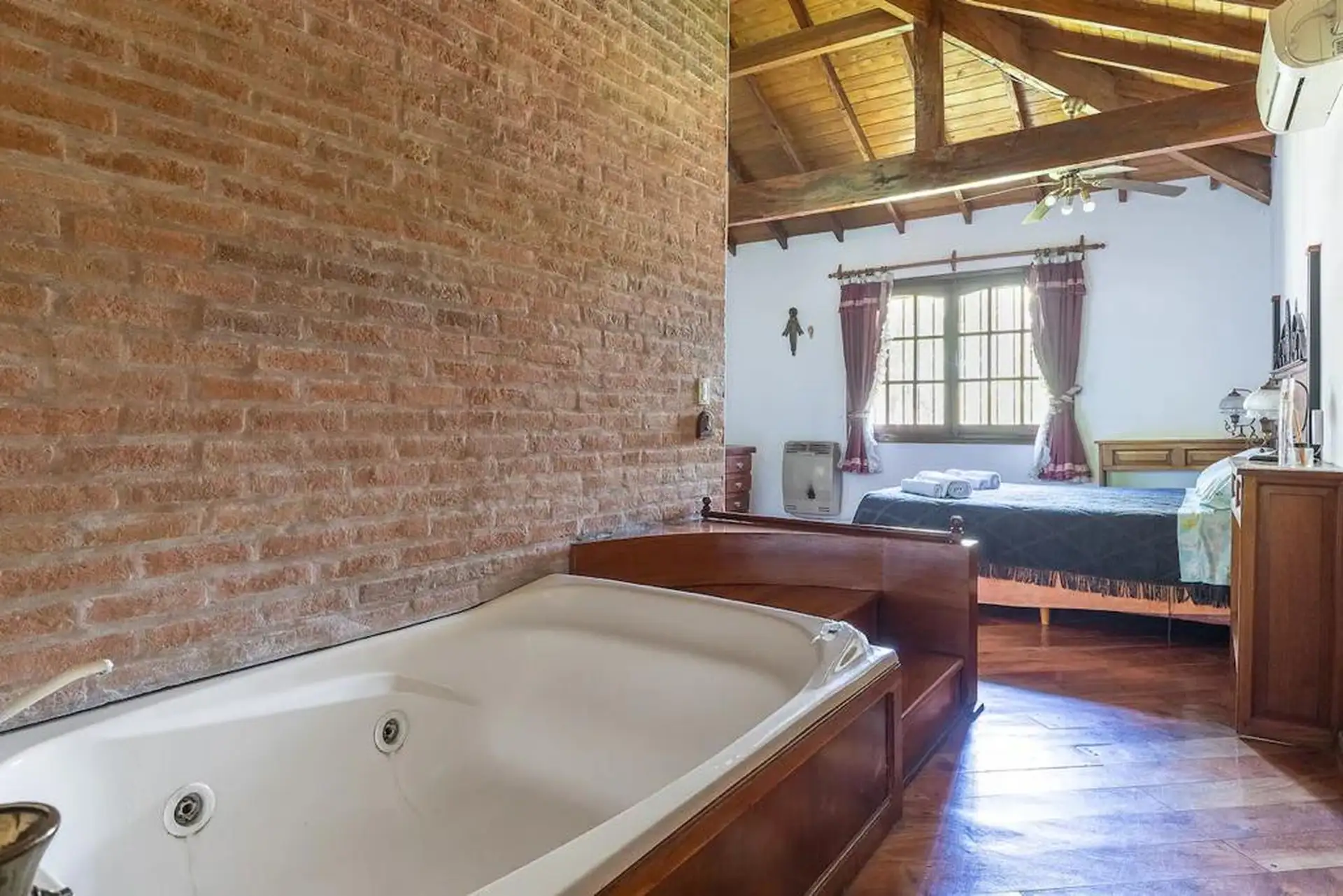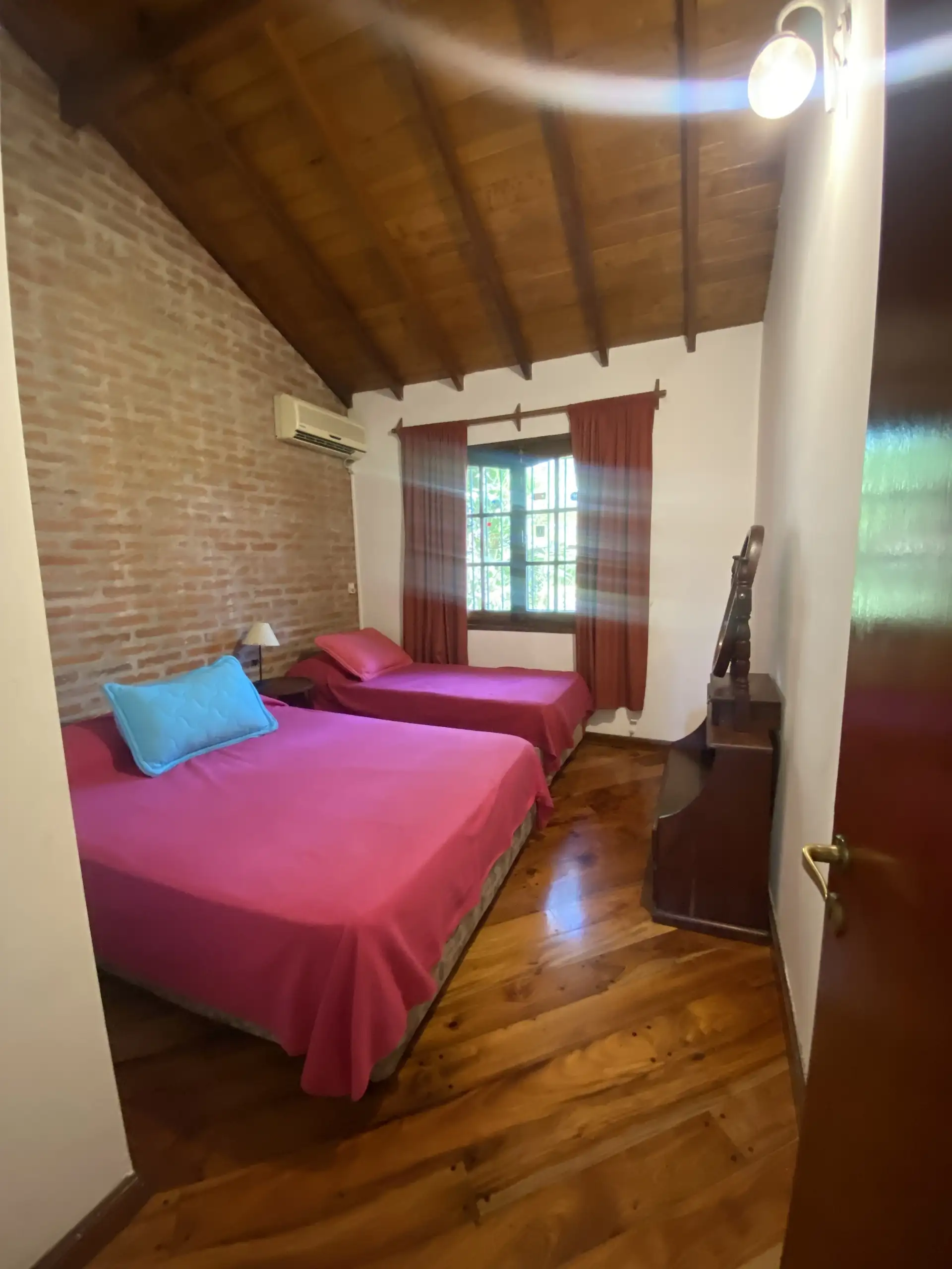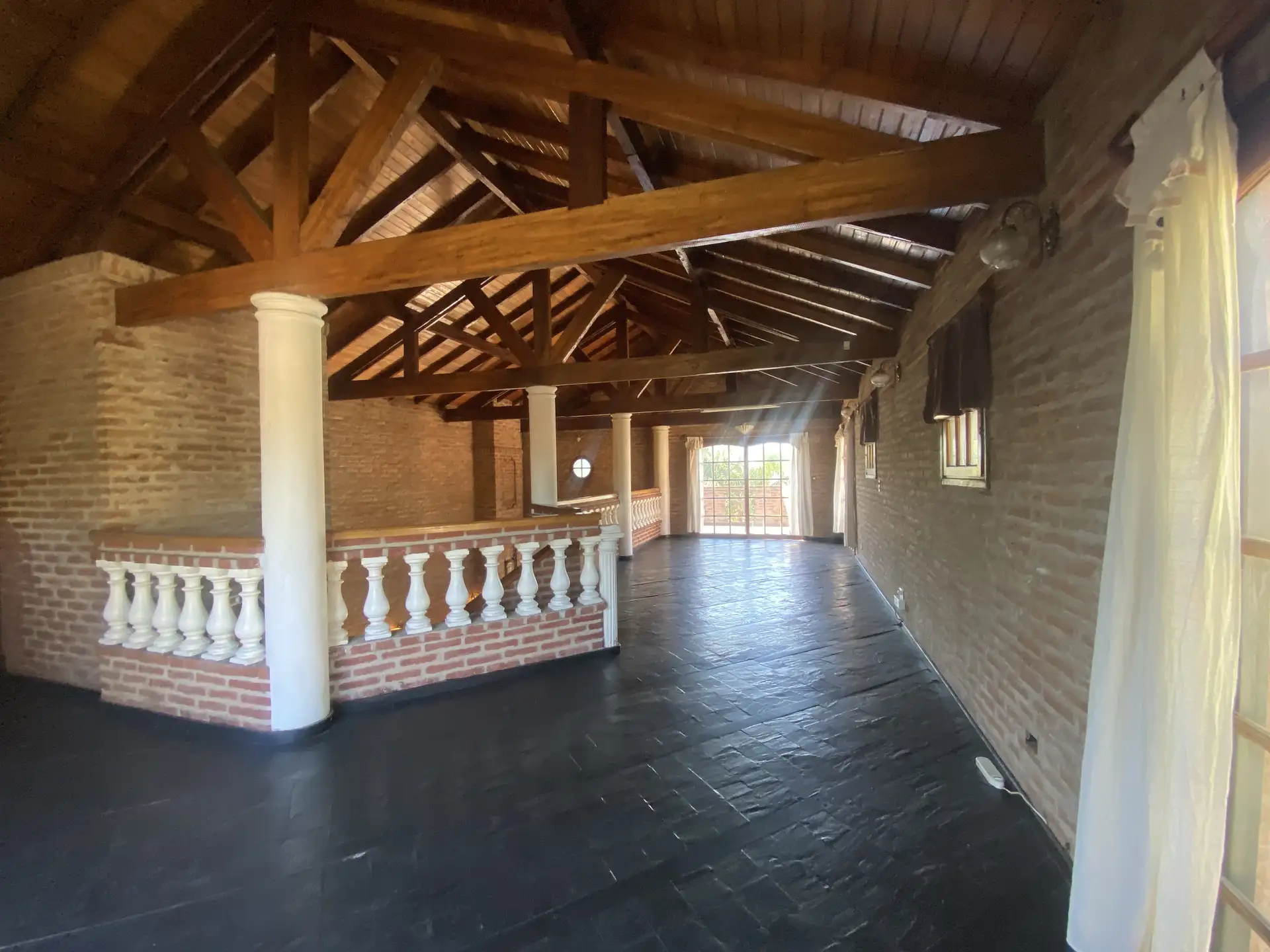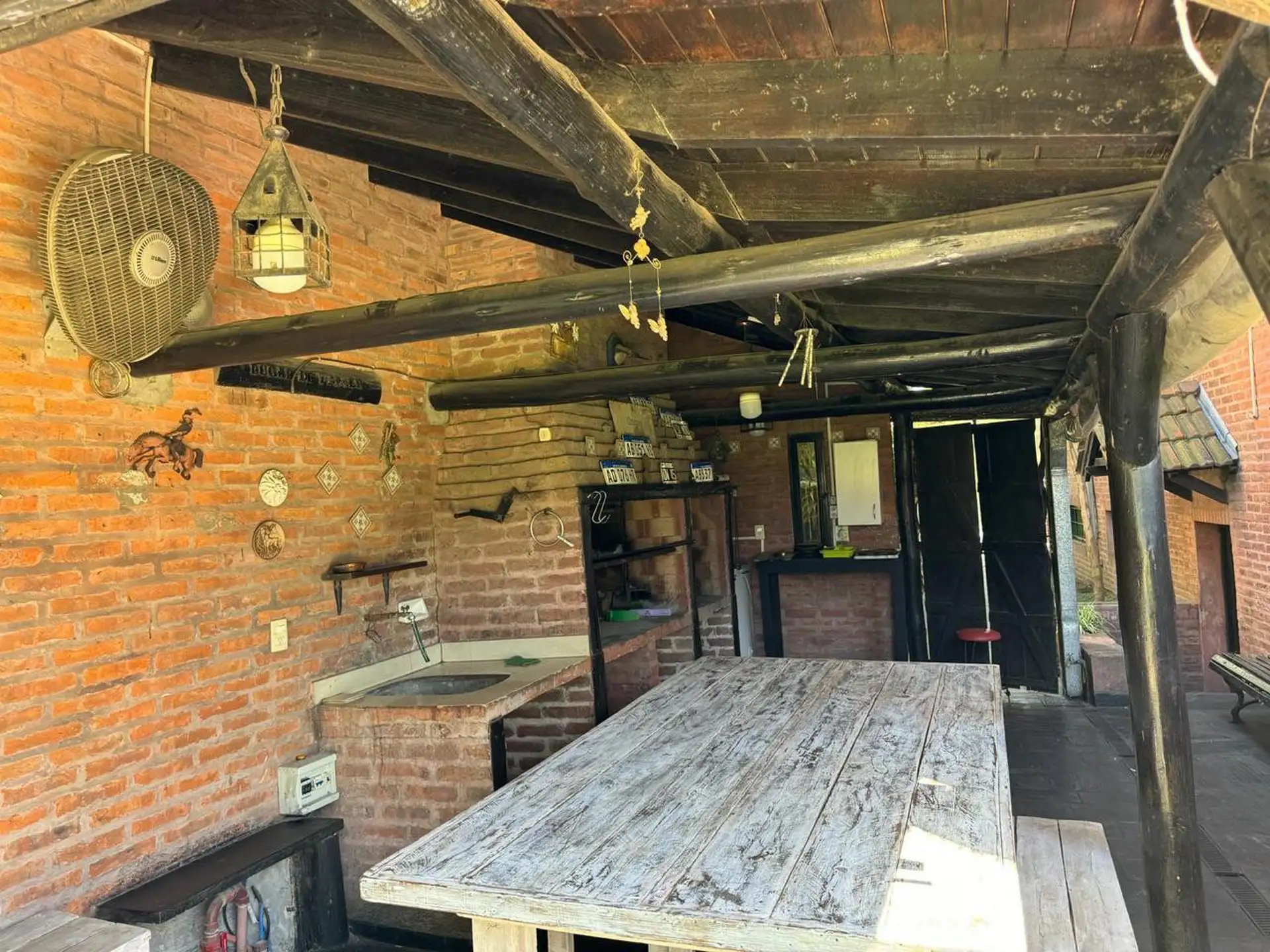 Дом в Don Torcuato (Tigre) в аренду, 800 m² участка, в двух уровнях. На первом этаже: большой разнуровневый гостиный зал, кухня и столовая, санузел, 3 спальни; одна из них с ванной комнатой (suite), отдельная ванная; 4-я комната для прислуги. На втором этаже: просторная гостиная или playroom с балконом и видом на парк. В цокольной части: (закреплённое) парковочное место на 2 автомобиля, прачечная и санузел. На участке: парк с бассейном, галерея с видом на парк и зона гриля с большой решёткой.