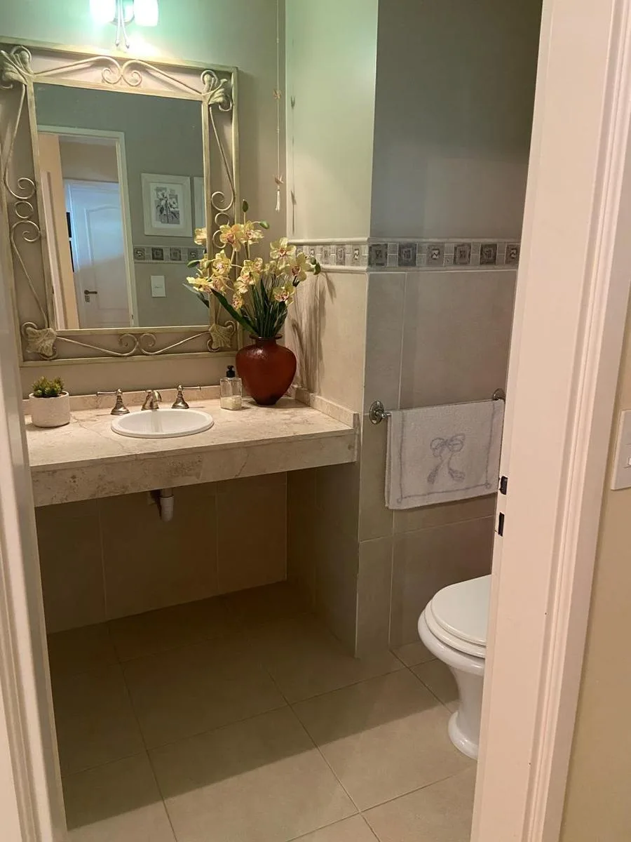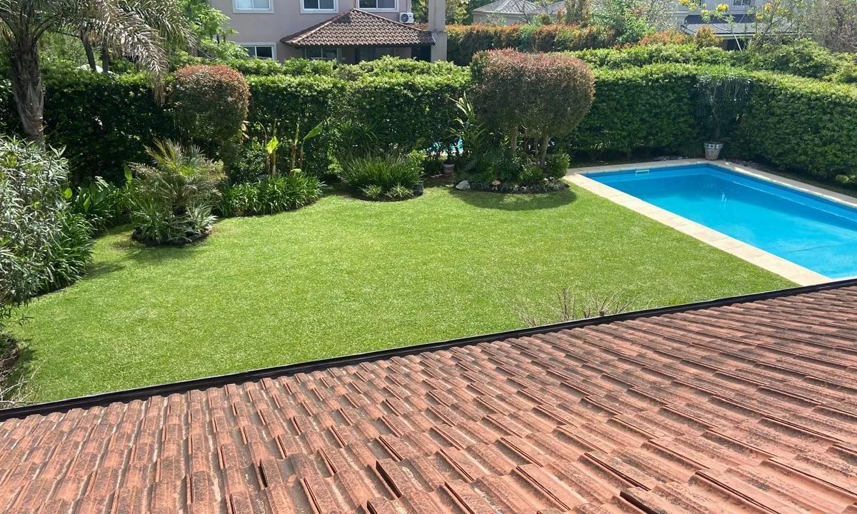 Дом в Tigre, 4 спальни. В доме есть бассейн и зона гриля, автоматический полив, большой сад с деревьями. На первом этаже: приёмный холл, гостевой туалет, просторная гостиная с кондиционером и столовой, кухня с обеденной зоной, семейная TV-зона с кондиционером и потолочным вентилятором, прачечная, полноценная ванная, 2 холодильника и отдельная морозильная камера. На втором этаже: спален-сьют с кондиционером и потолочным вентилятором, кровать Queen size и TV, полноценная ванная; 2-я спальня с конд
