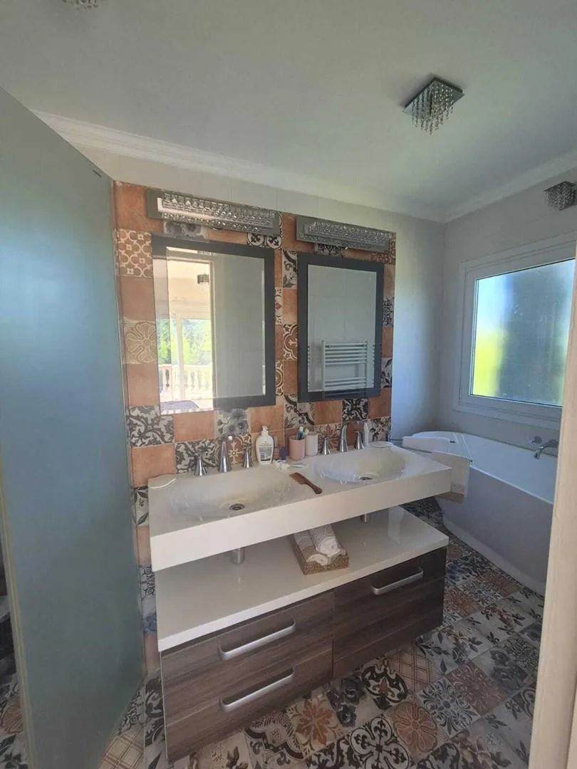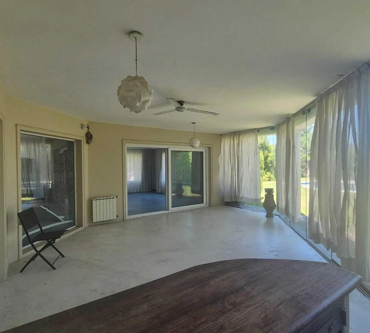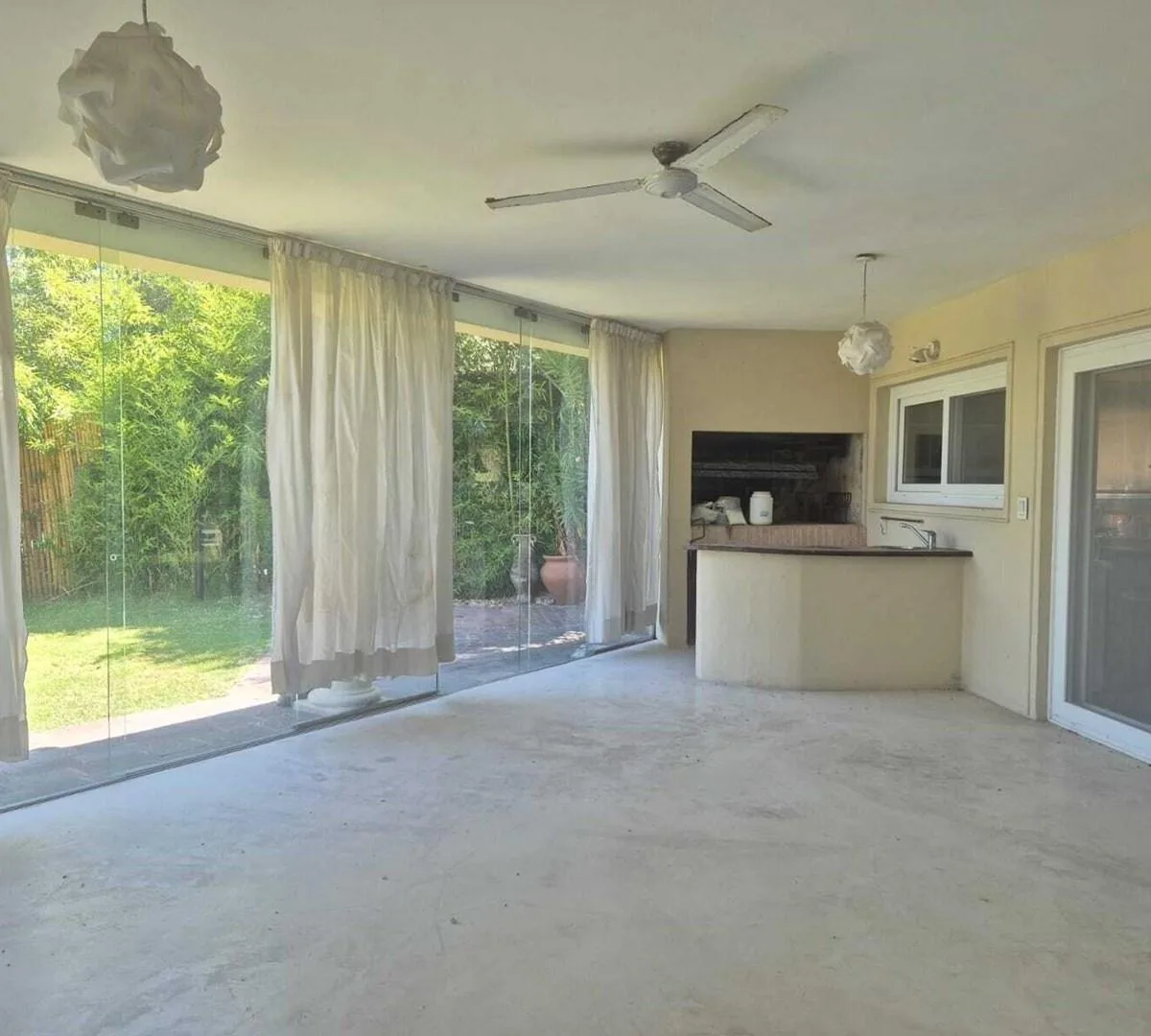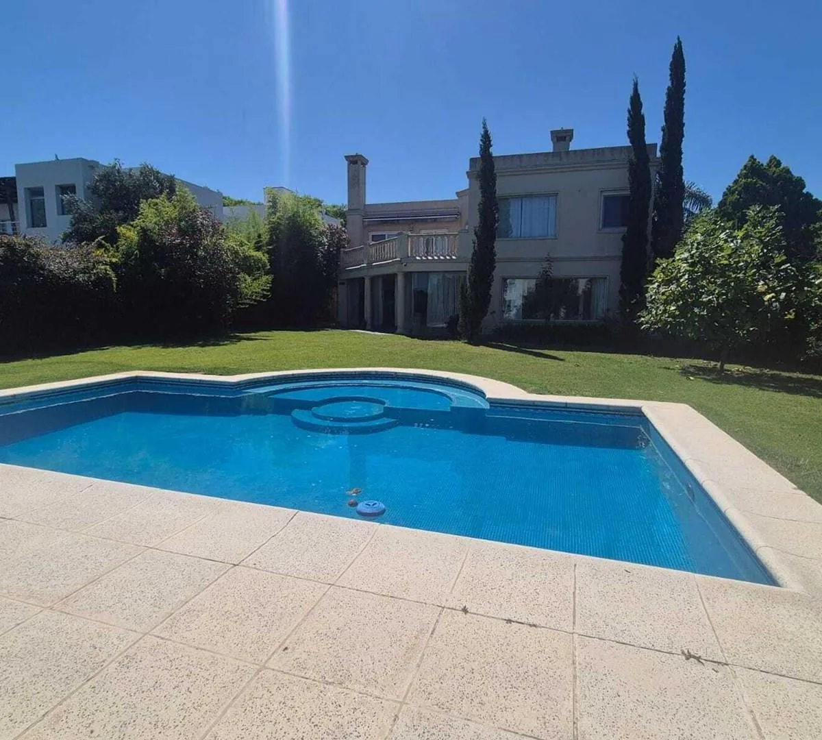Дом в Santa Barbara, Tigre, на аренду. В доме большая гостиная с двойной высотой и обеденной зоной, разделёнными камином, гостевой туалет, кабинет и кухня с островом и местом под обеденную зону. Есть кондиционеры, газовая варочная панель, духовой шкаф ariston, прачечная с бойлером для горячей воды, стиральная машина и котёл. Спальни: главная suite с видом на лагуну и выходом на террасу, ванная tri-разделённая, гардеробная; 3 спальни с выходом на террасы и шкафами в двух из них, 1 общая полноценн