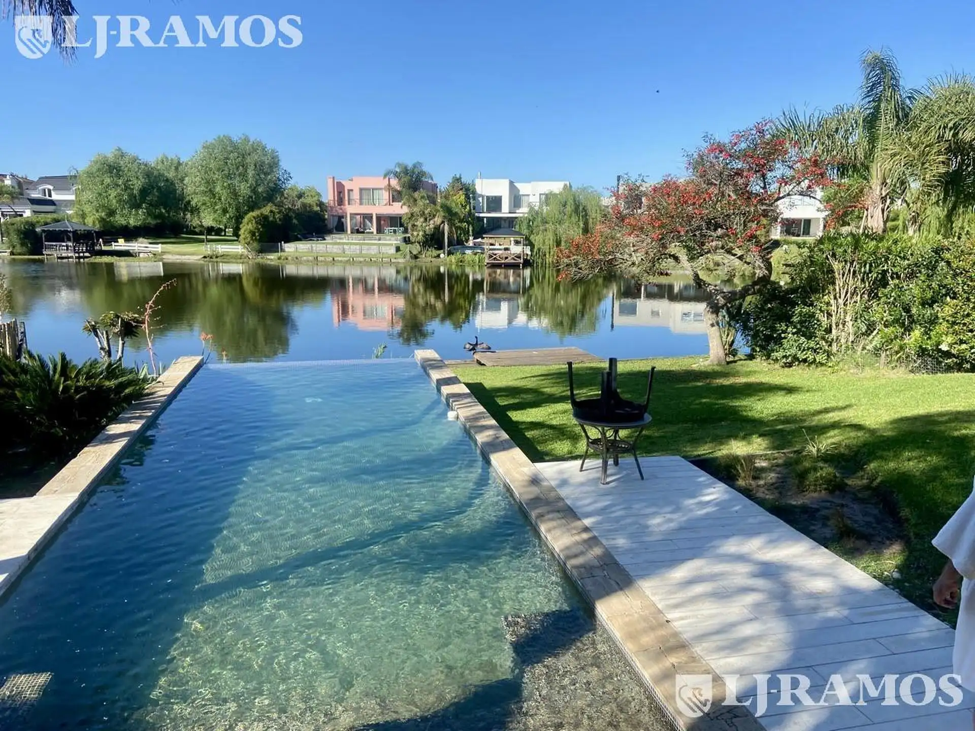 Дом в аренду с мебелью в Nordelta (Los Sauces), 4 спальни. Есть гостиная и столовая, кухня с островом, прачечная и комната для персонала с полной ванной, сообщается с бассейном. В цокольном этаже: входной холл с двойной высотой, внутренний сад, гостевой туалет с душем, спальня на первом этаже с двуспальным диваном-кроватью. На втором этаже: master suite с гардеробной, кабинетом, балконом-террасой и видом на озеро; главная ванная с джакузи и душем; 2 спальни с двумя ванными в полусюитах, а также