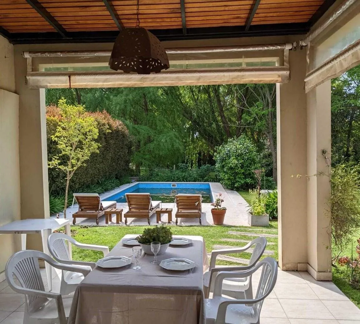 Дом в Santa Barbara, Tigre, в двух этажах, 310 m² построенных на участке 760 m². В доме: входной холл, гостевой туалет, гостиная с камином и выходом в галерею и сад, столовая с видом на сад, кухня, прачечная и служебные помещения. На втором этаже 4 спальни: главная suite с гардеробной, полноценной ванной с джакузи и террасой, junior suite с двуспальной кроватью, ещё 2 спальни, которые делят ещё одну полноценную ванную. В доме центральное отопление и кондиционеры во всех помещениях. Внешняя часть